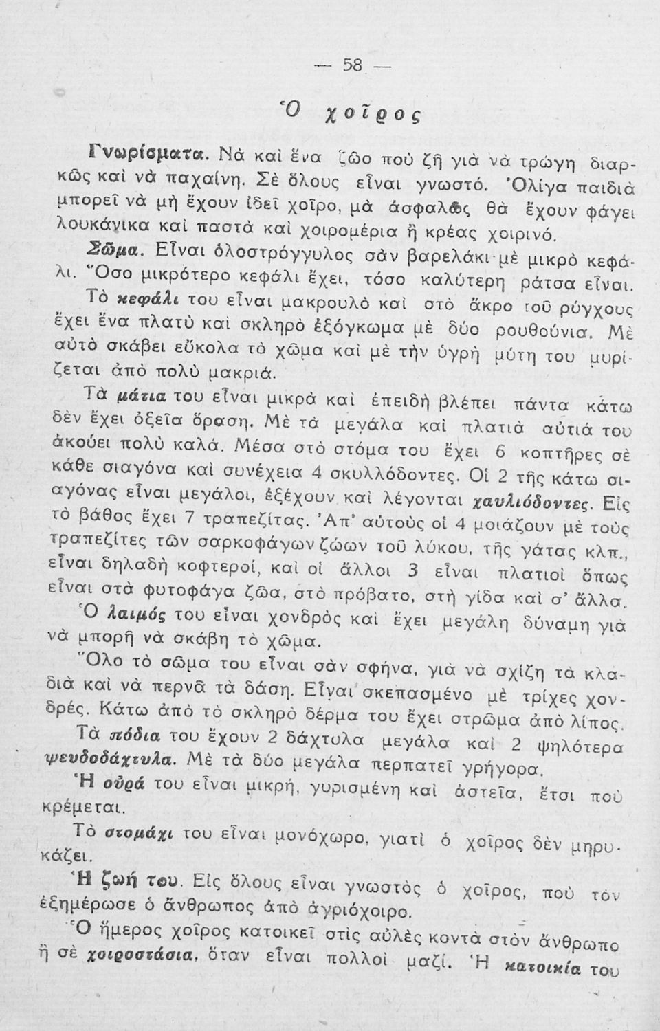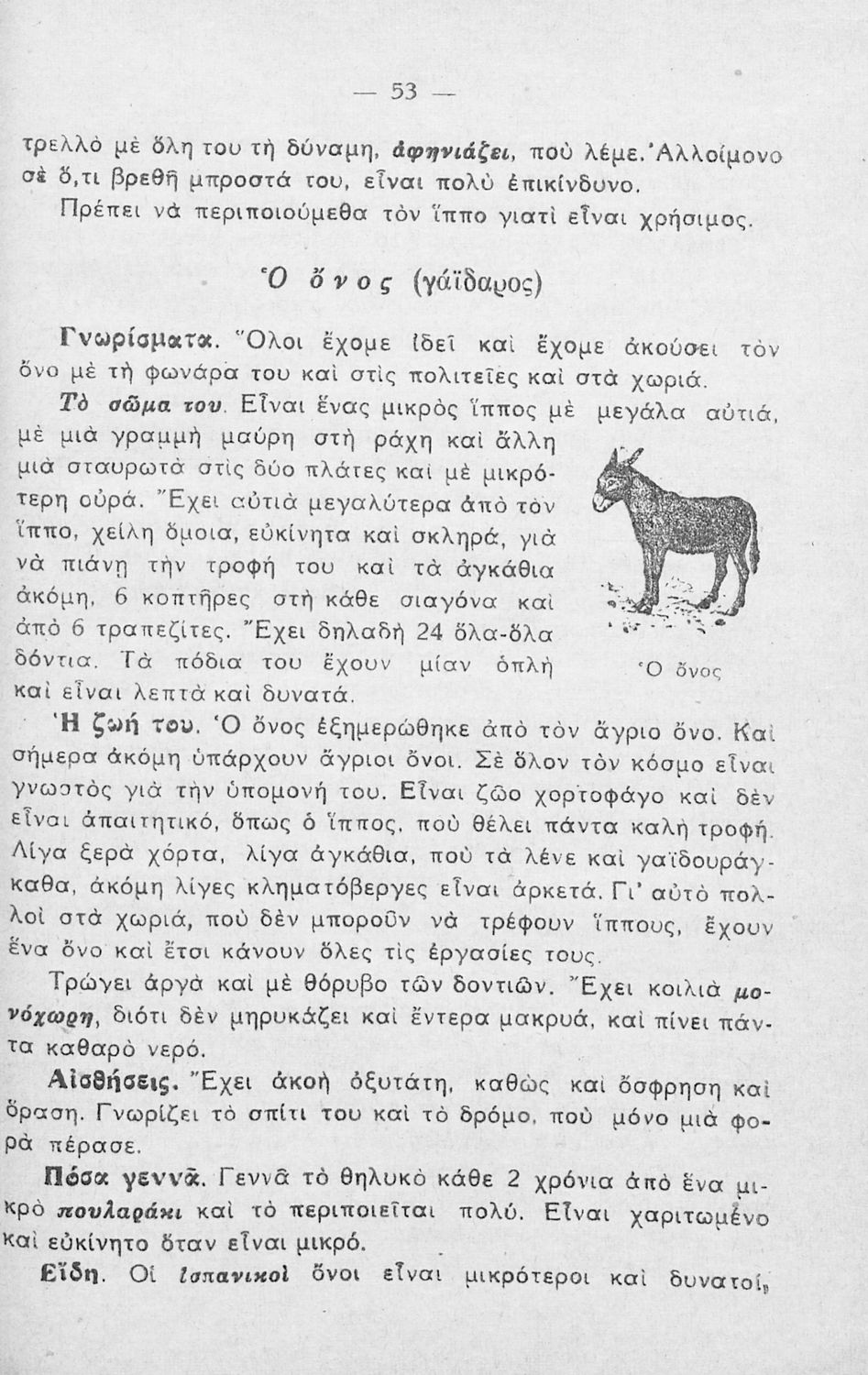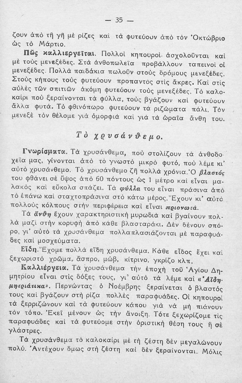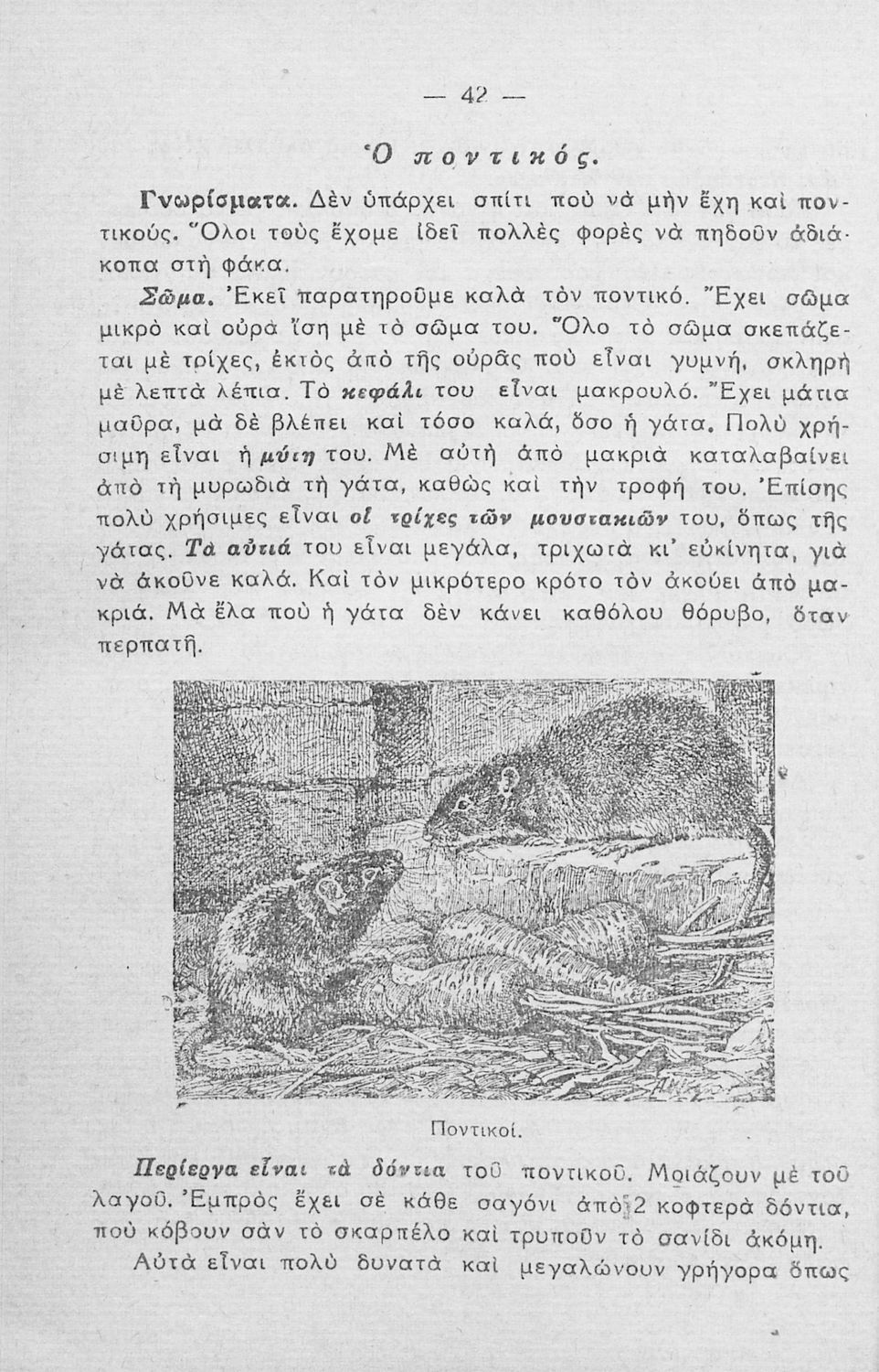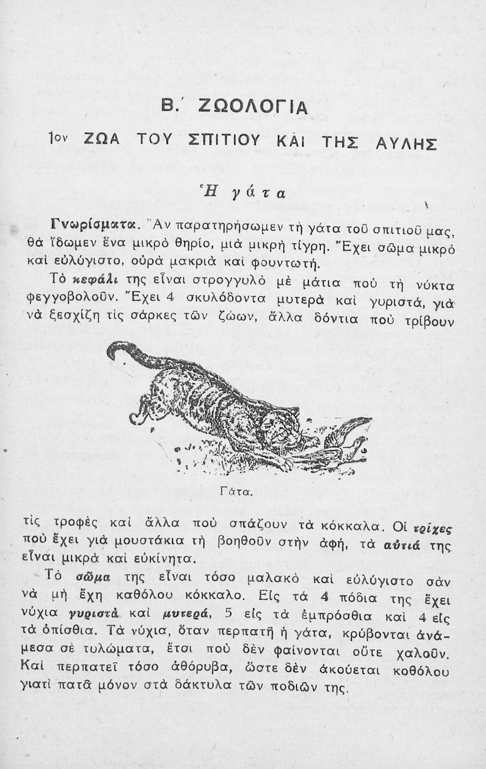 Το σύγγραμμα ήταν σχολικό εγχειρίδιο για το μάθημα της Φυσικής ιστορίας της Δ΄ Δημοτικού. Περιέχει βασικές γνώσεις φυτολογίας, ζωολογίας, βοτανικής. Οι πληροφορίες, οι οποίες δίνονται αφορούν την οικιακή ζωή.