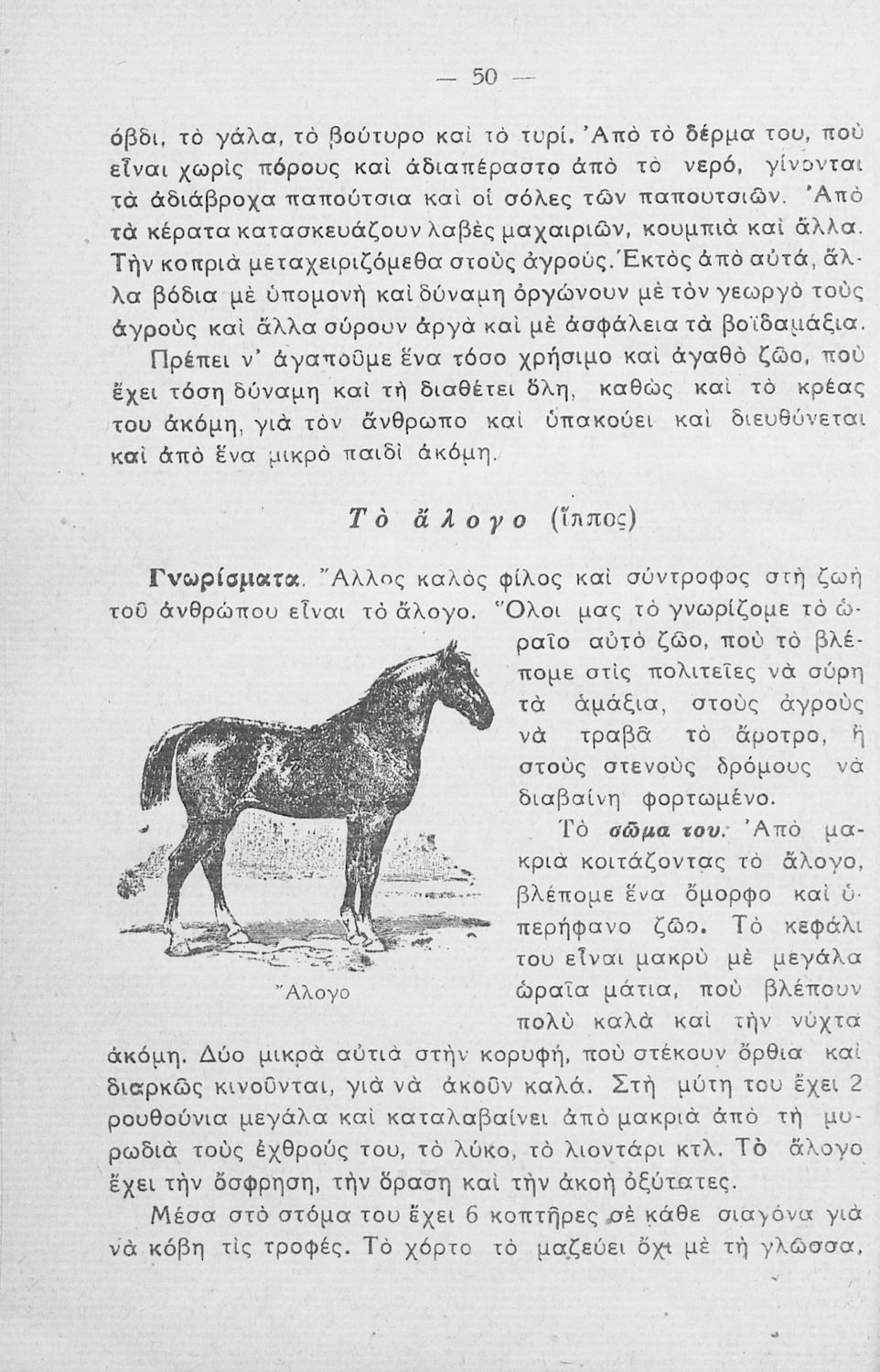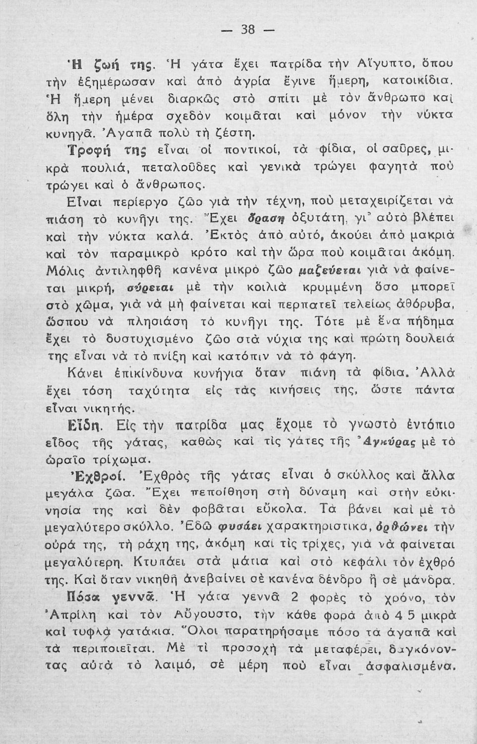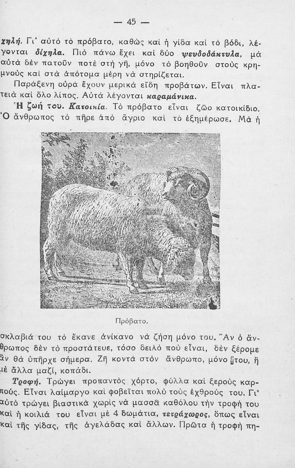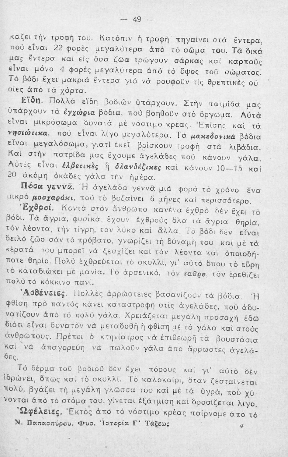 Το σύγγραμμα ήταν σχολικό εγχειρίδιο για το μάθημα της Φυσικής ιστορίας της Δ΄ Δημοτικού. Περιέχει βασικές γνώσεις φυτολογίας, ζωολογίας, βοτανικής. Οι πληροφορίες, οι οποίες δίνονται αφορούν την οικιακή ζωή.