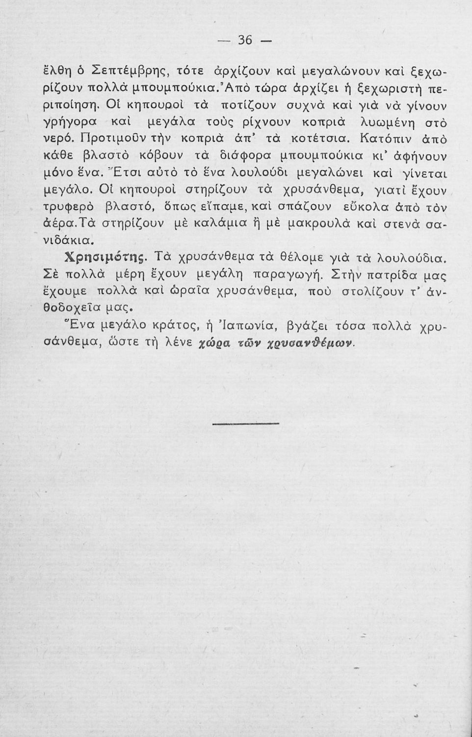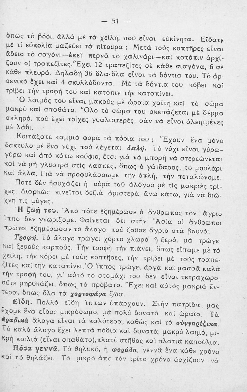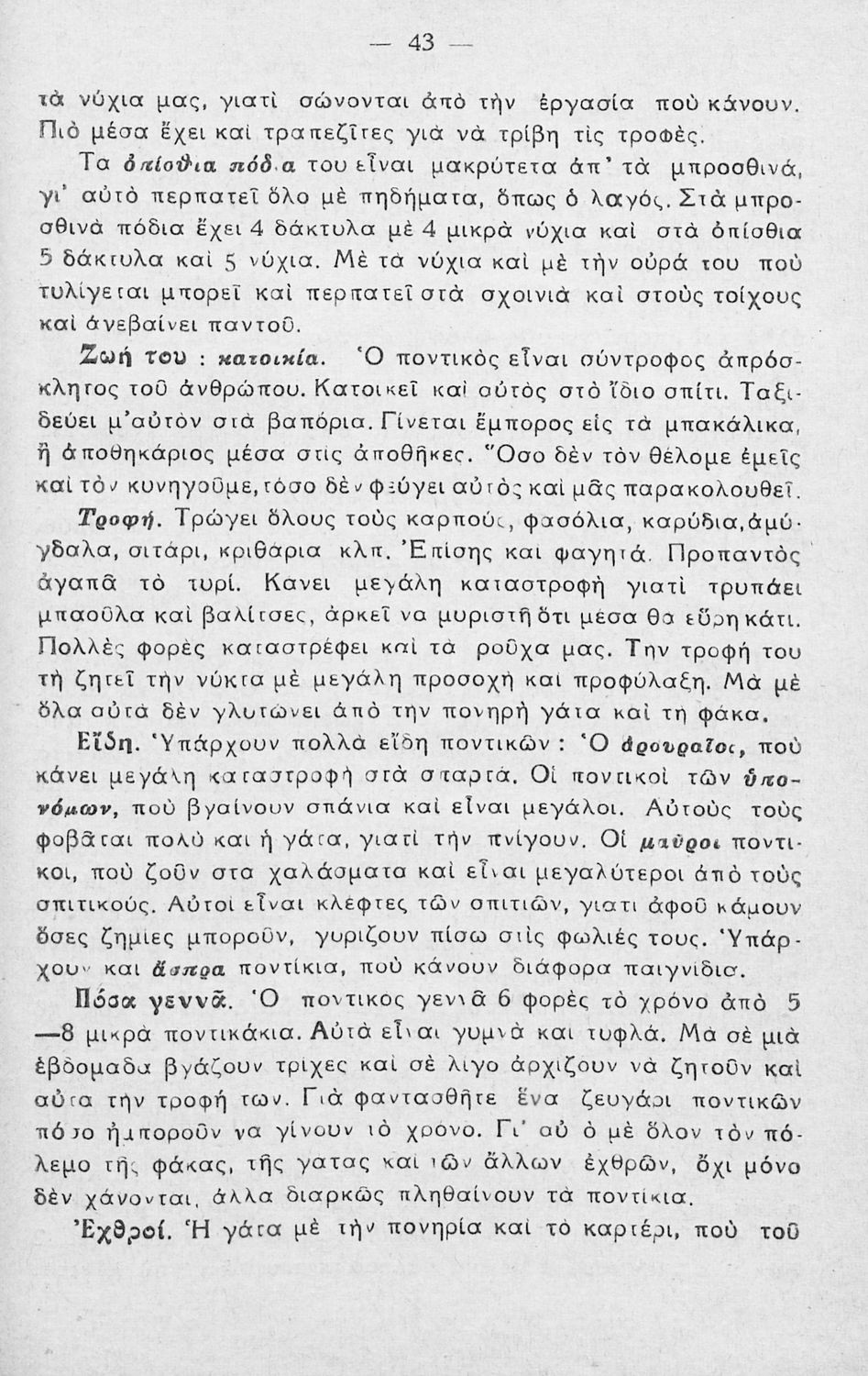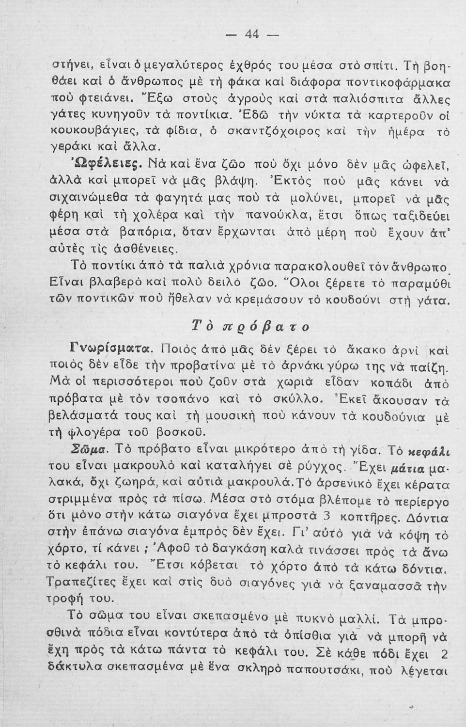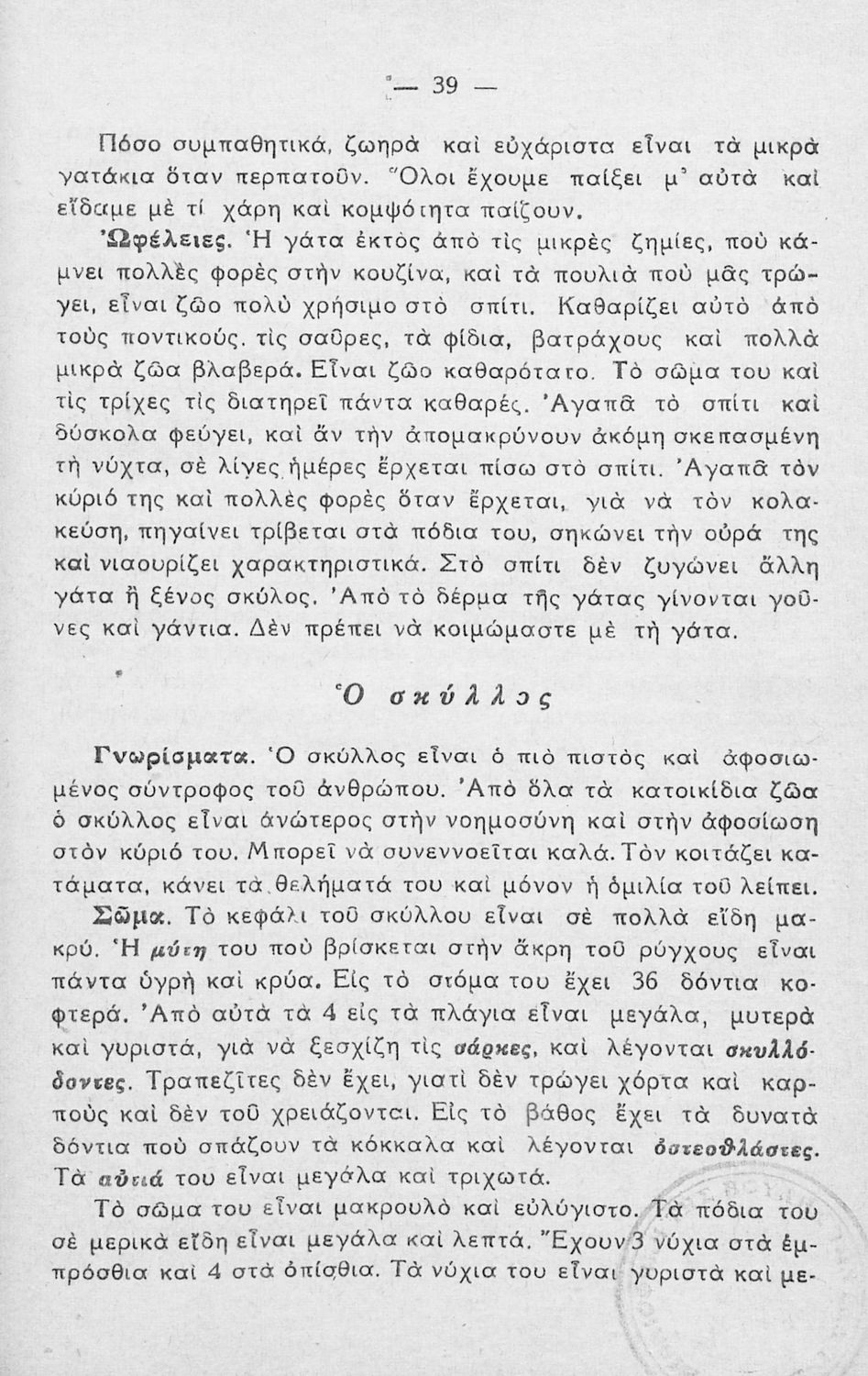 Το σύγγραμμα ήταν σχολικό εγχειρίδιο για το μάθημα της Φυσικής ιστορίας της Δ΄ Δημοτικού. Περιέχει βασικές γνώσεις φυτολογίας, ζωολογίας, βοτανικής. Οι πληροφορίες, οι οποίες δίνονται αφορούν την οικιακή ζωή.
