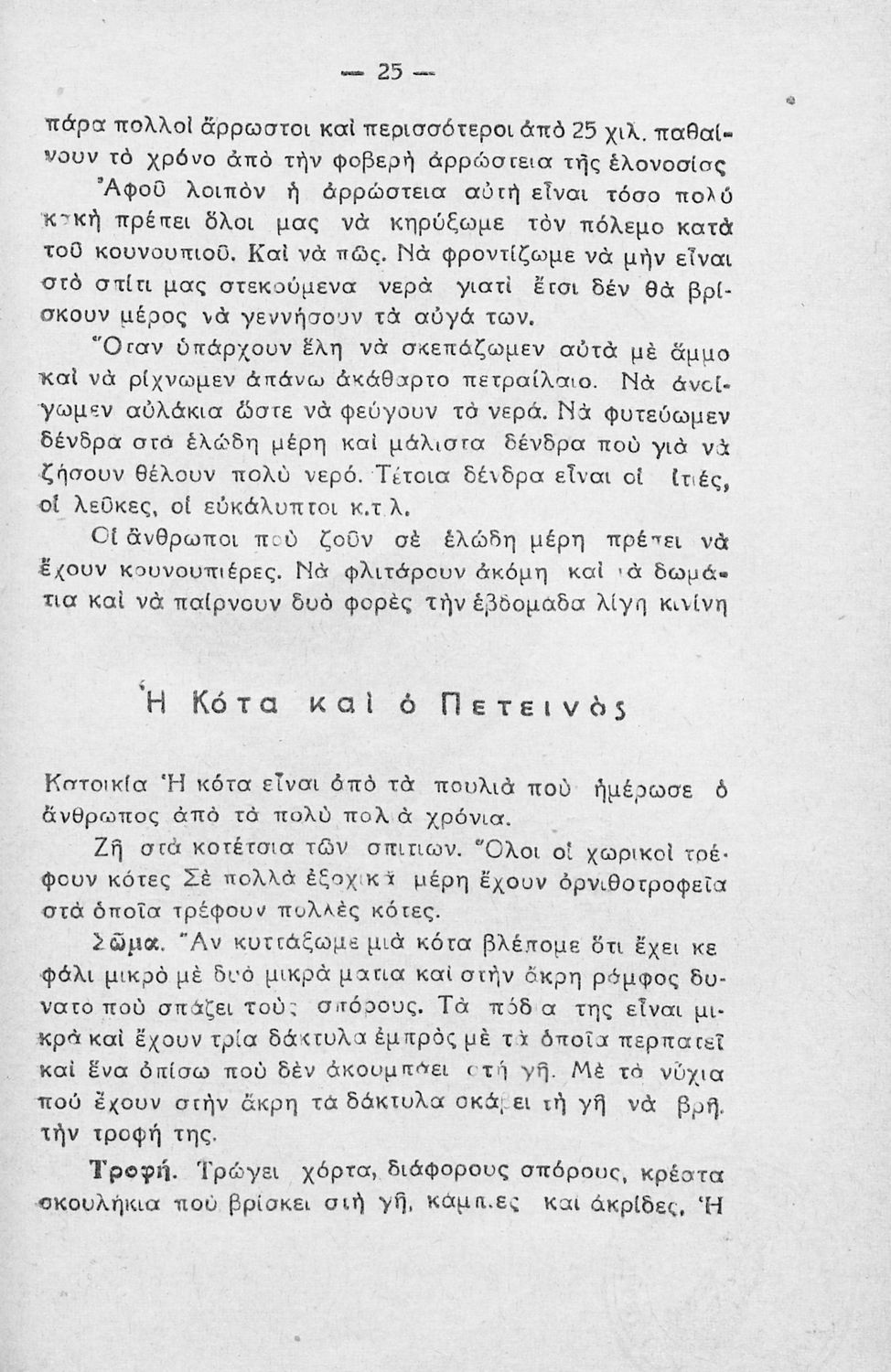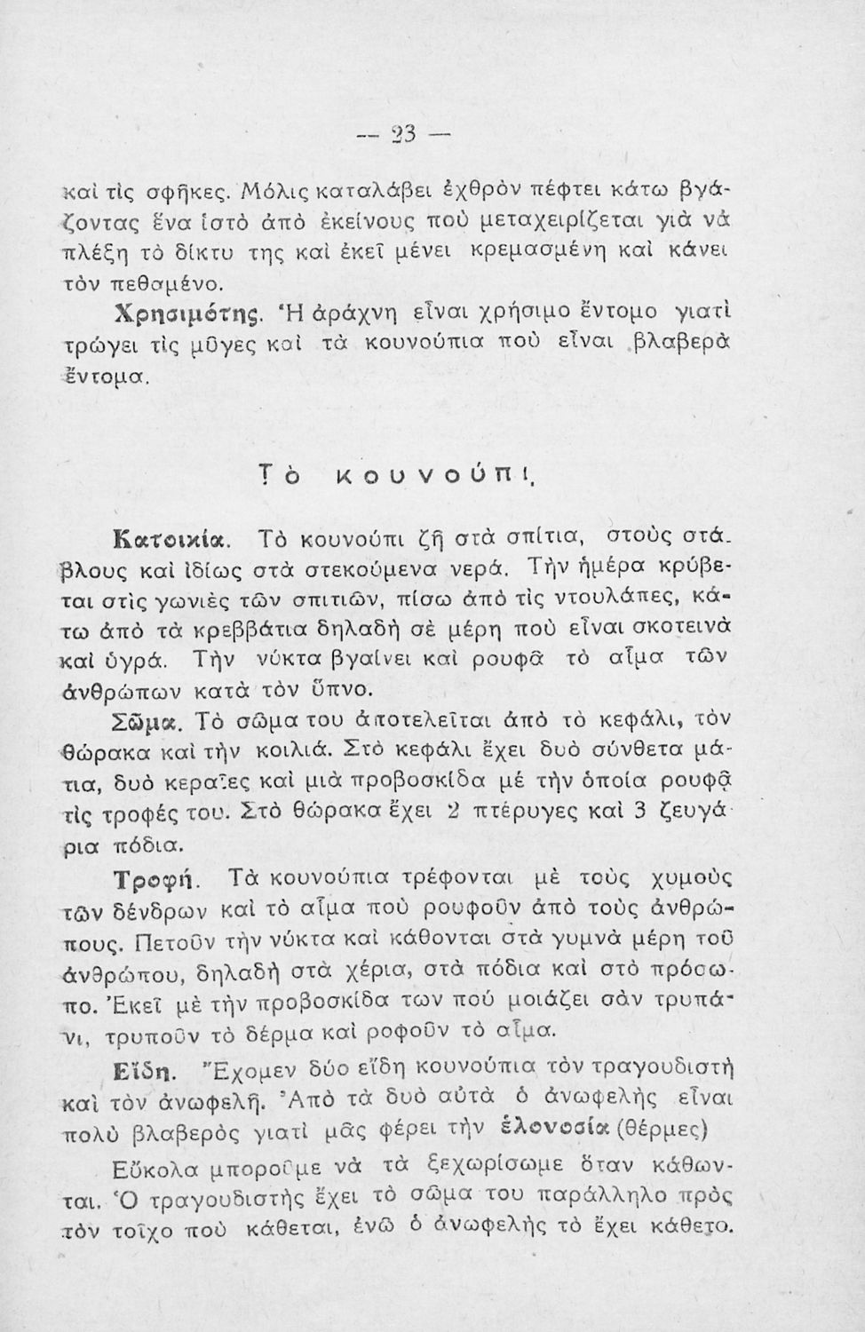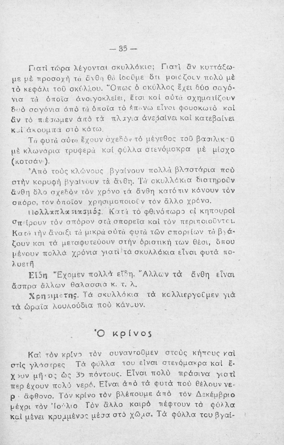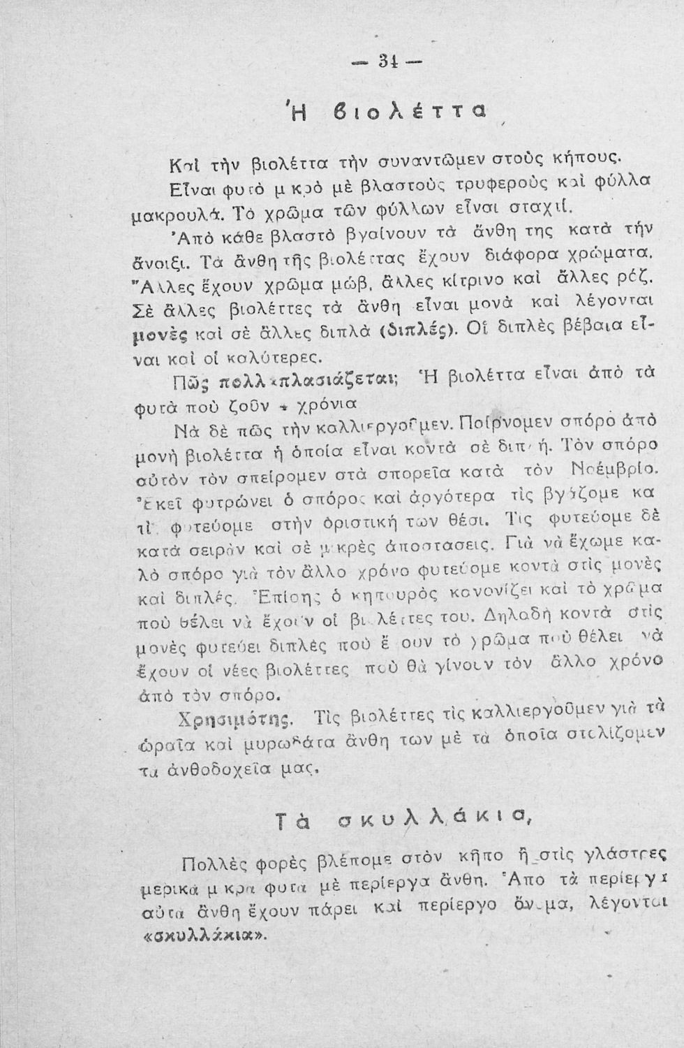 Το σύγγραμμα ήταν σχολικό εγχειρίδιο για το μάθημα της Φυσικής ιστορίας της Δ΄ Δημοτικού. Περιέχει βασικές γνώσεις φυτολογίας, ζωολογίας, βοτανικής. Οι πληροφορίες, οι οποίες δίνονται αφορούν την οικιακή ζωή.