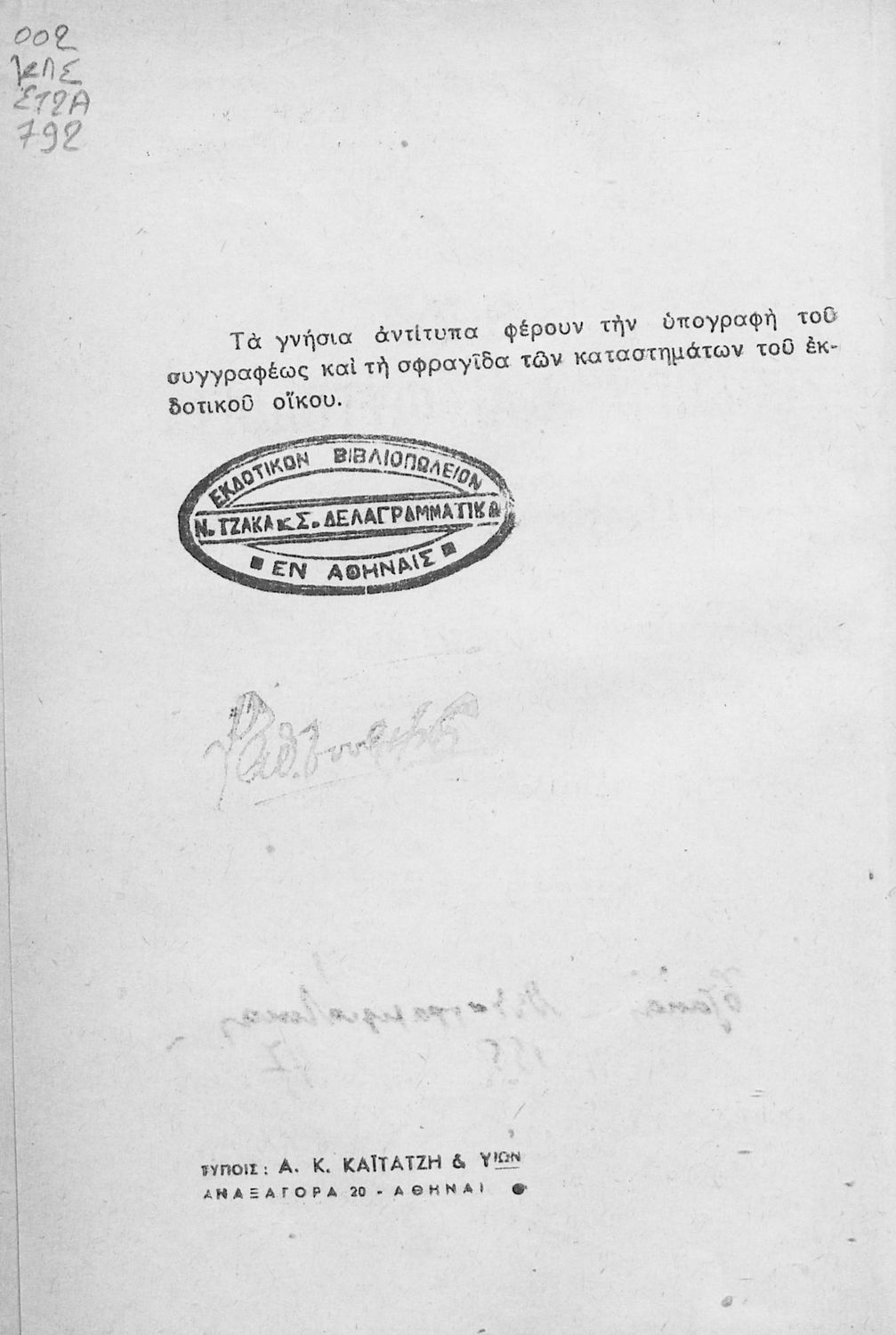 Εκδότης: Δημ. Ν. Τζάκας, Στεφ. Δελαγραμμάτικας