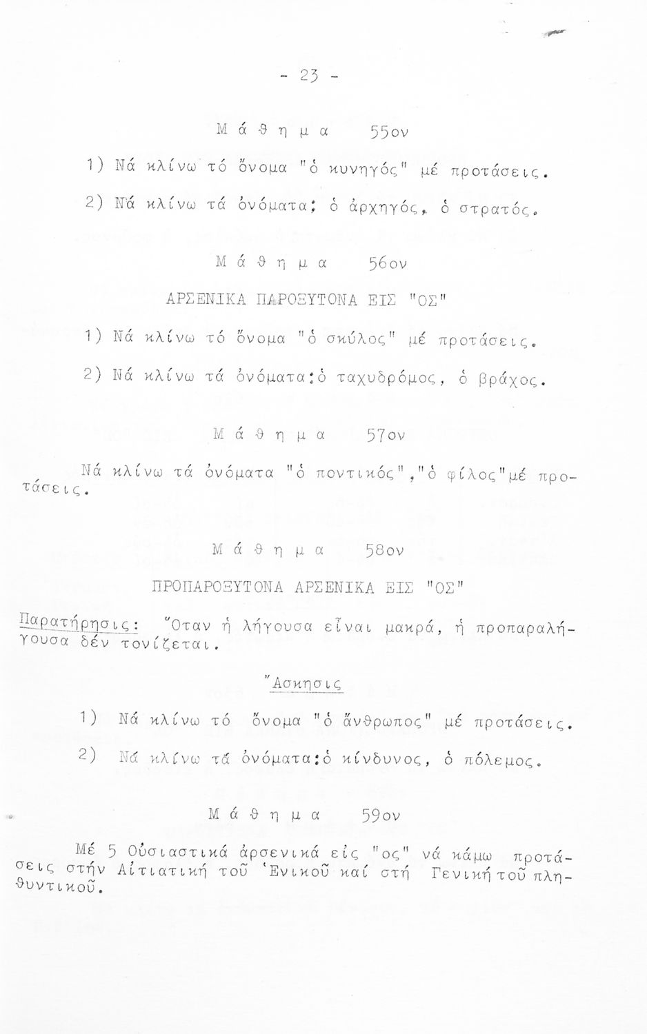 Μαθητικό βοήθημα Αρχαίων Ελληνικών για τη Β΄, Γ΄, Δ΄ Γυμνασίου που περιέχει θέματα από την νέα ελληνική στην αρχαία για την εκμάθηση της γλώσσας, τους κανόνες της γραμματικής και του συντακτικού.