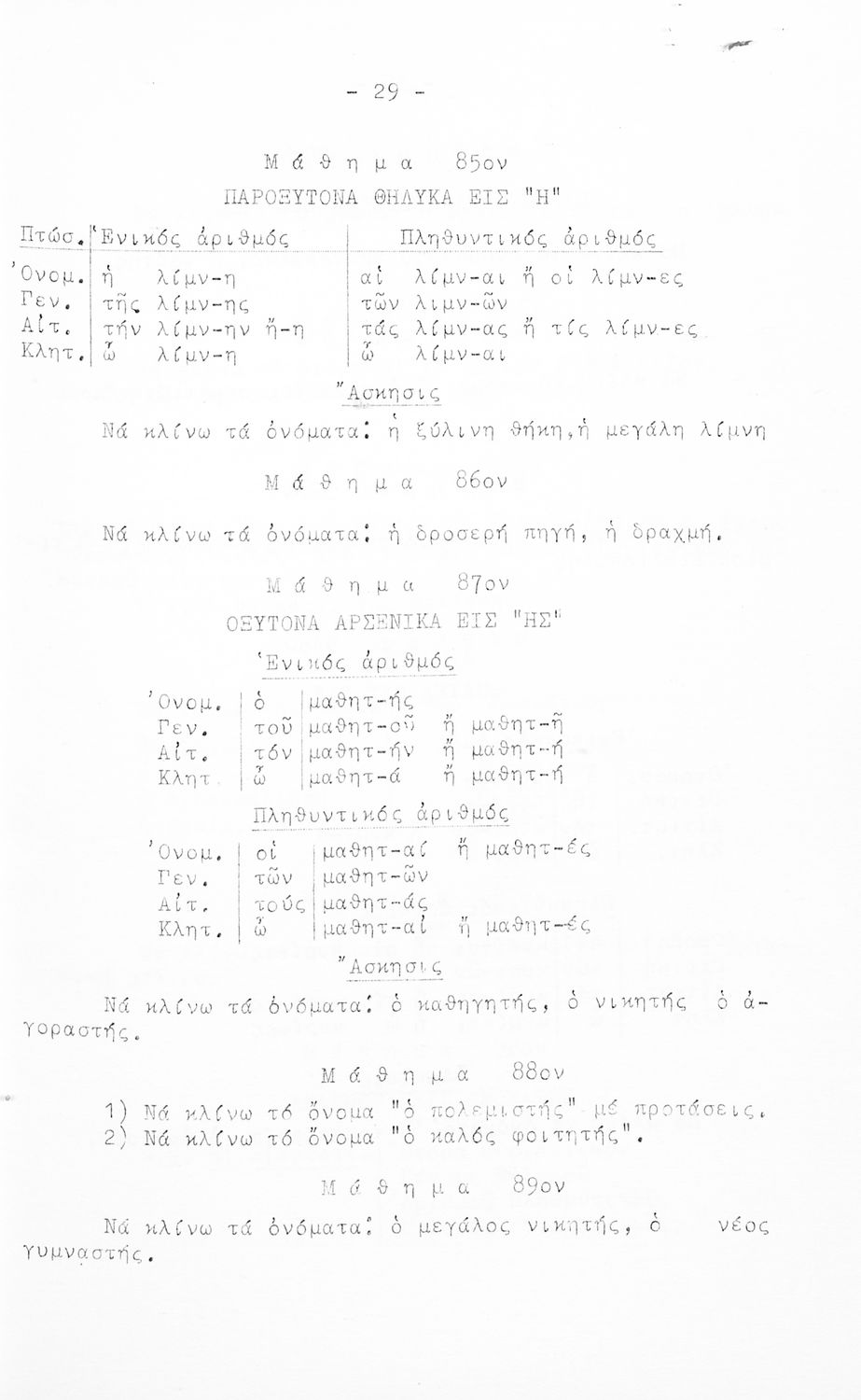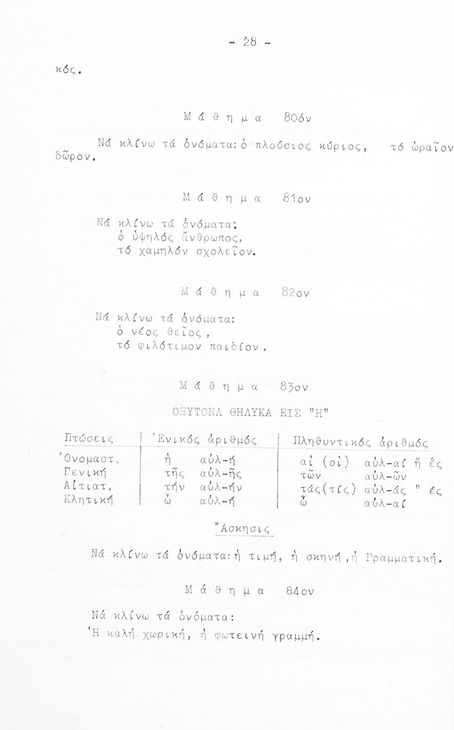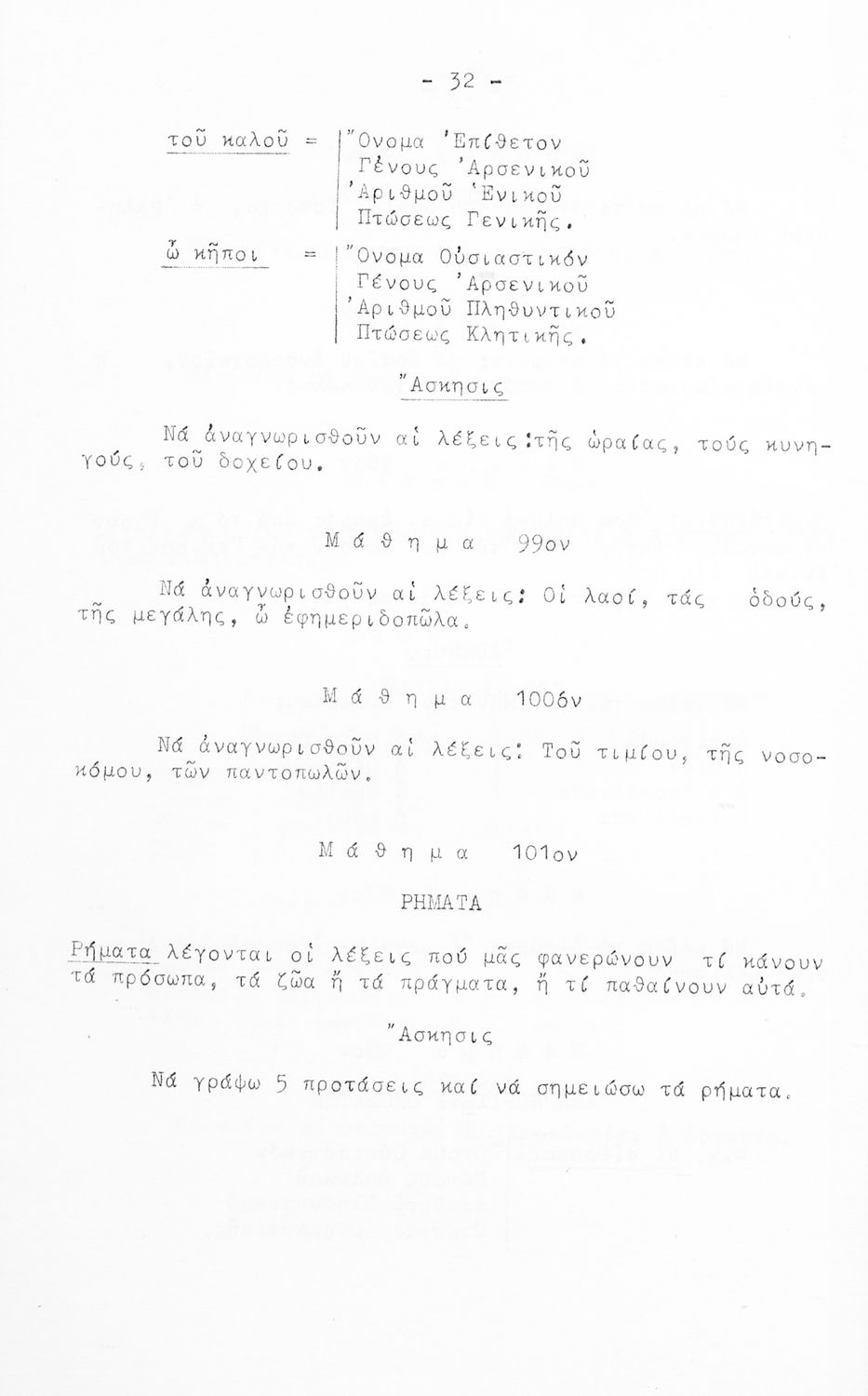 Μαθητικό βοήθημα Ε΄ και ΣΤ΄ Δημοτικού που περιέχει τη γραμματικής της απλής Καθαρεύουσας.