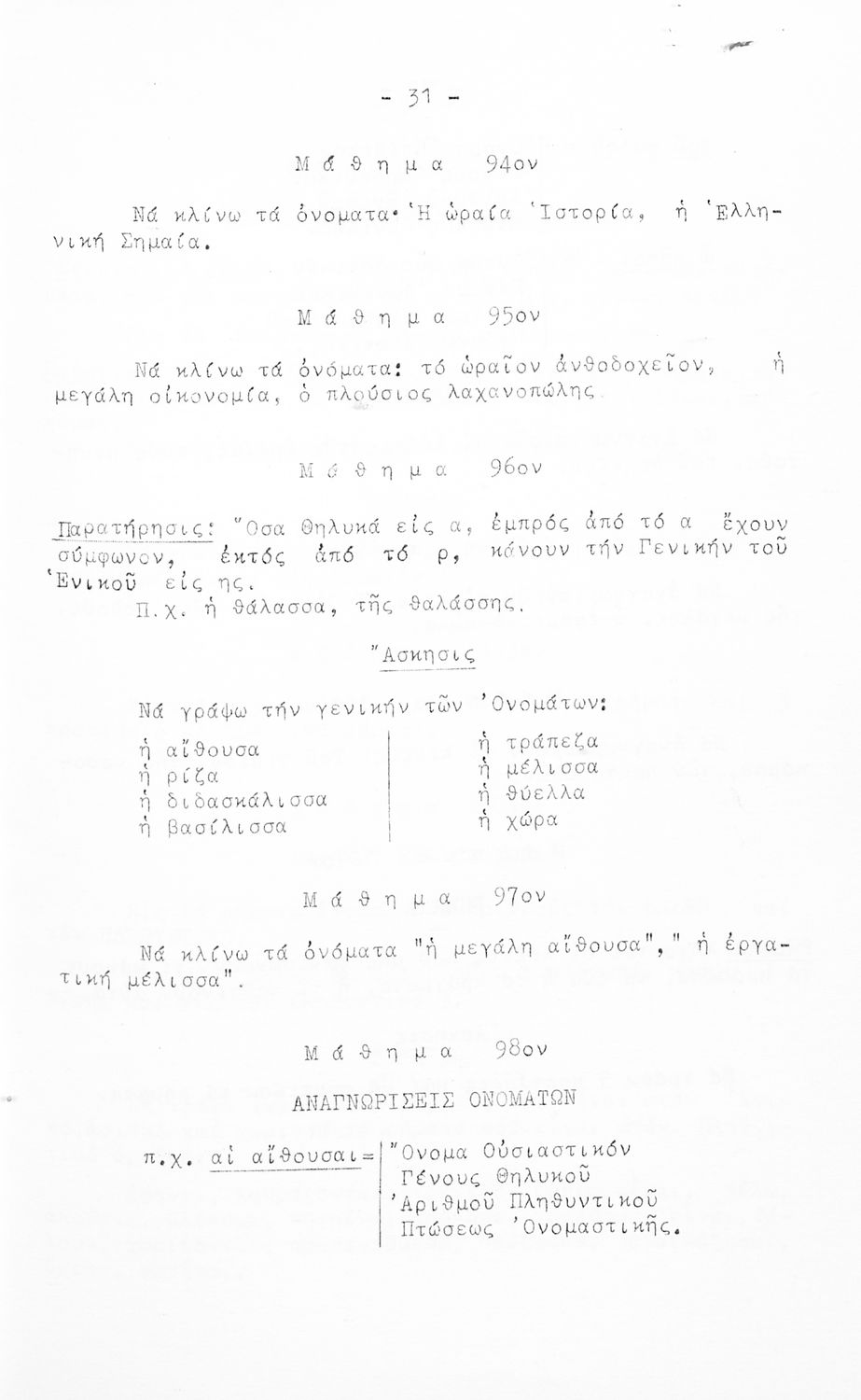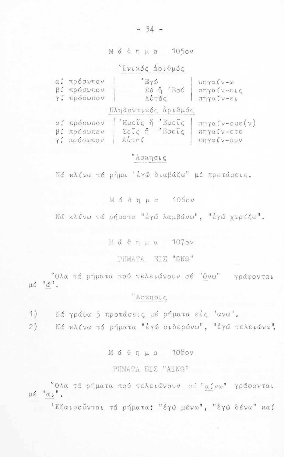 Σχολικό εγχειρίδιο Γ΄ και Δ΄ Δημοτικού που περιέχει τη γραμματικής της νέας ελληνικής. Την έκδοση επιμελήθηκε ο Γ. Λογοθέτης, τέως διευθυντής του επταταξίου δημ. Τμήμ.της Ευαγγελικής Σχολής.