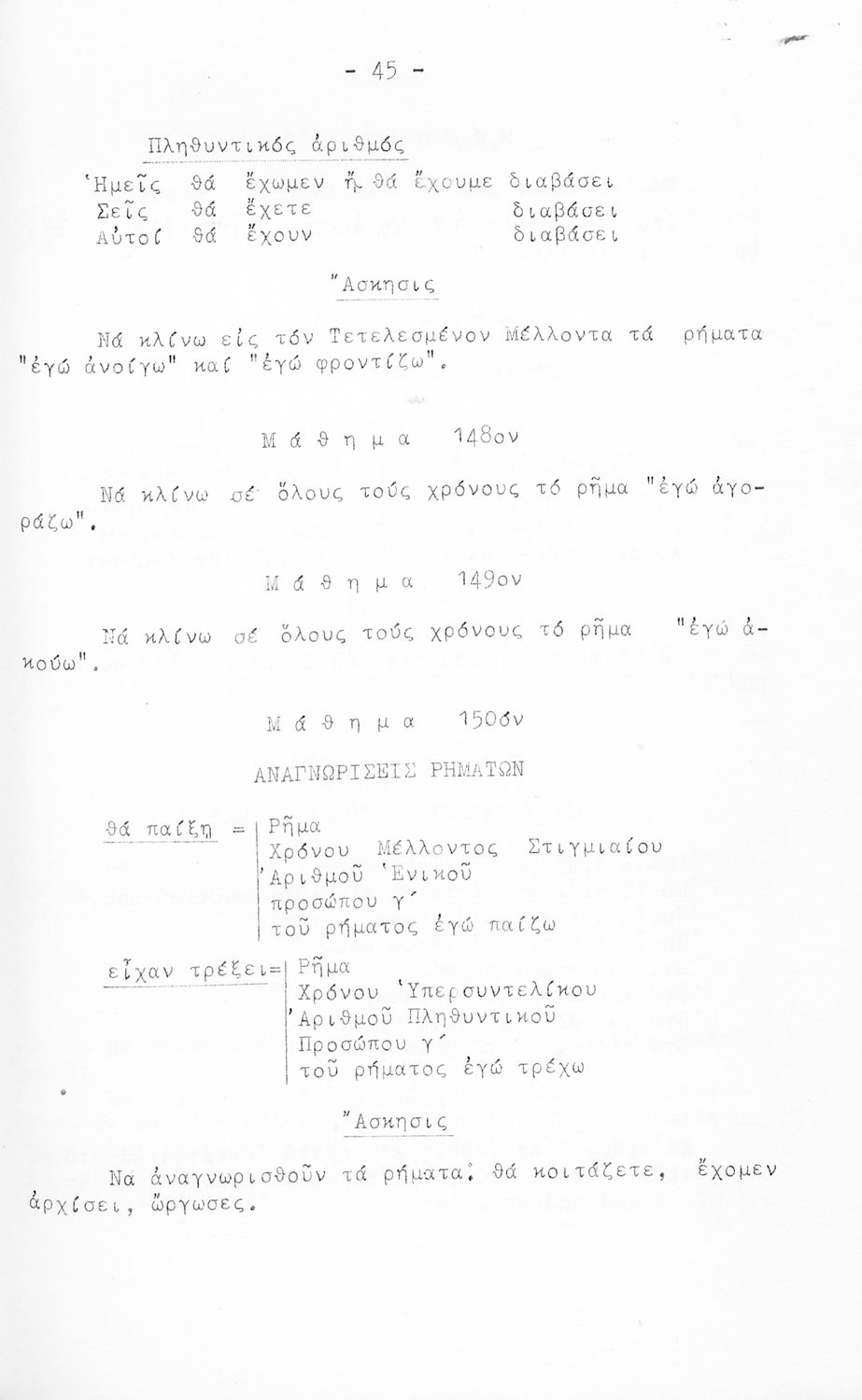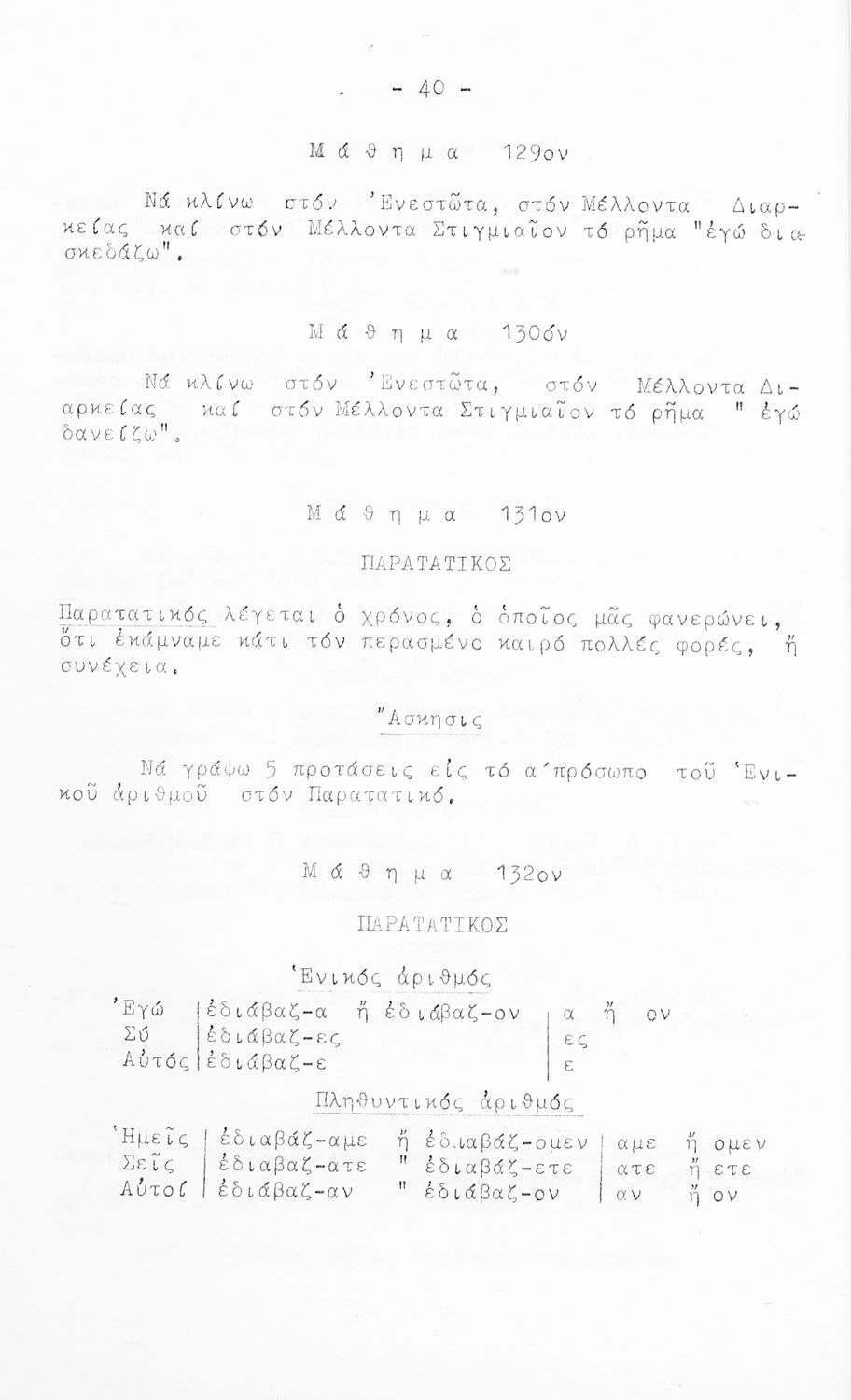 Σχολικό εγχειρίδιο Γ΄ και Δ΄ Δημοτικού που περιέχει τη γραμματικής της νέας ελληνικής. Την έκδοση επιμελήθηκε ο Γ. Λογοθέτης, τέως διευθυντής του επταταξίου δημ. Τμήμ.της Ευαγγελικής Σχολής.