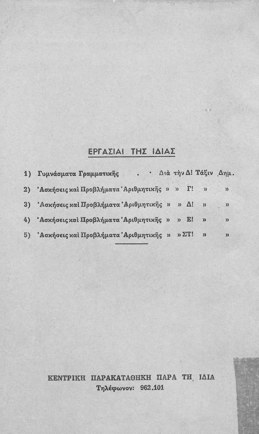 Μαθητικό βοήθημα Ε΄ και ΣΤ΄ Δημοτικού που περιέχει τη γραμματικής της απλής Καθαρεύουσας.