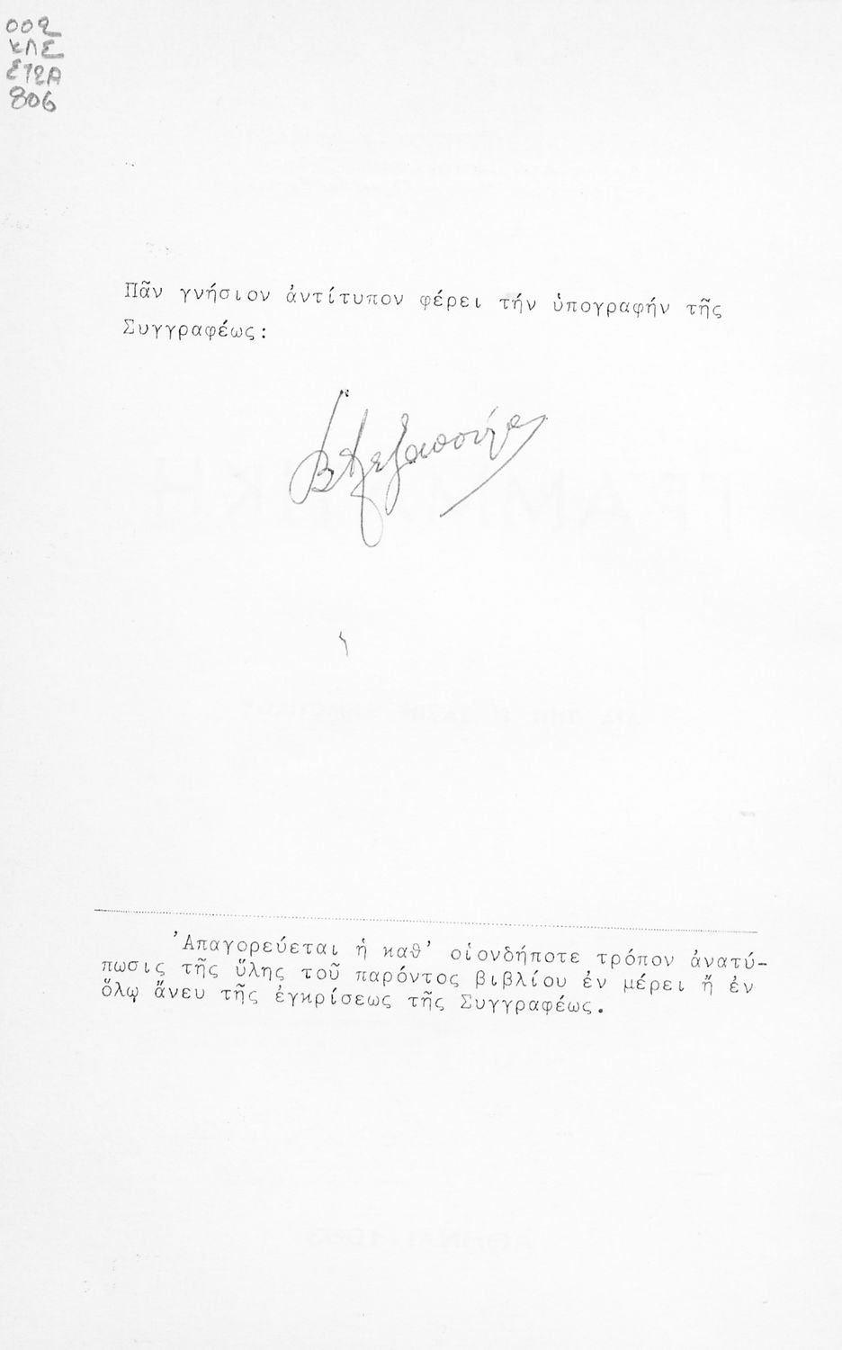 Εντοπισμός πρωτοτύπου: Βιβλιοθήκη της Βουλής των Ελλήνων Κωδικός βιβλιοθήκης: 20560720 |