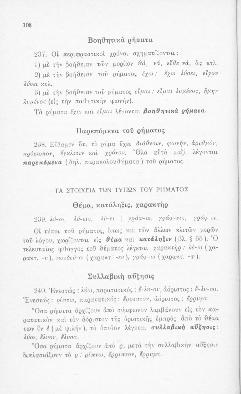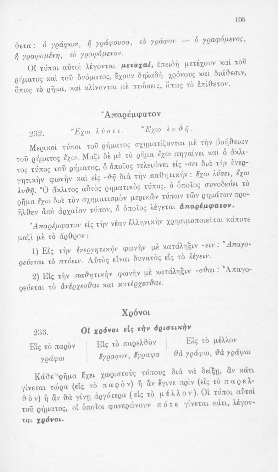 Μαθητικό βοήθημα Γραμματικής για τους μαθητές της Ε΄ και ΣΤ΄ τάξης του Δημοτικού. Περιέχει τη διδασκαλία της γραμματικής της καθαρεύουσας.