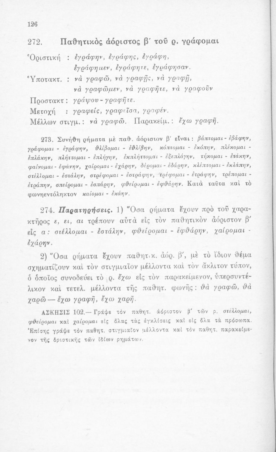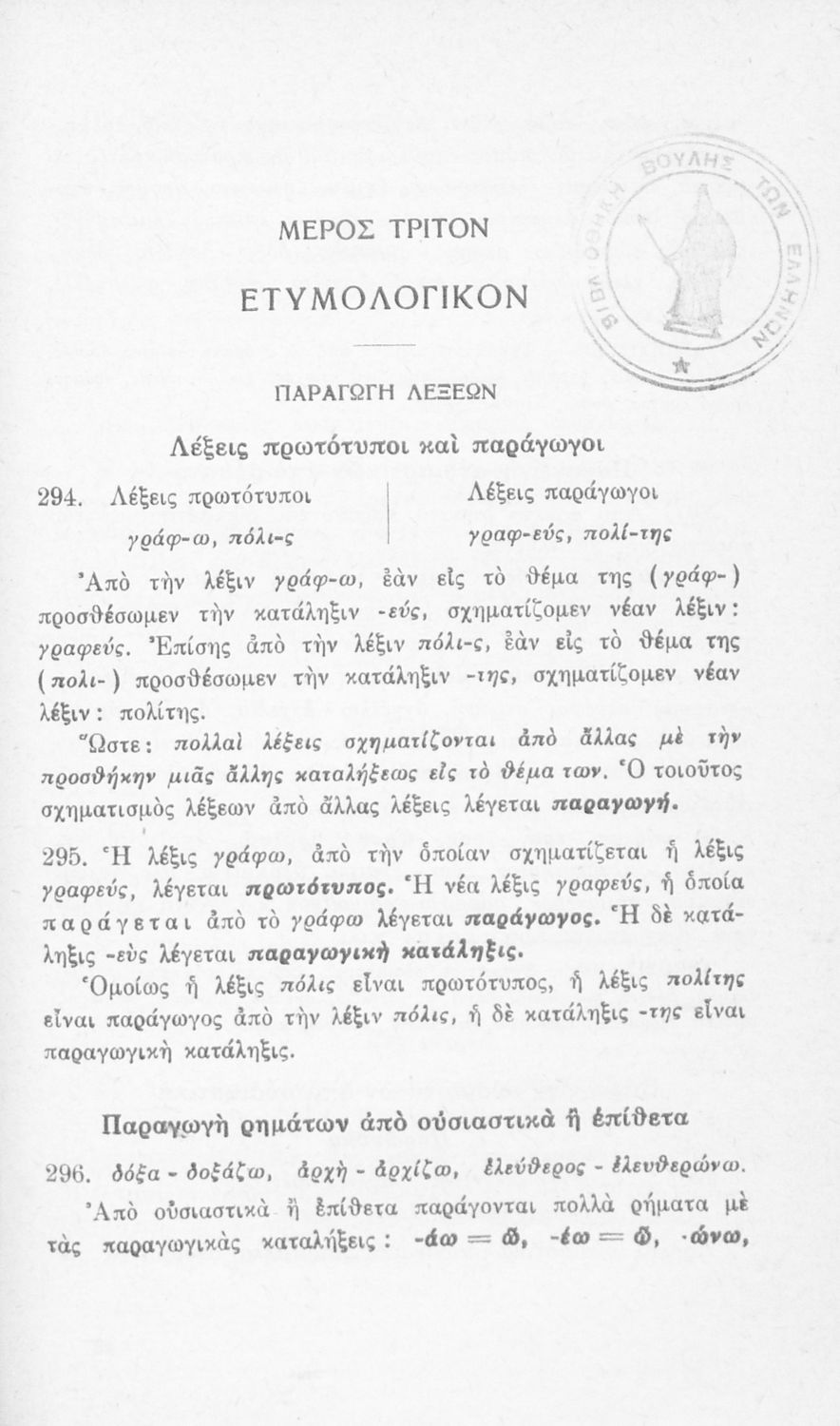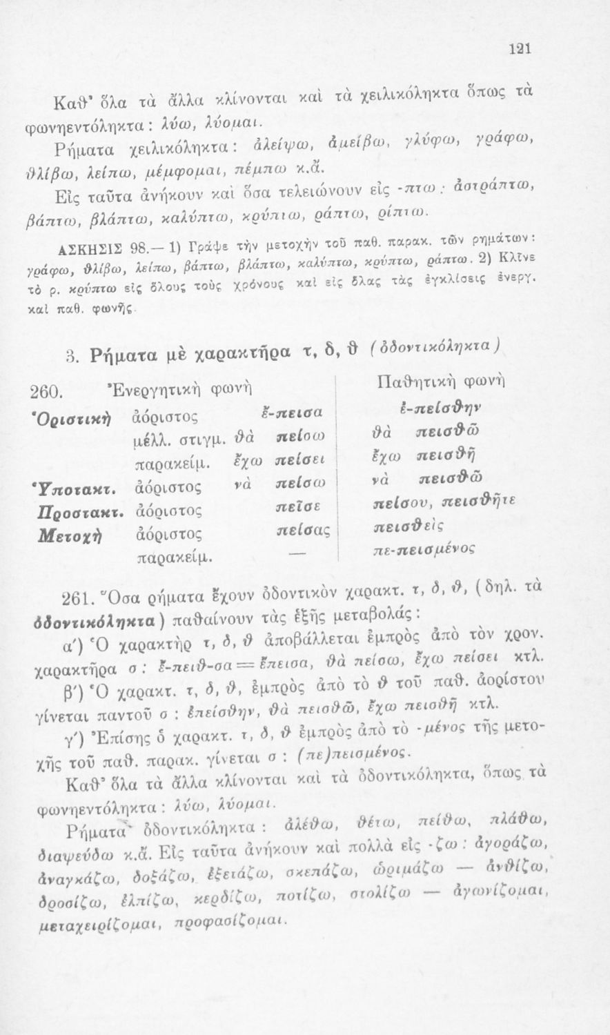 Μαθητικό βοήθημα Γραμματικής για τους μαθητές της Ε΄ και ΣΤ΄ τάξης του Δημοτικού. Περιέχει τη διδασκαλία της γραμματικής της καθαρεύουσας.