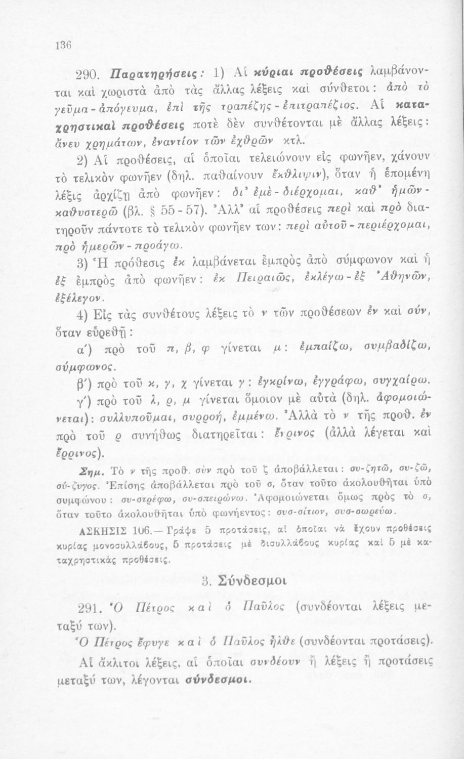 Σχολικό εγχειρίδιο γραμματικής για τους μαθητές της Ε΄ και ΣΤ΄ τάξης του Δημοτικού. Περιέχει τη διδασκαλία της γραμματικής της καθαρεύουσας με κανόνες και παραδείγματα.