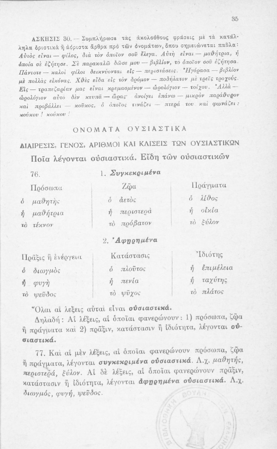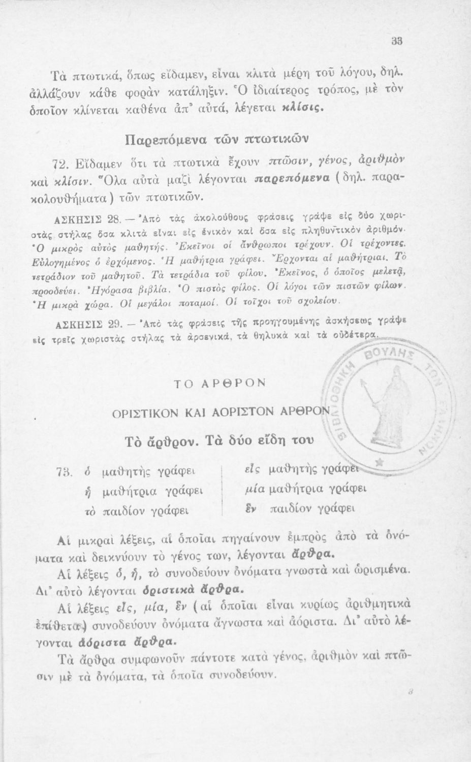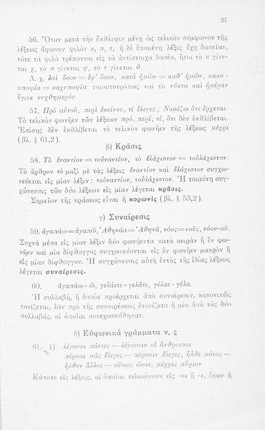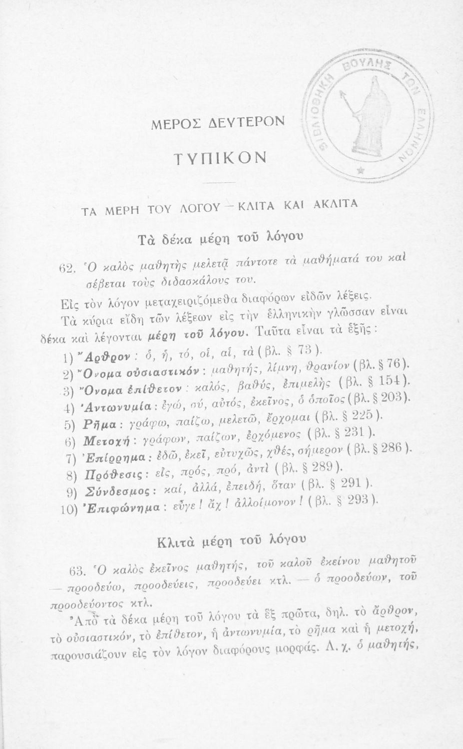 Μαθητικό βοήθημα Ε' και ΣΤ΄ Δημοτικού που περιλαμβάνει τους κανόνες γραμματικής και συντακτικού της καθαρεύουσας.
