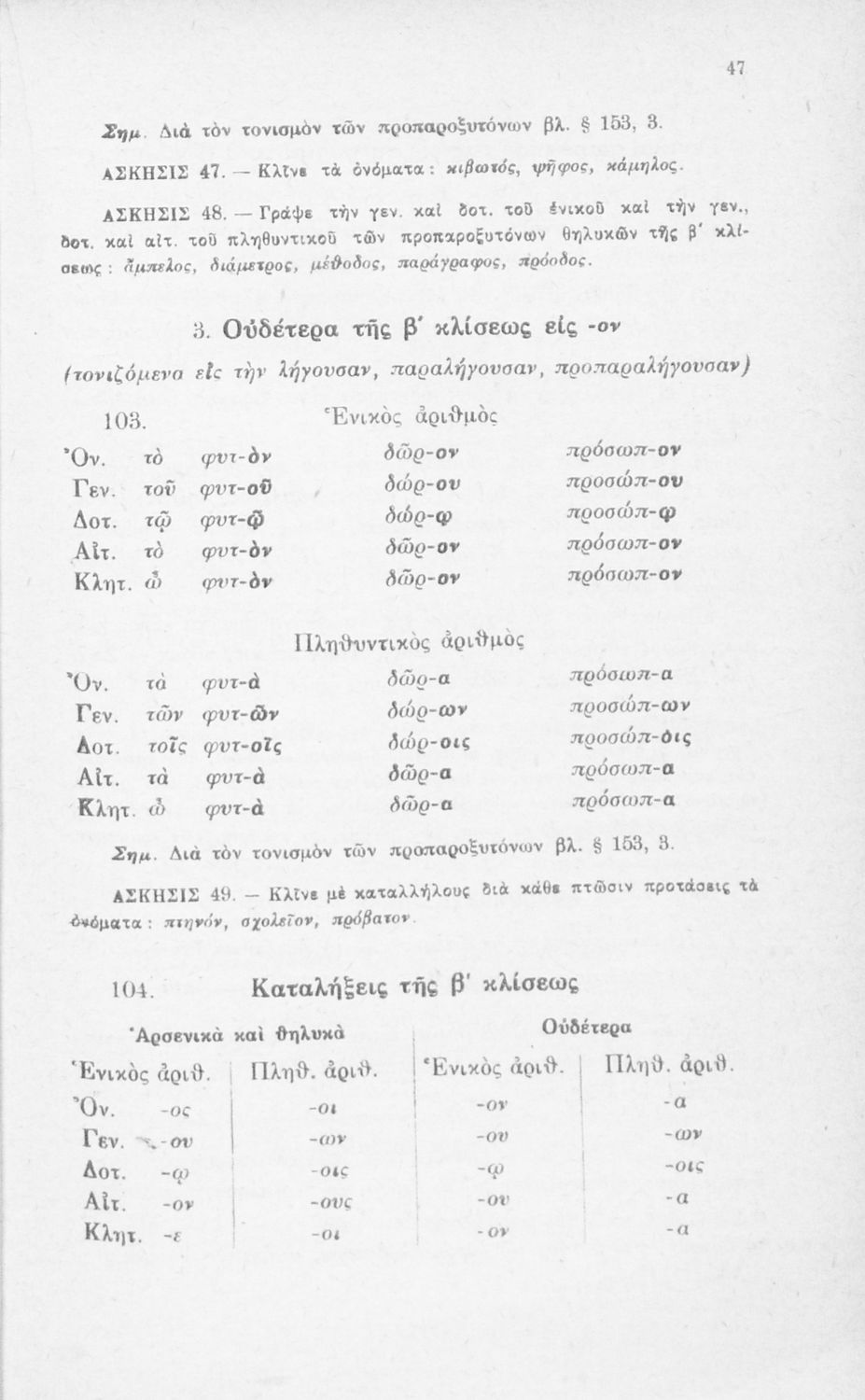 Σχετιζόμενοι όροι:  πτώσεις, ουσιαστικά, επίθετα, ρήματα