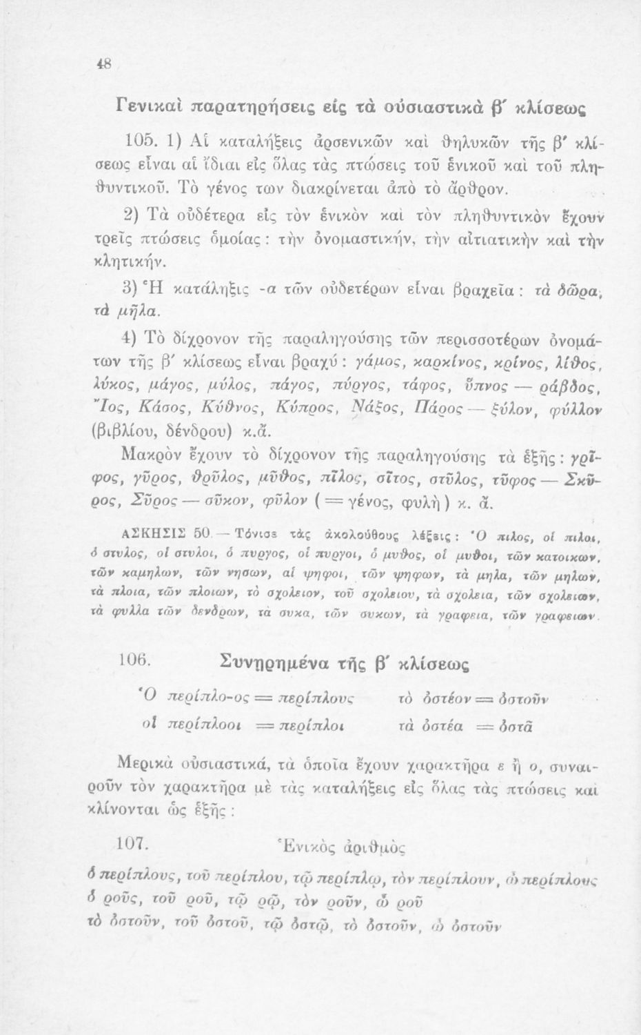 Μαθητικό βοήθημα Γραμματικής για τους μαθητές της Ε΄ και ΣΤ΄ τάξης του Δημοτικού. Περιέχει τη διδασκαλία της γραμματικής της καθαρεύουσας.