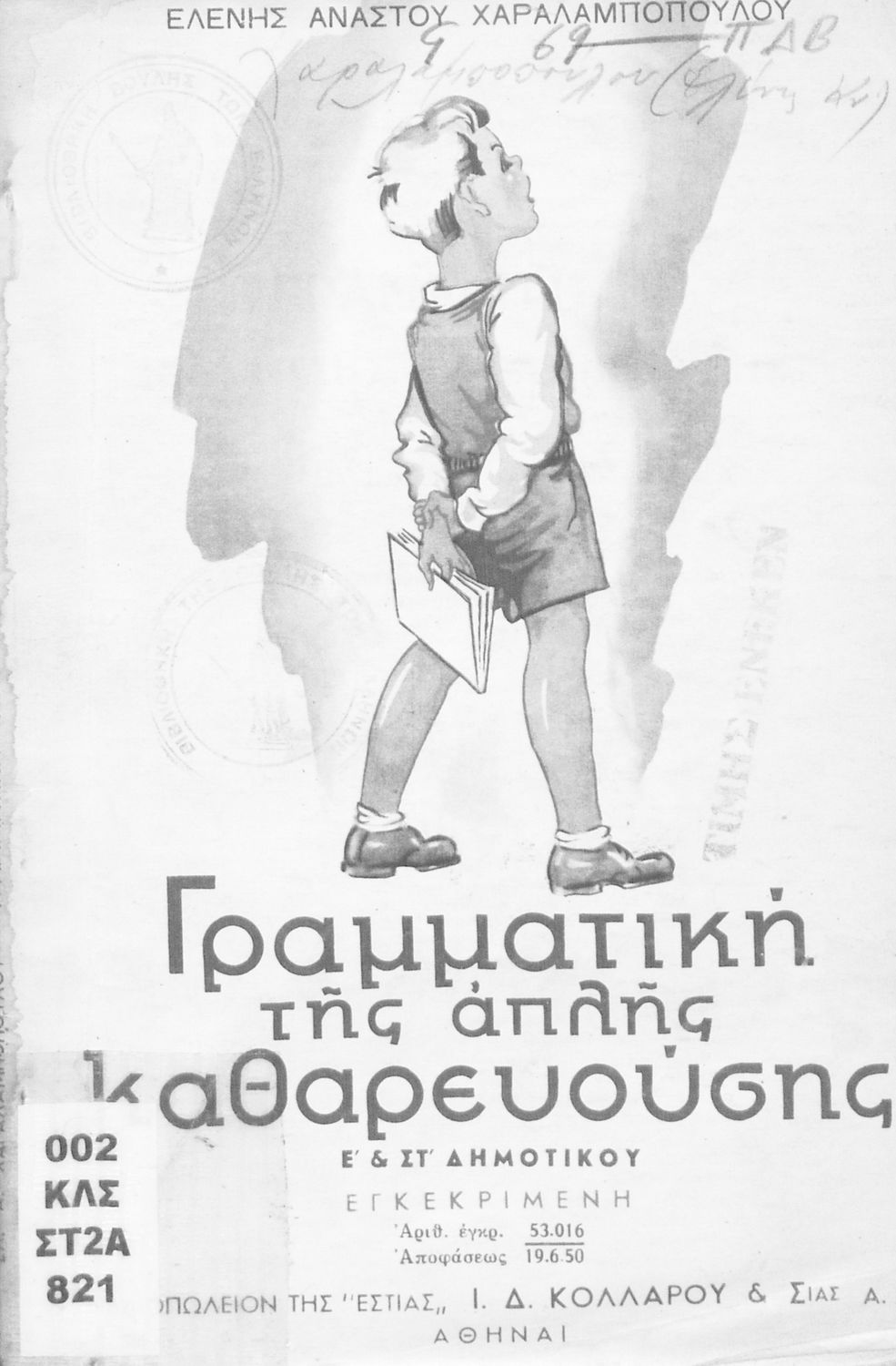 Βαθμίδα εκπαίδευσης: Πρωτοβάθμια Τάξη: Ε' Δημοτικού / ΣΤ' Δημοτικού Μάθημα: Νέα Ελληνικά Γλώσσα: Απλή καθαρεύουσα Παρουσίαση περιεχομένου: Μαθητικό βοήθημα Ε' και ΣΤ΄ Δημοτικού που περιλαμβάνει τους κανόνες γραμματικής και συντακτικού της καθαρεύουσας. |