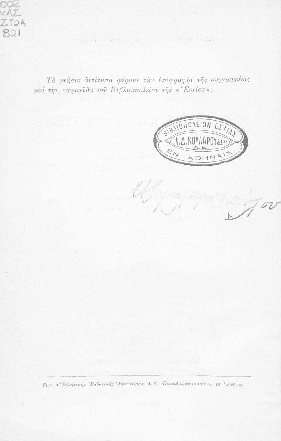 Εντοπισμός πρωτοτύπου: Βιβλιοθήκη της Βουλής των Ελλήνων Κωδικός βιβλιοθήκης: 20560735 |