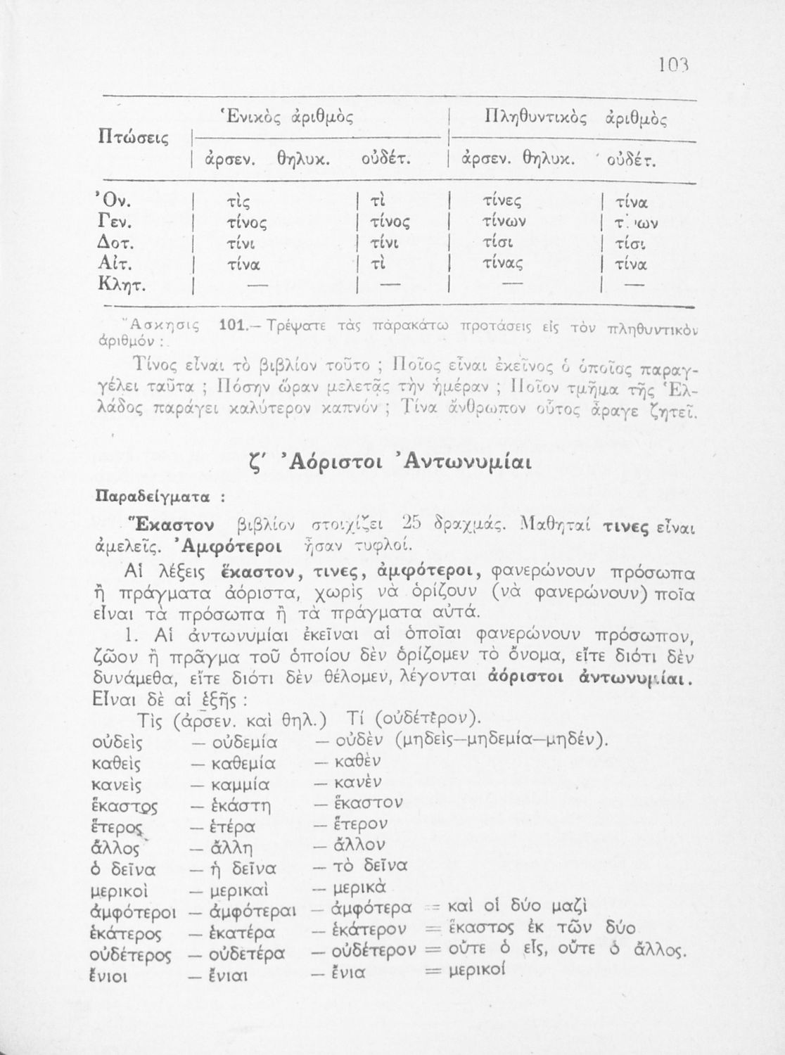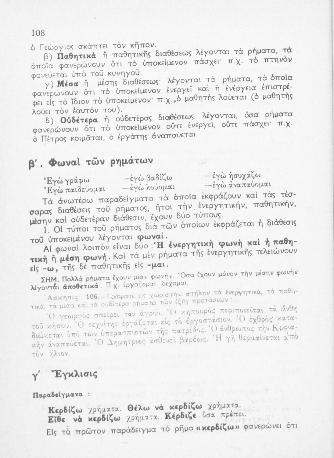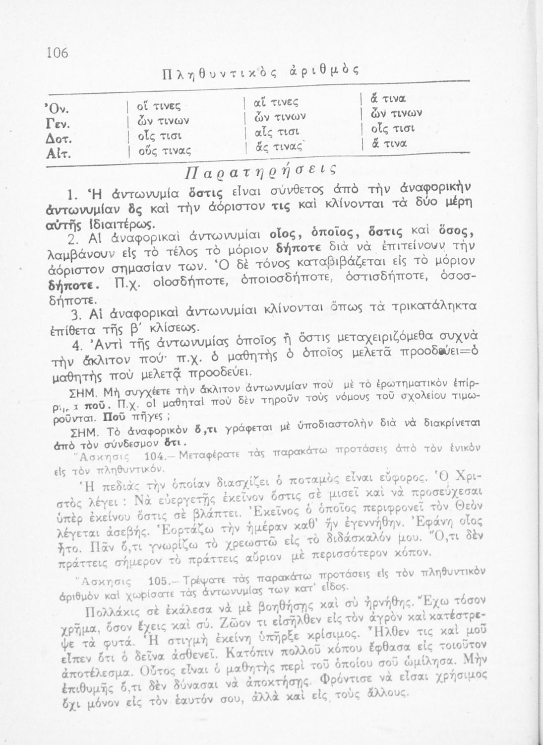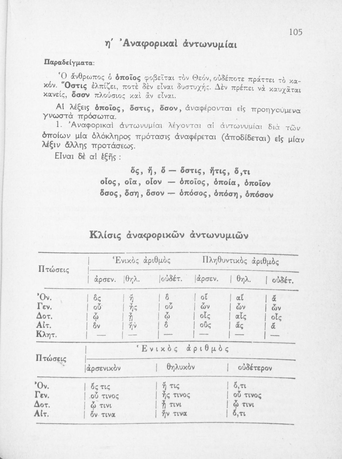 Μαθητικό βοήθημα Γραμματικής για τους μαθητές της Ε΄ και ΣΤ΄ τάξης του Δημοτικού. Περιέχει τη διδασκαλία της γραμματικής της καθαρεύουσας.