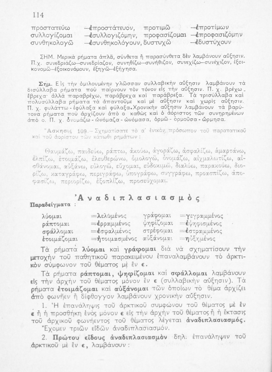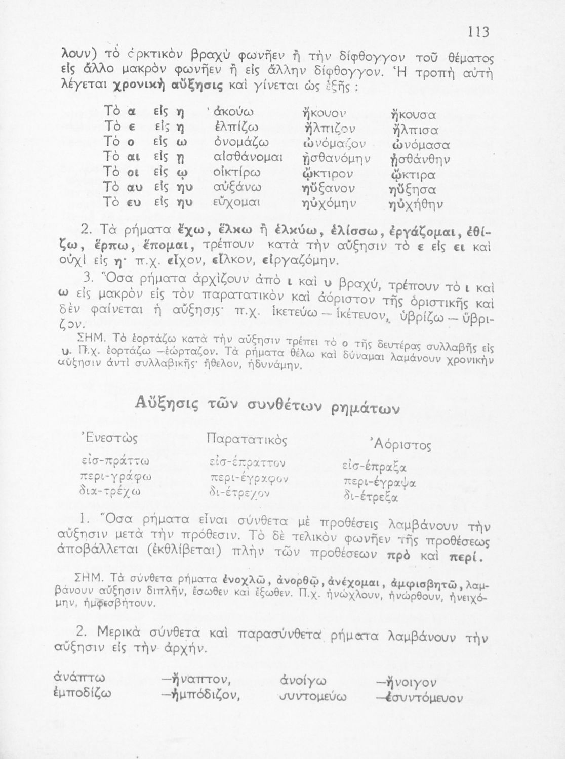 Σχολικό εγχειρίδιο που περιλαμβάνει τη γραμματική της αρχαίας ελληνικής, λεξικό ρημάτων και τους βασικότερους κανόνες του συντακτικού.