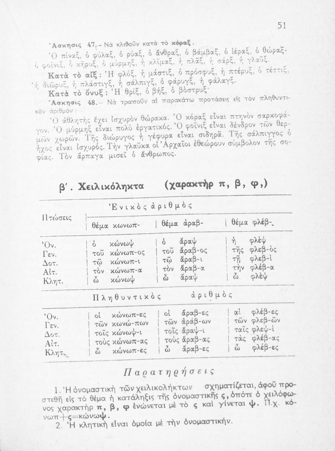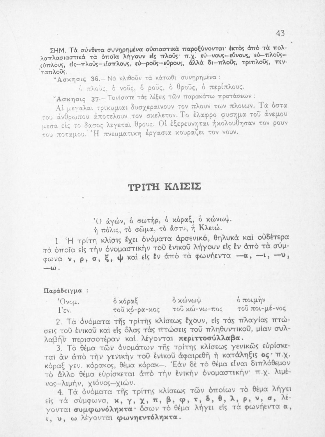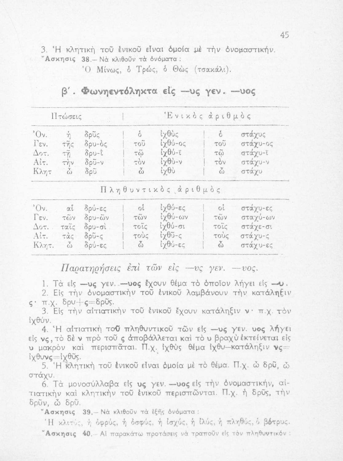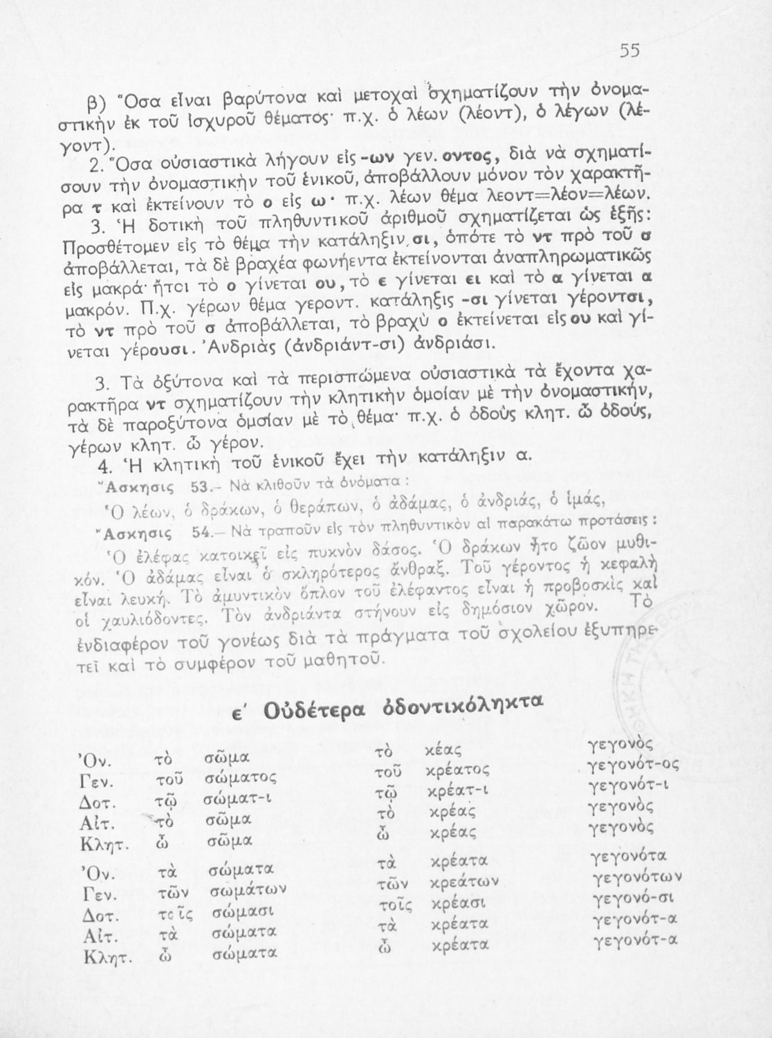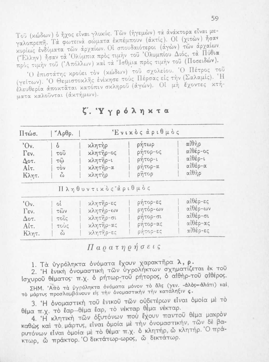Μαθητικό βοήθημα Γραμματικής για τους μαθητές της Ε΄ και ΣΤ΄ τάξης του Δημοτικού. Περιέχει τη διδασκαλία της γραμματικής της καθαρεύουσας.