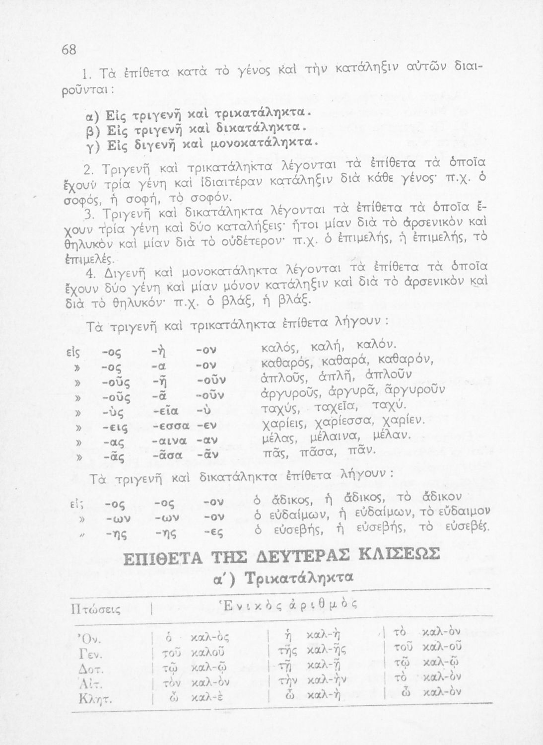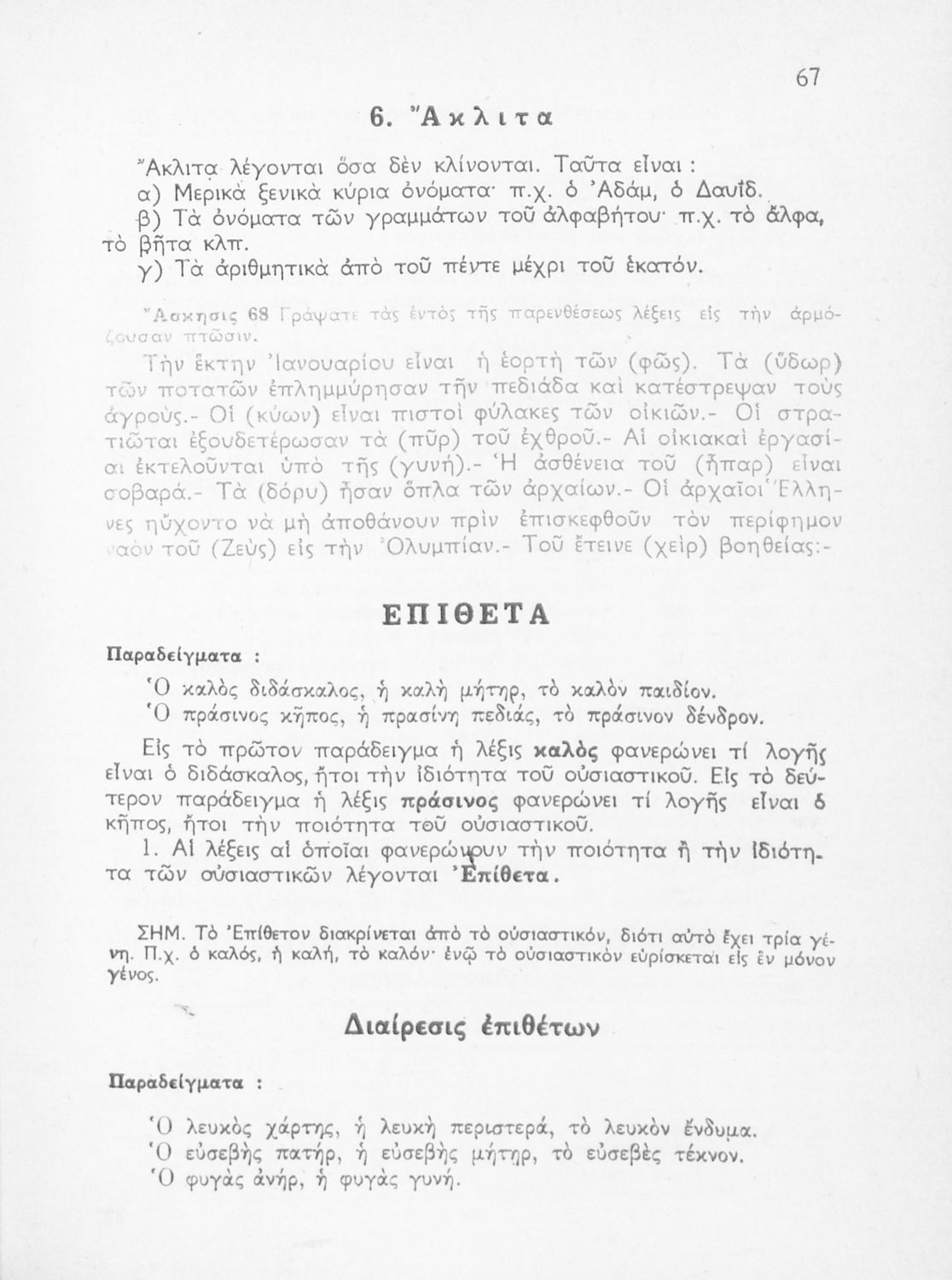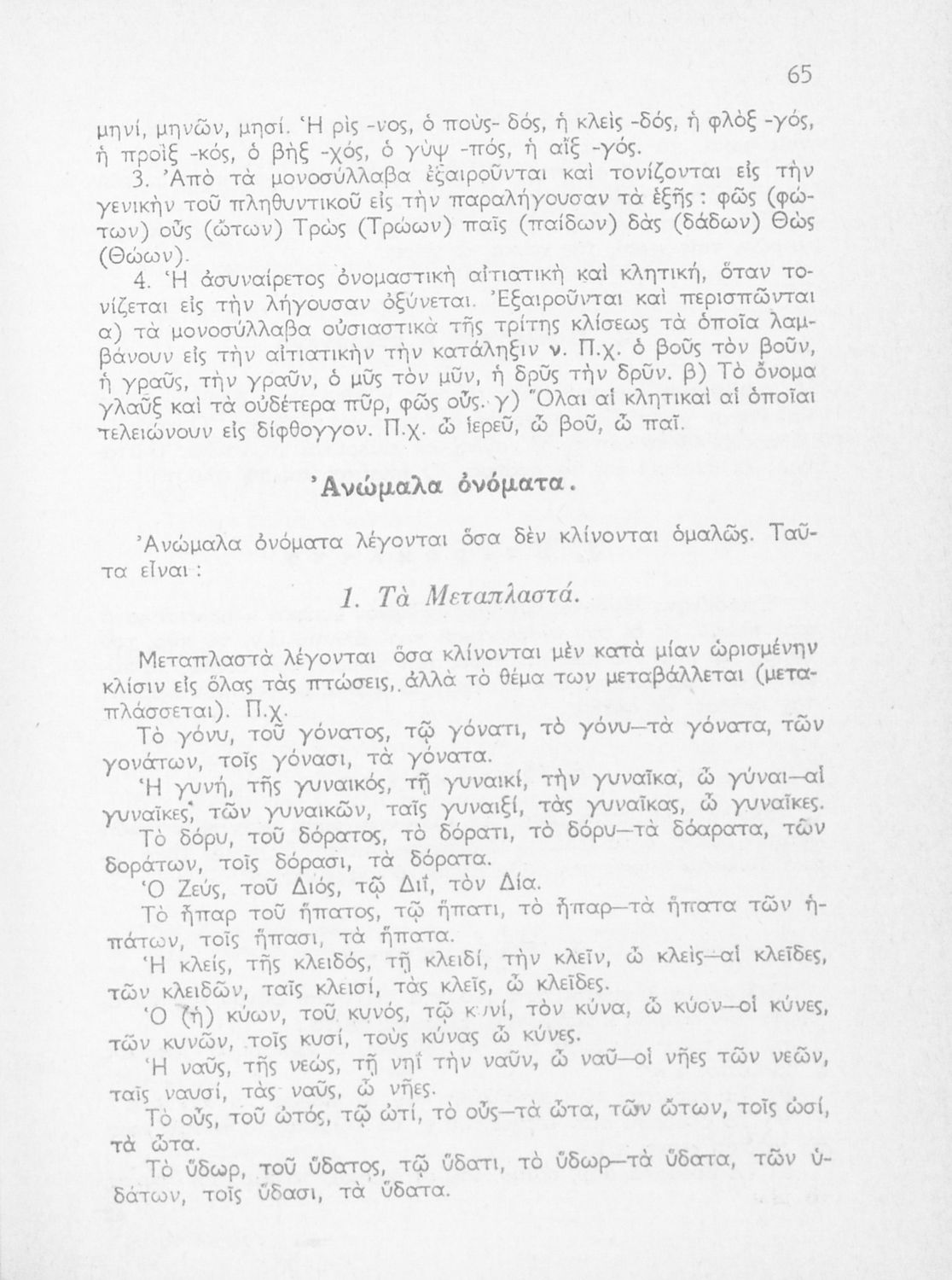Μαθητικό βοήθημα Γραμματικής για τους μαθητές της Ε΄ και ΣΤ΄ τάξης του Δημοτικού. Περιέχει τη διδασκαλία της γραμματικής της καθαρεύουσας.