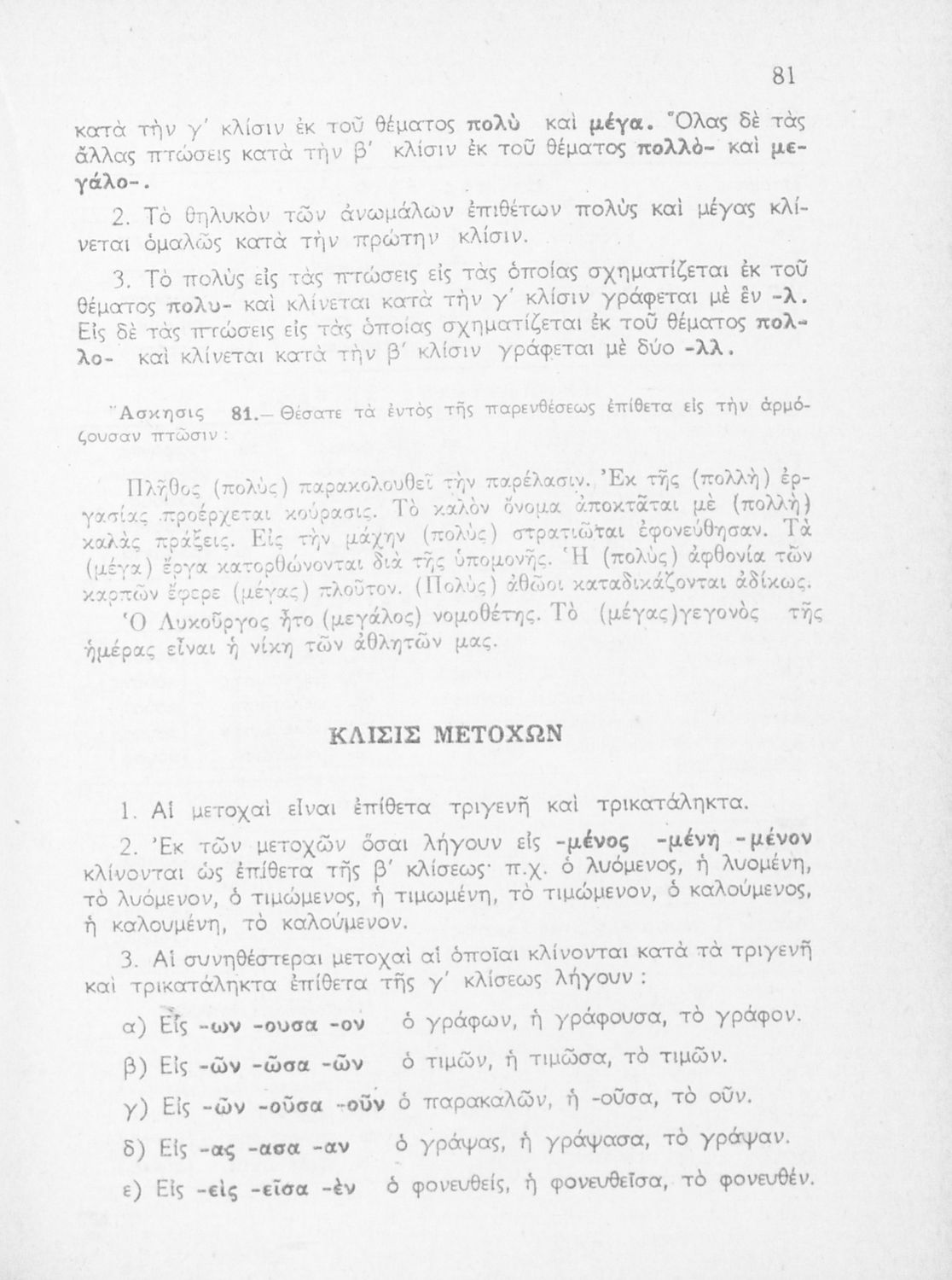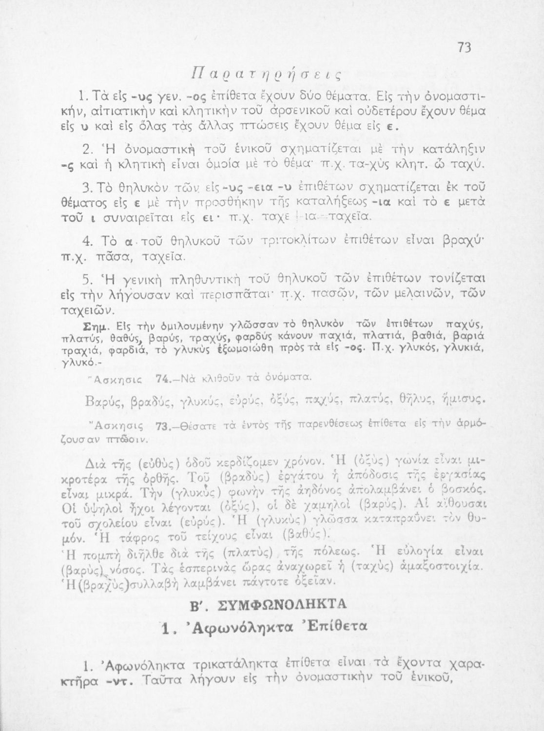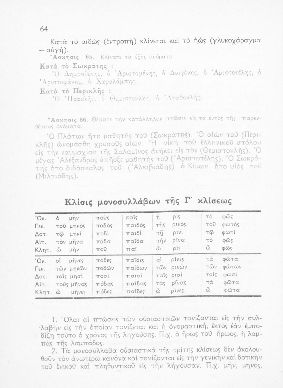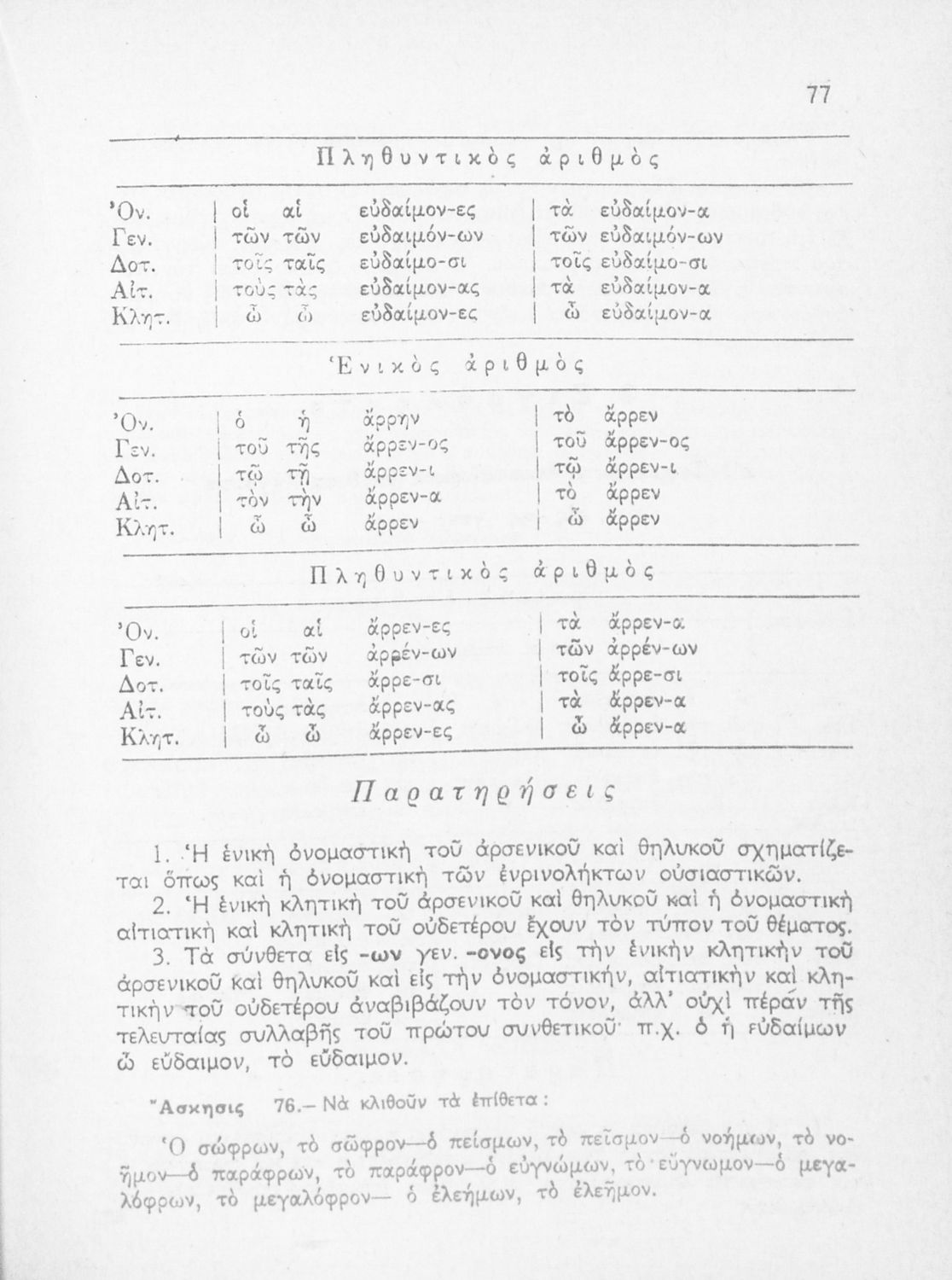 Μαθητικό βοήθημα Γραμματικής για τους μαθητές της Ε΄ και ΣΤ΄ τάξης του Δημοτικού. Περιέχει τη διδασκαλία της γραμματικής της καθαρεύουσας.