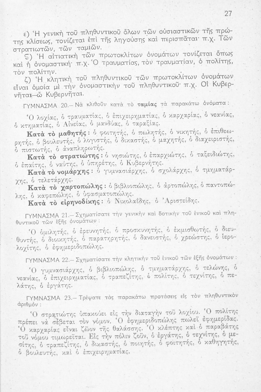 Σχετιζόμενοι όροι:  πτώσεις, ουσιαστικά, επίθετα, ρήματα