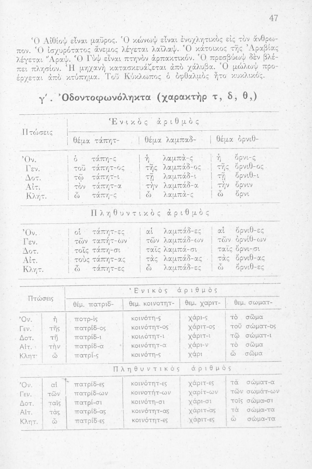 Μαθητικό βοήθημα Ε' και ΣΤ΄ Δημοτικού που περιλαμβάνει τους κανόνες γραμματικής και συντακτικού της καθαρεύουσας.