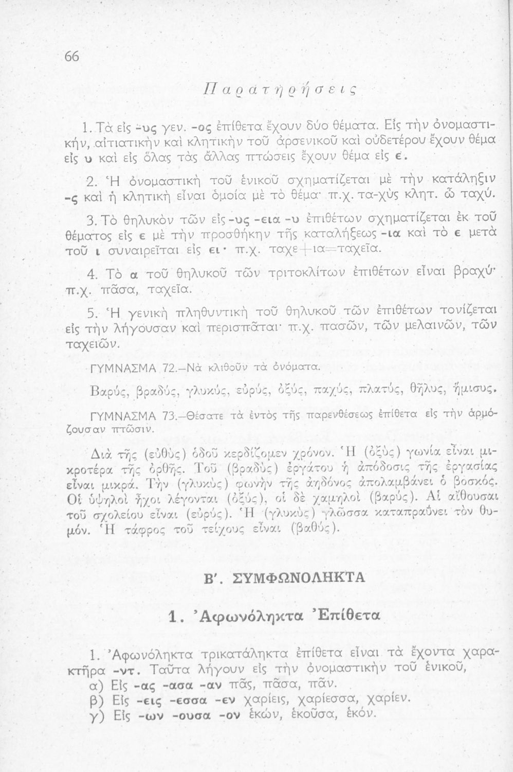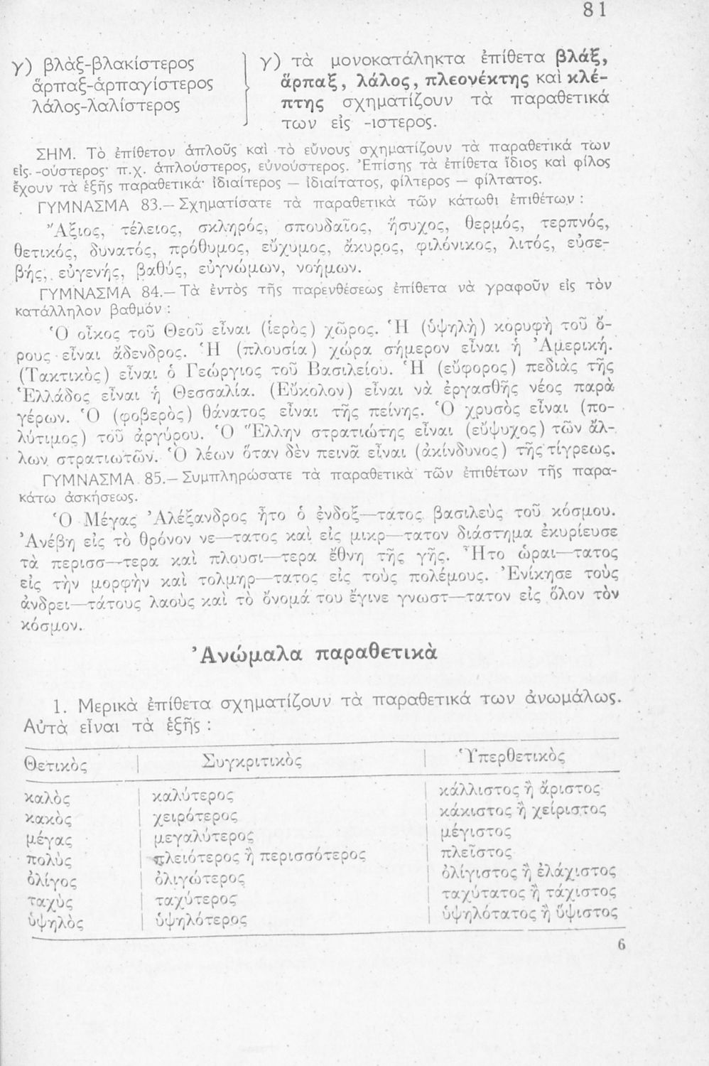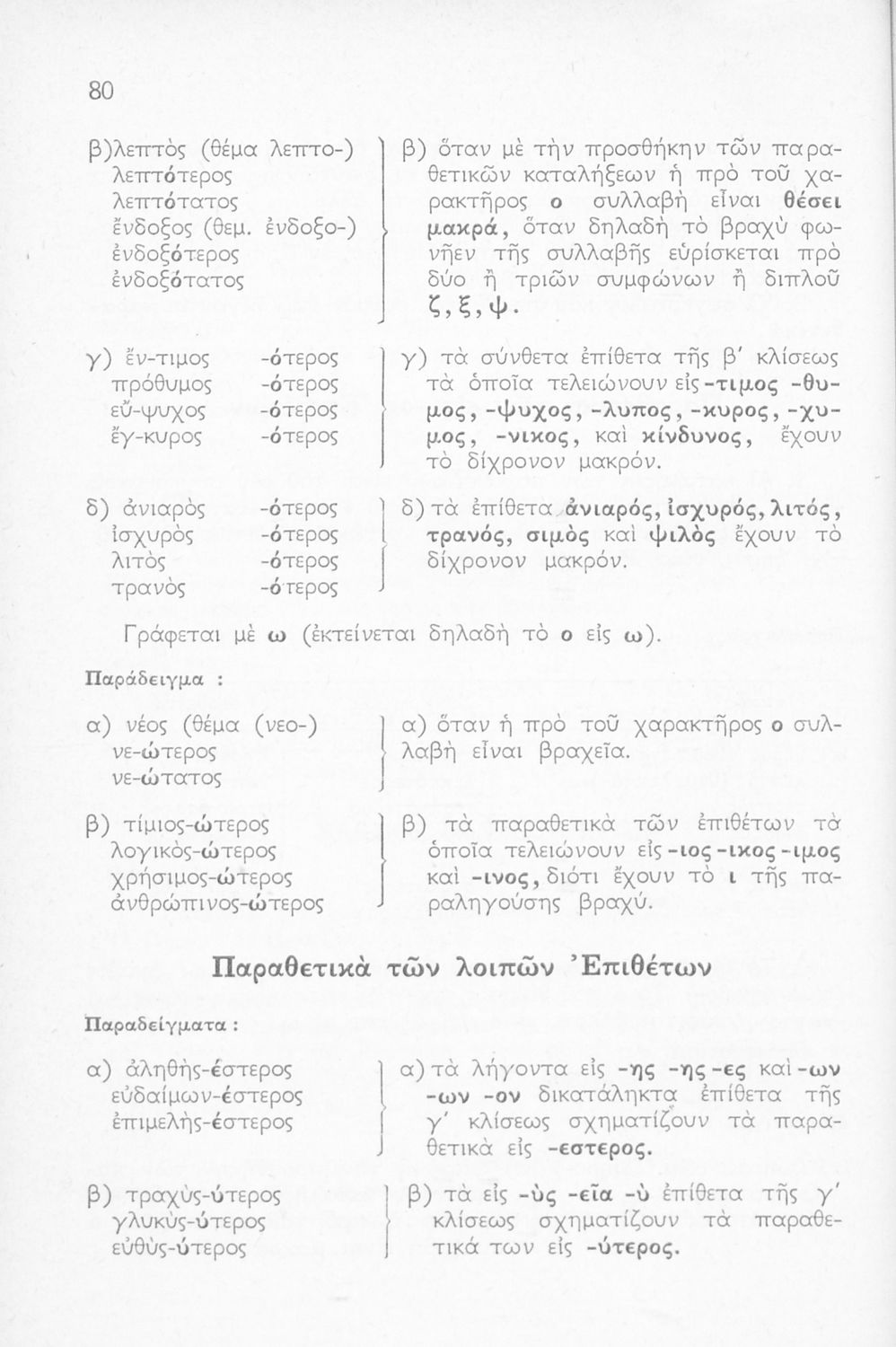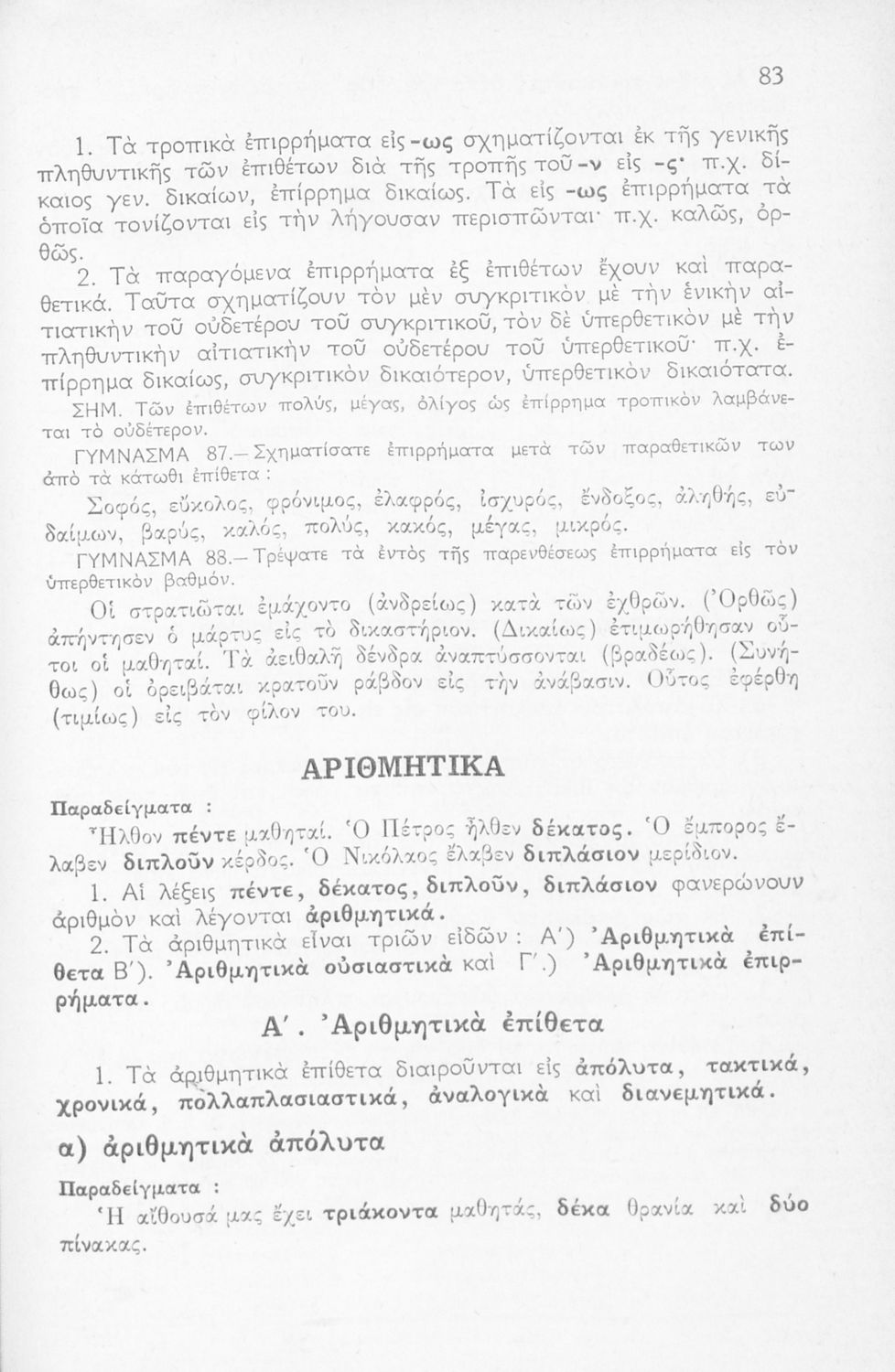 Μαθητικό βοήθημα Γραμματικής για τους μαθητές της Ε΄ και ΣΤ΄ τάξης του Δημοτικού. Περιέχει τη διδασκαλία της γραμματικής της καθαρεύουσας.