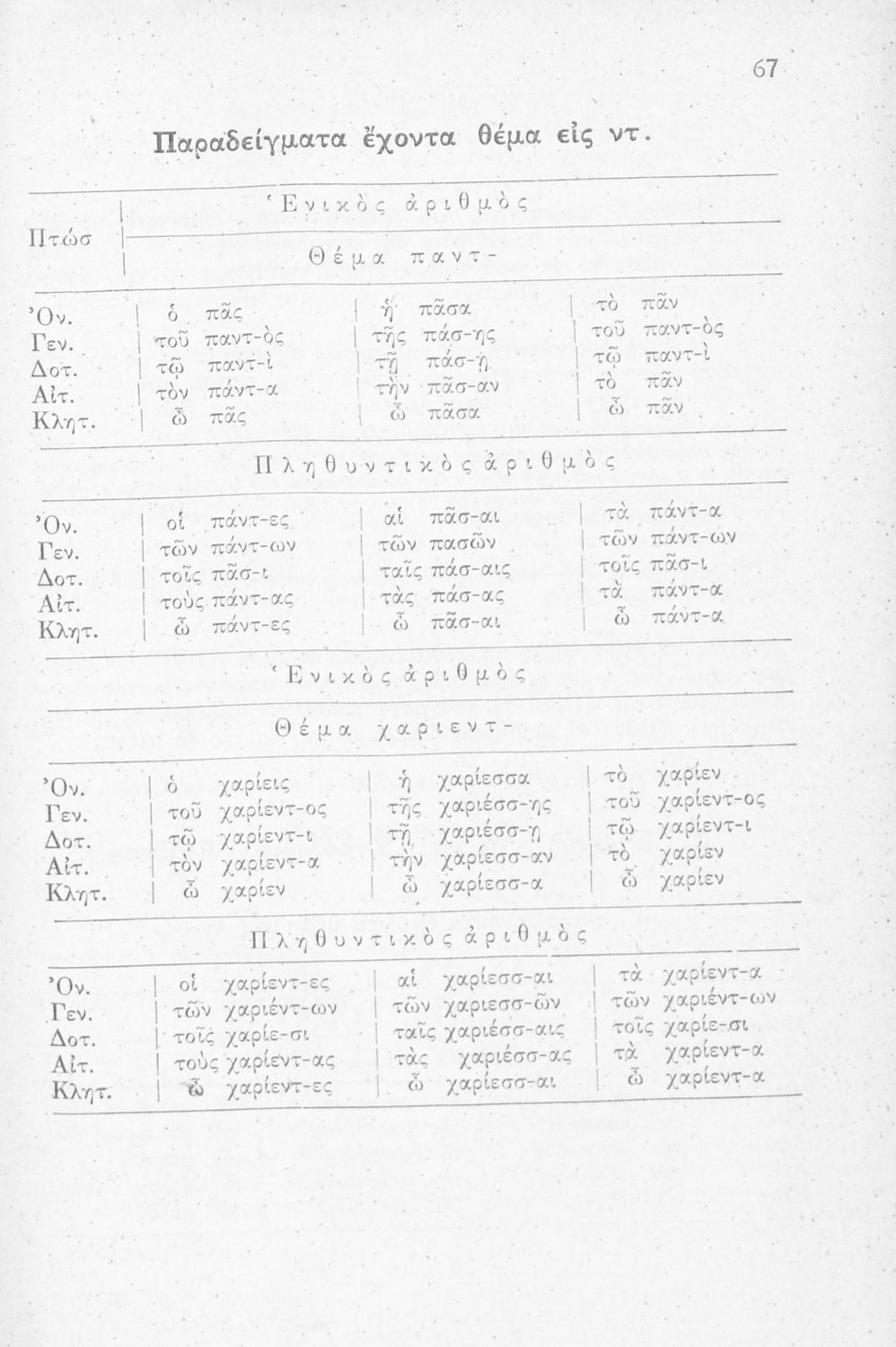 Μαθητικό βοήθημα Ε΄ και ΣΤ΄ Δημοτικού που περιέχει τη γραμματικής της απλής Καθαρεύουσας.