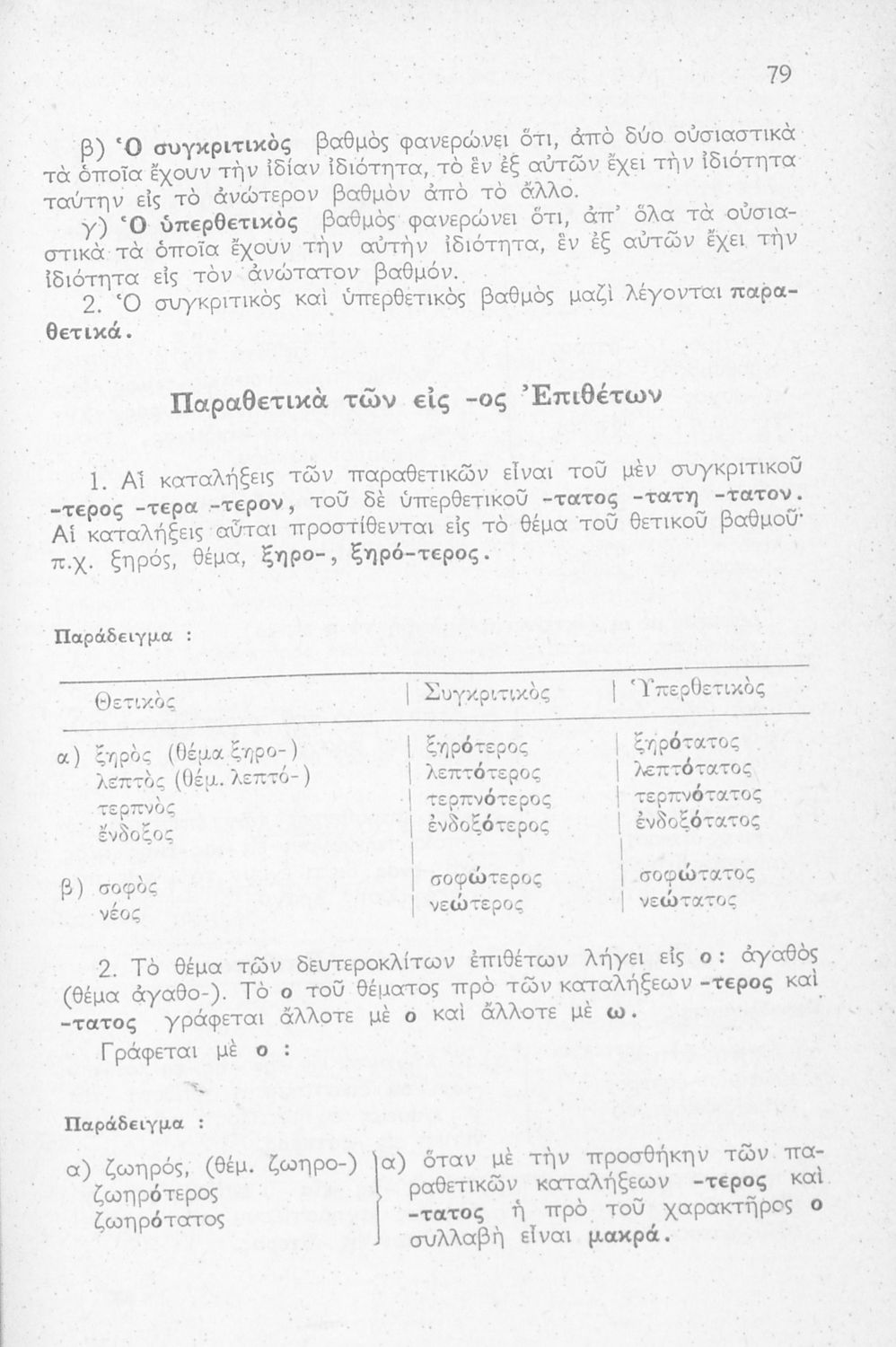 Σχολικό εγχειρίδιο γραμματικής για τους μαθητές της Ε΄ και ΣΤ΄ τάξης του Δημοτικού. Περιέχει τη διδασκαλία της γραμματικής της καθαρεύουσας με κανόνες και παραδείγματα.