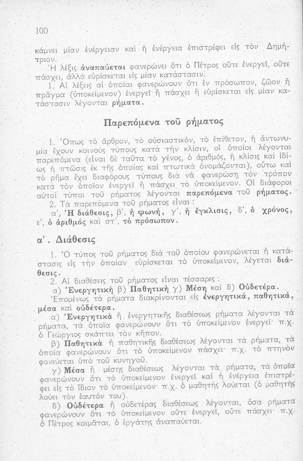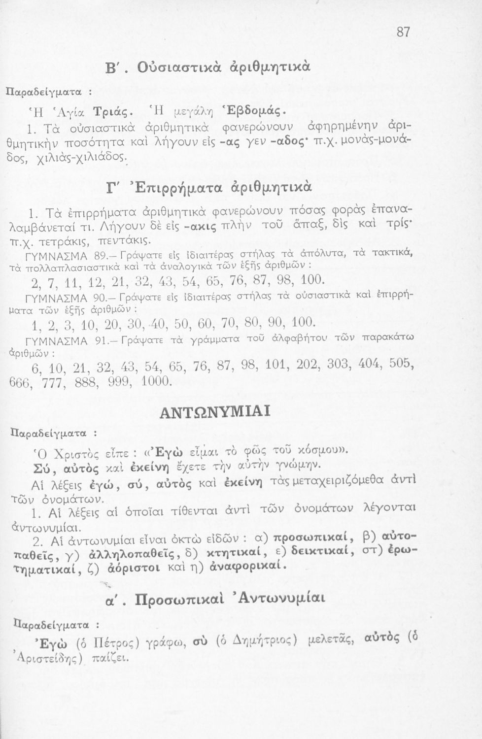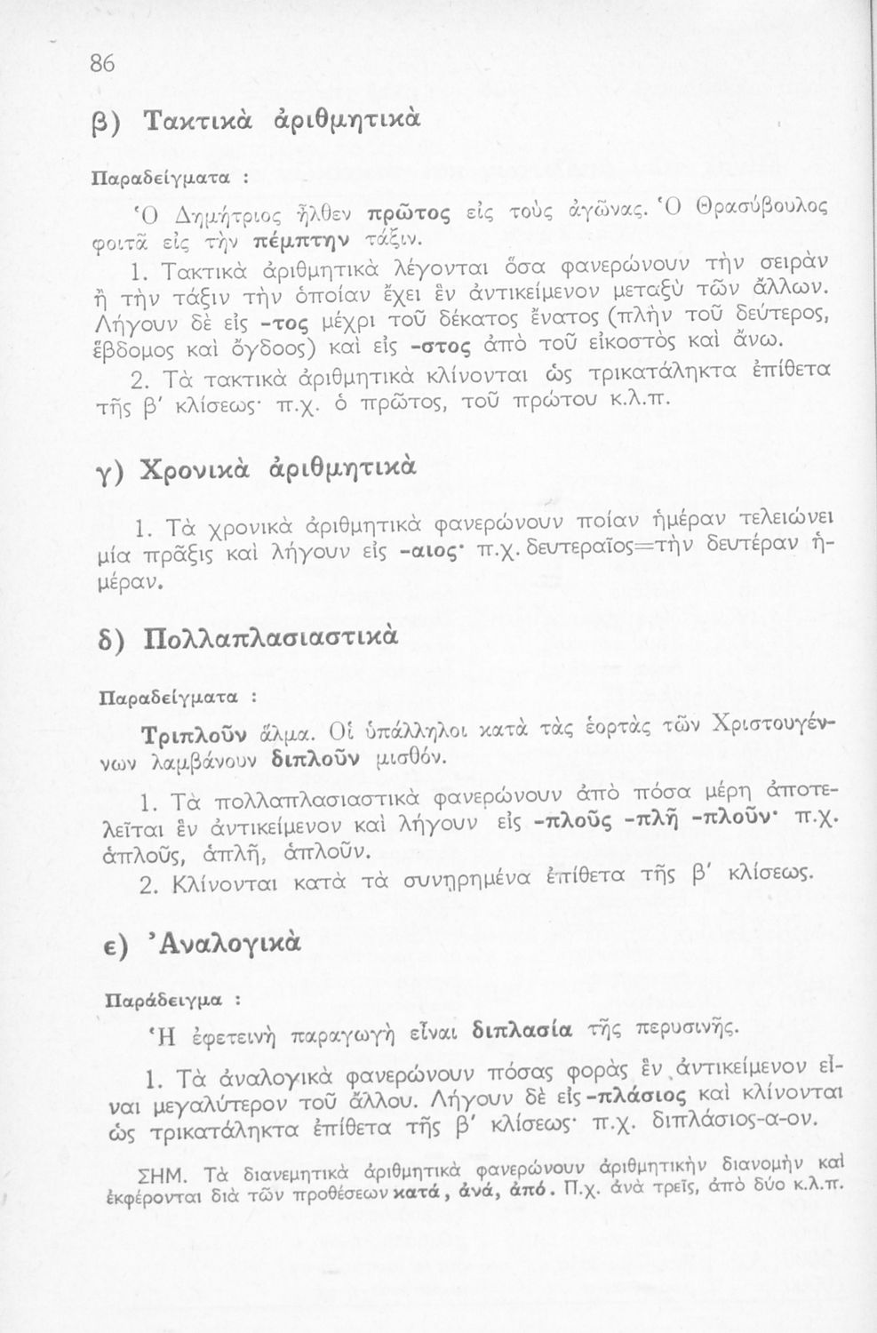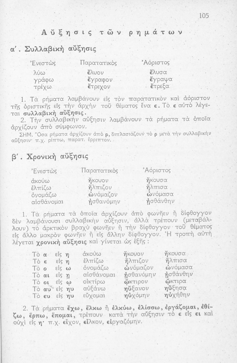 Μαθητικό βοήθημα Γραμματικής για τους μαθητές της Ε΄ και ΣΤ΄ τάξης του Δημοτικού. Περιέχει τη διδασκαλία της γραμματικής της καθαρεύουσας.