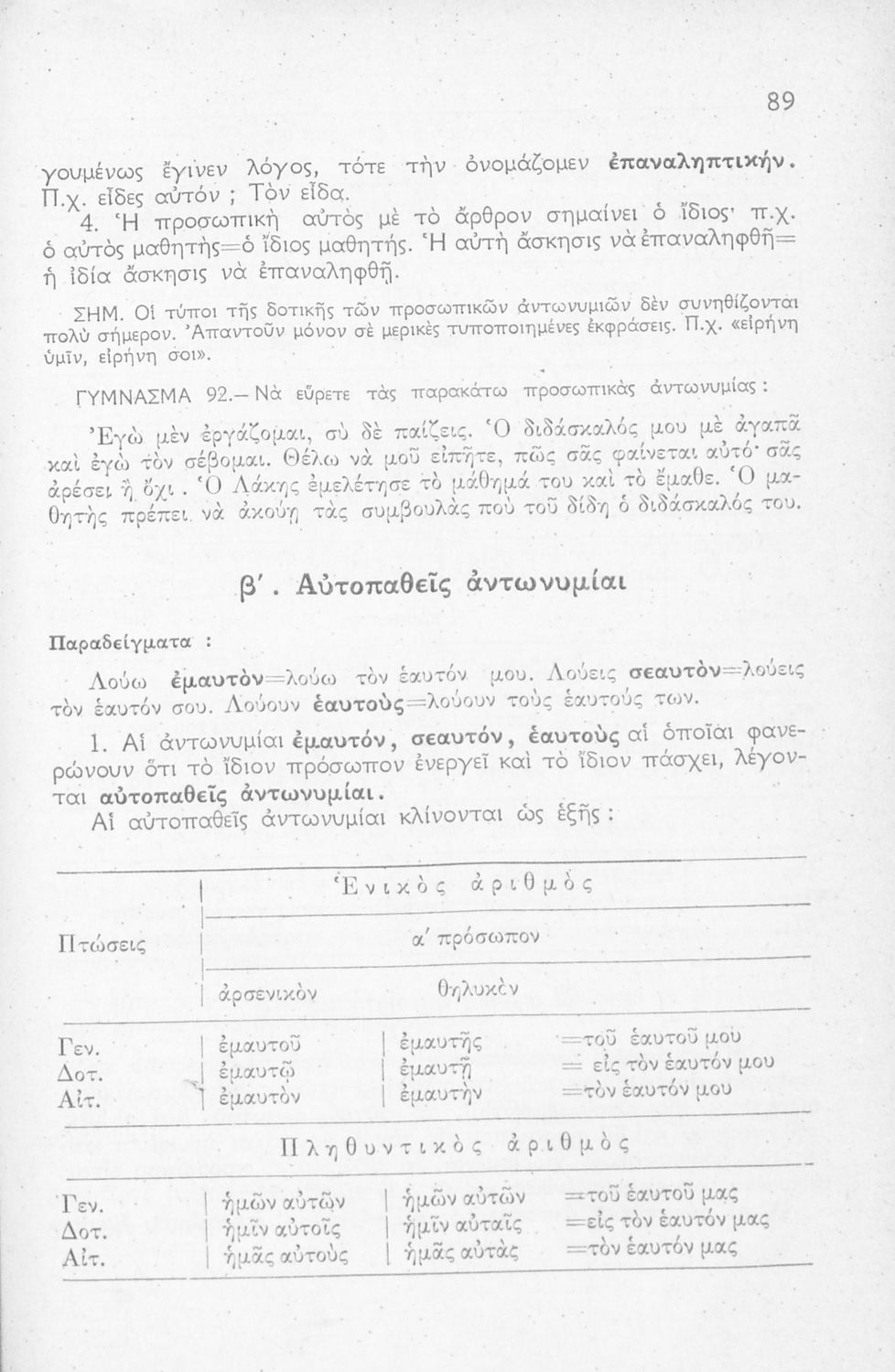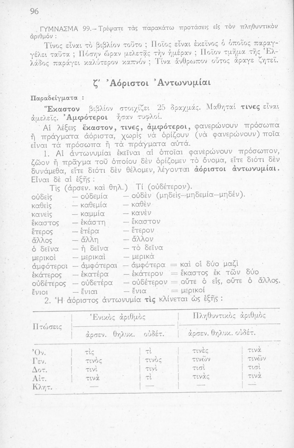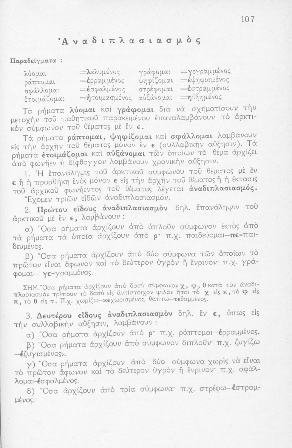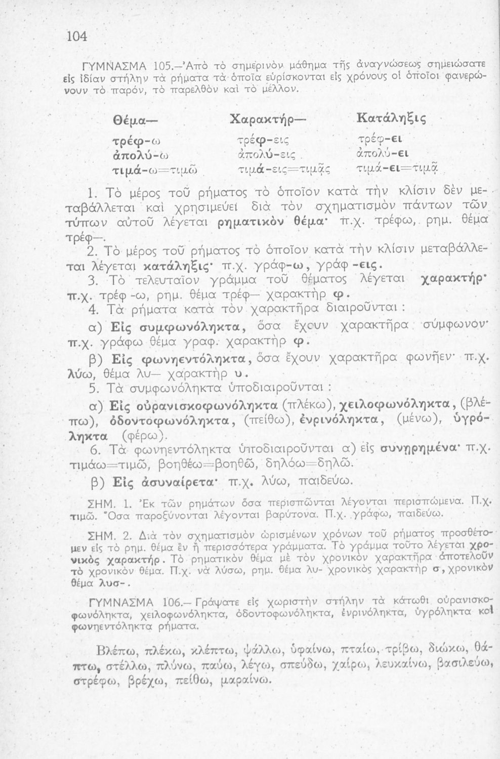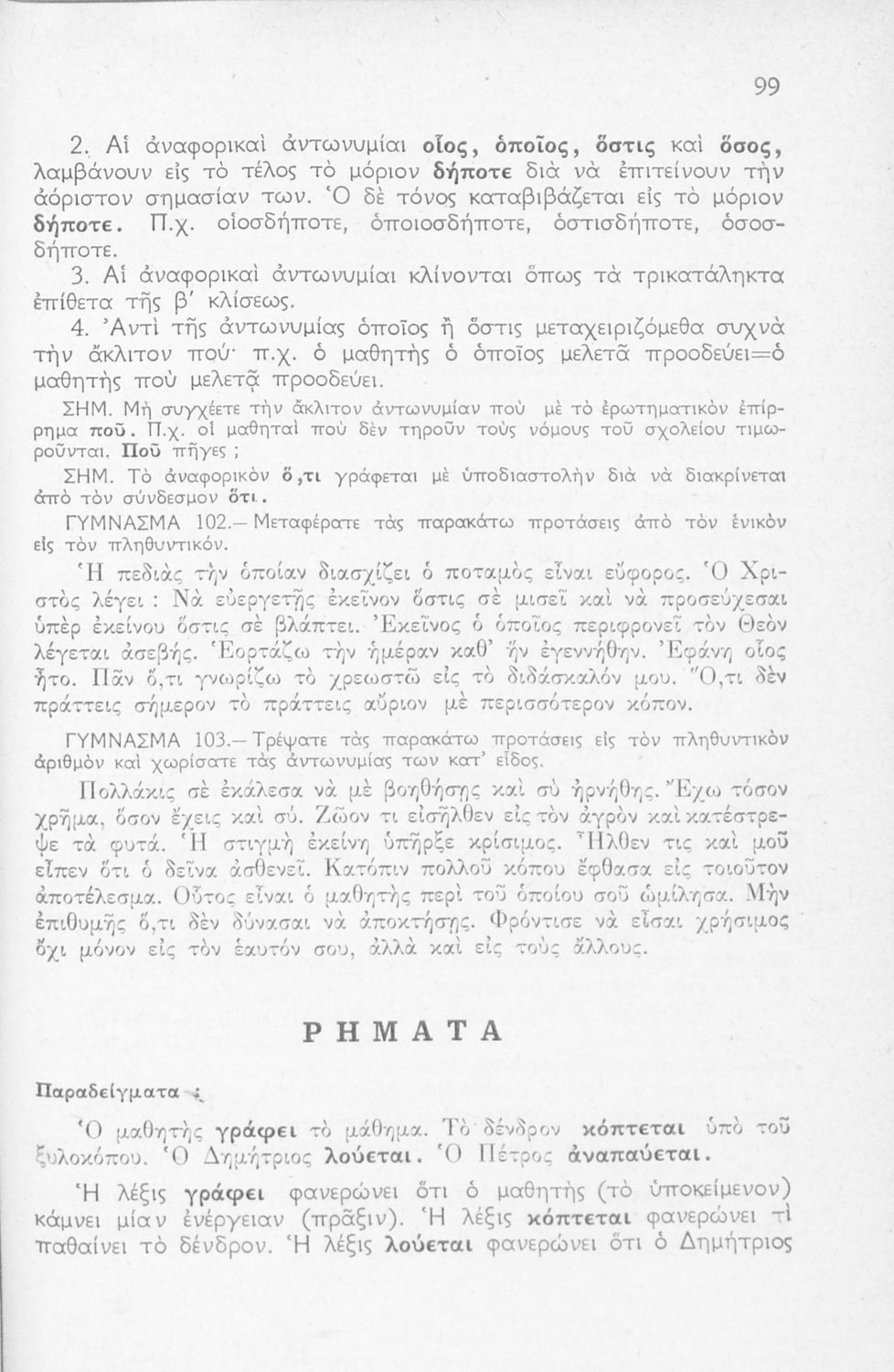 Μαθητικό βοήθημα Γραμματικής για τους μαθητές της Ε΄ και ΣΤ΄ τάξης του Δημοτικού. Περιέχει τη διδασκαλία της γραμματικής της καθαρεύουσας.