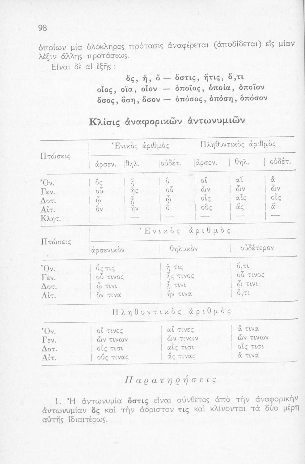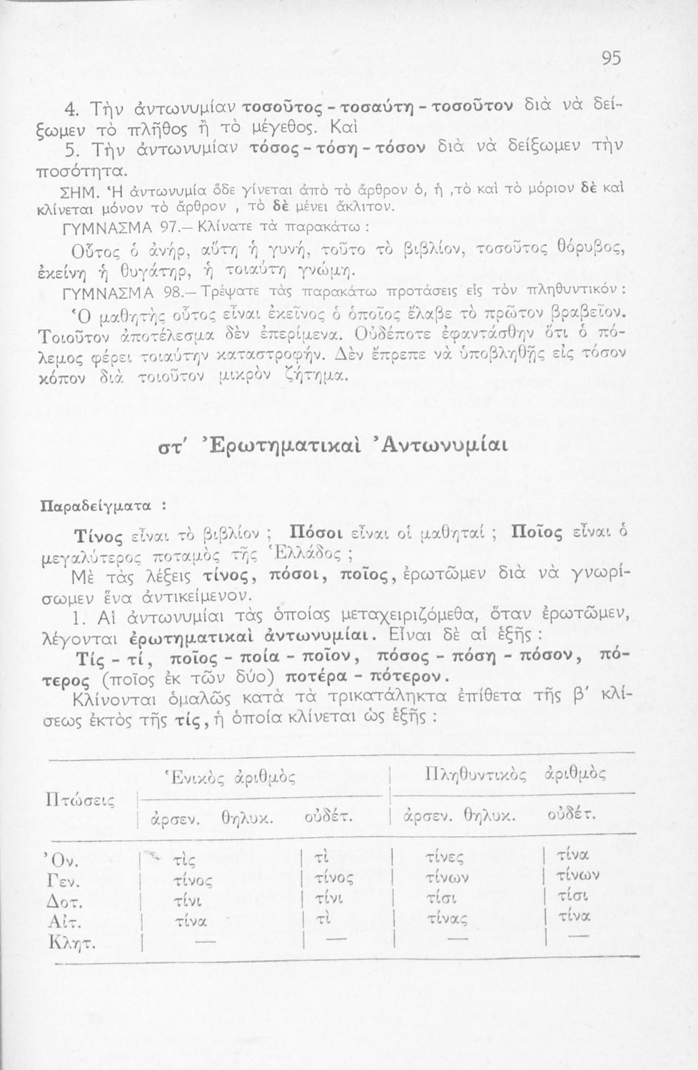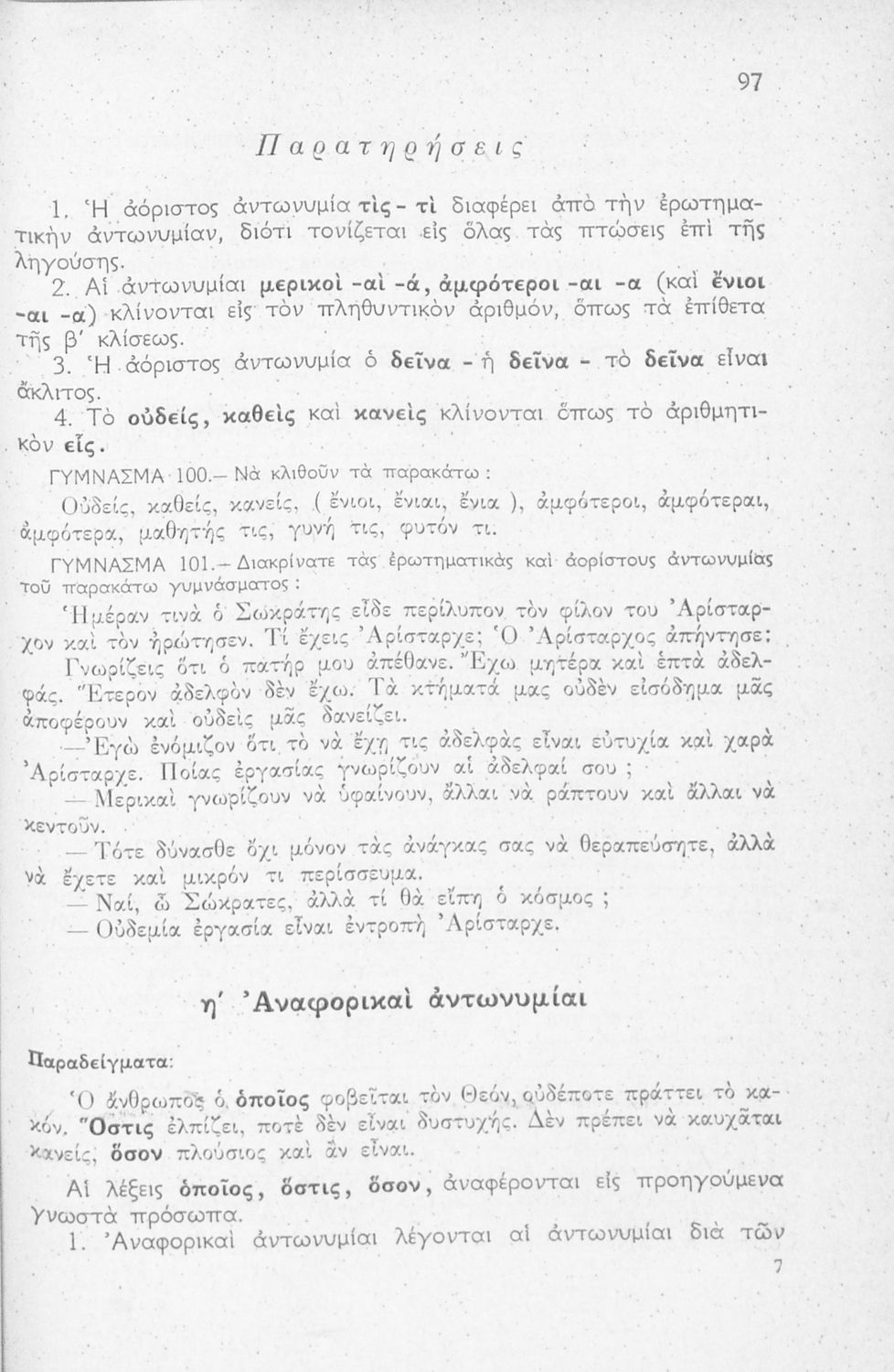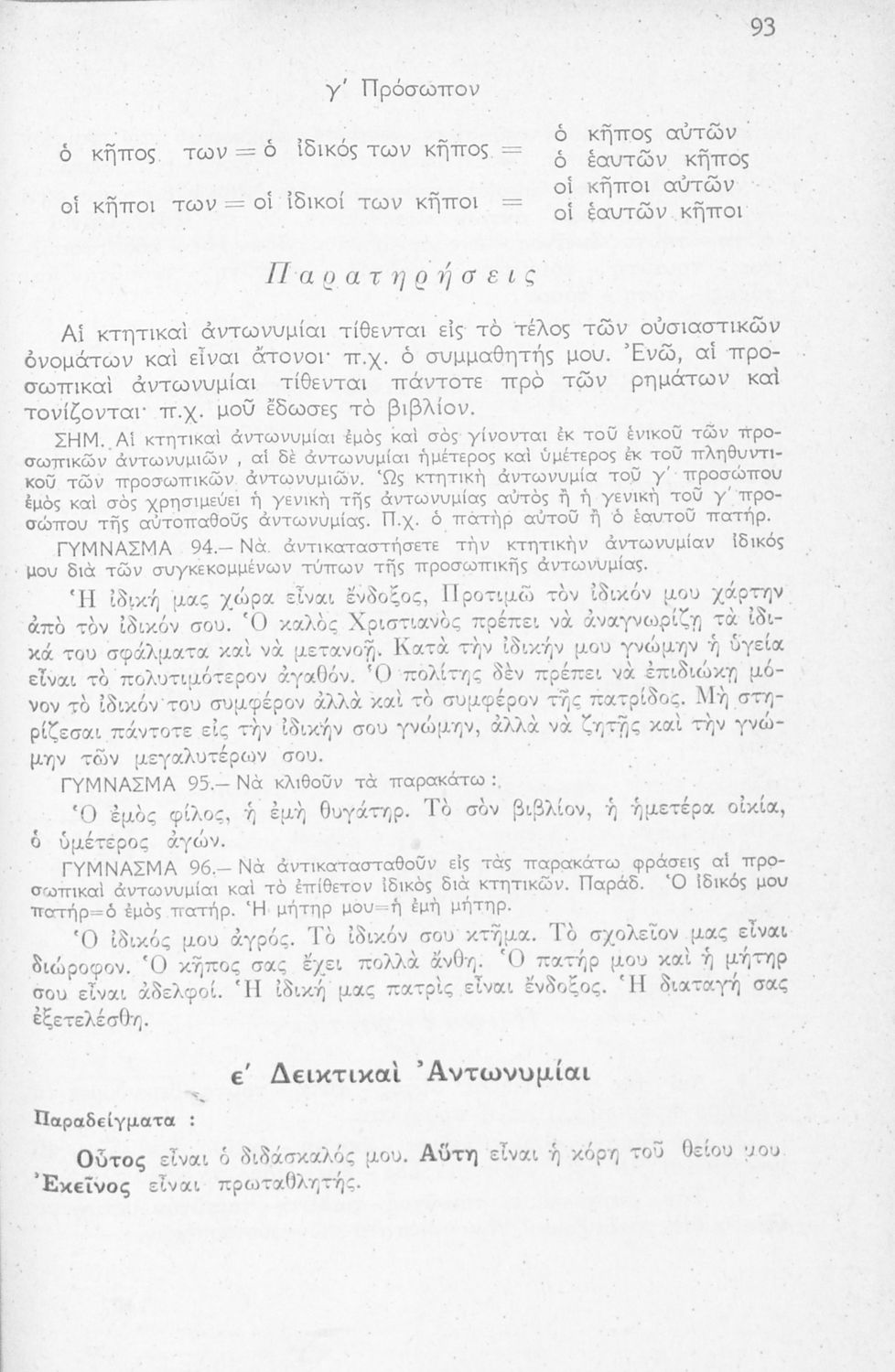 Μαθητικό βοήθημα Γραμματικής για τους μαθητές της Ε΄ και ΣΤ΄ τάξης του Δημοτικού. Περιέχει τη διδασκαλία της γραμματικής της καθαρεύουσας.