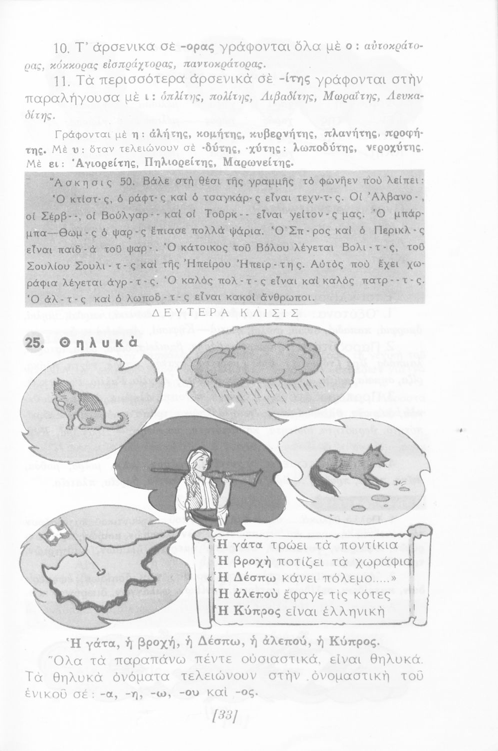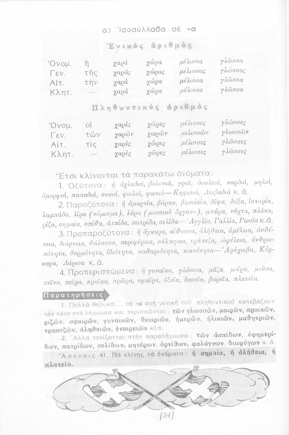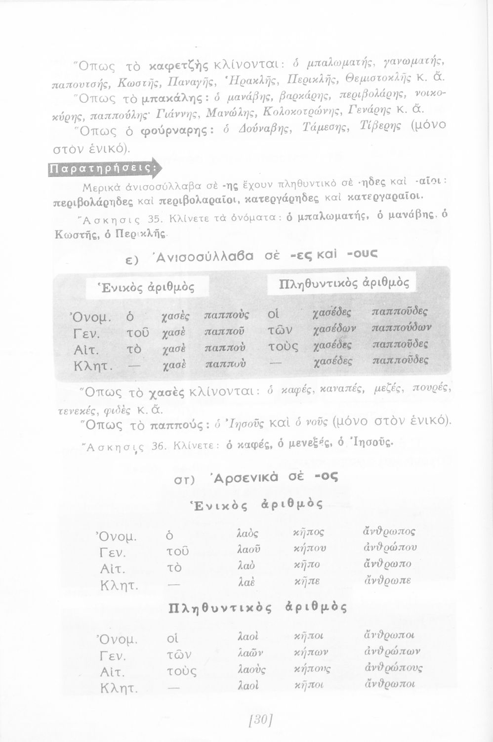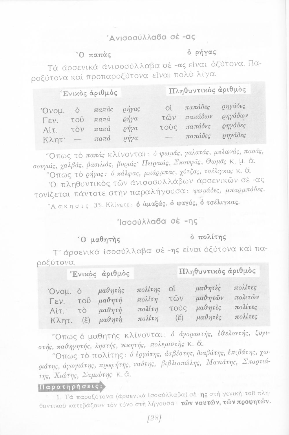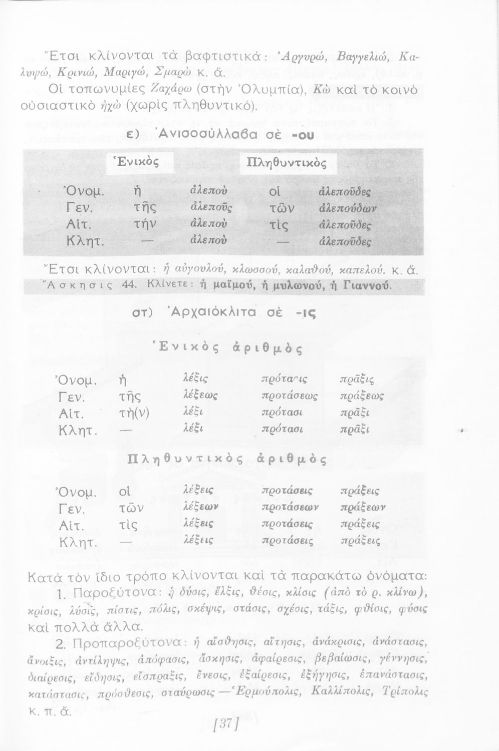 Παρουσίαση περιεχομένου: Μαθητικό βοήθημα Δημοτικού που περιλαμβάνει τη γραμματική και το συντακτικό της καθαρεύουσας και πίνακες παραδειγμάτων.