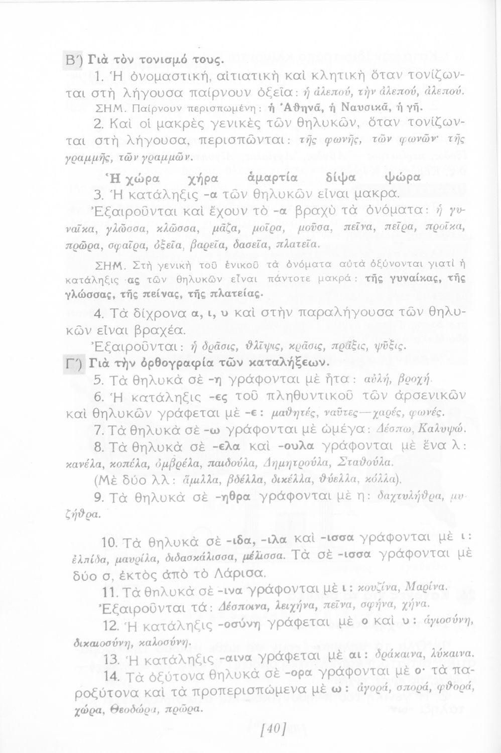 Σχολικό εγχειρίδιο με κανόνες Γραμματικής της Νεοελληνικής Γλώσσας. Το συγκεκριμένο τεύχος περιέχει ορθογραφικό οδηγό και κατάλογο ανώμαλων ρημάτων.