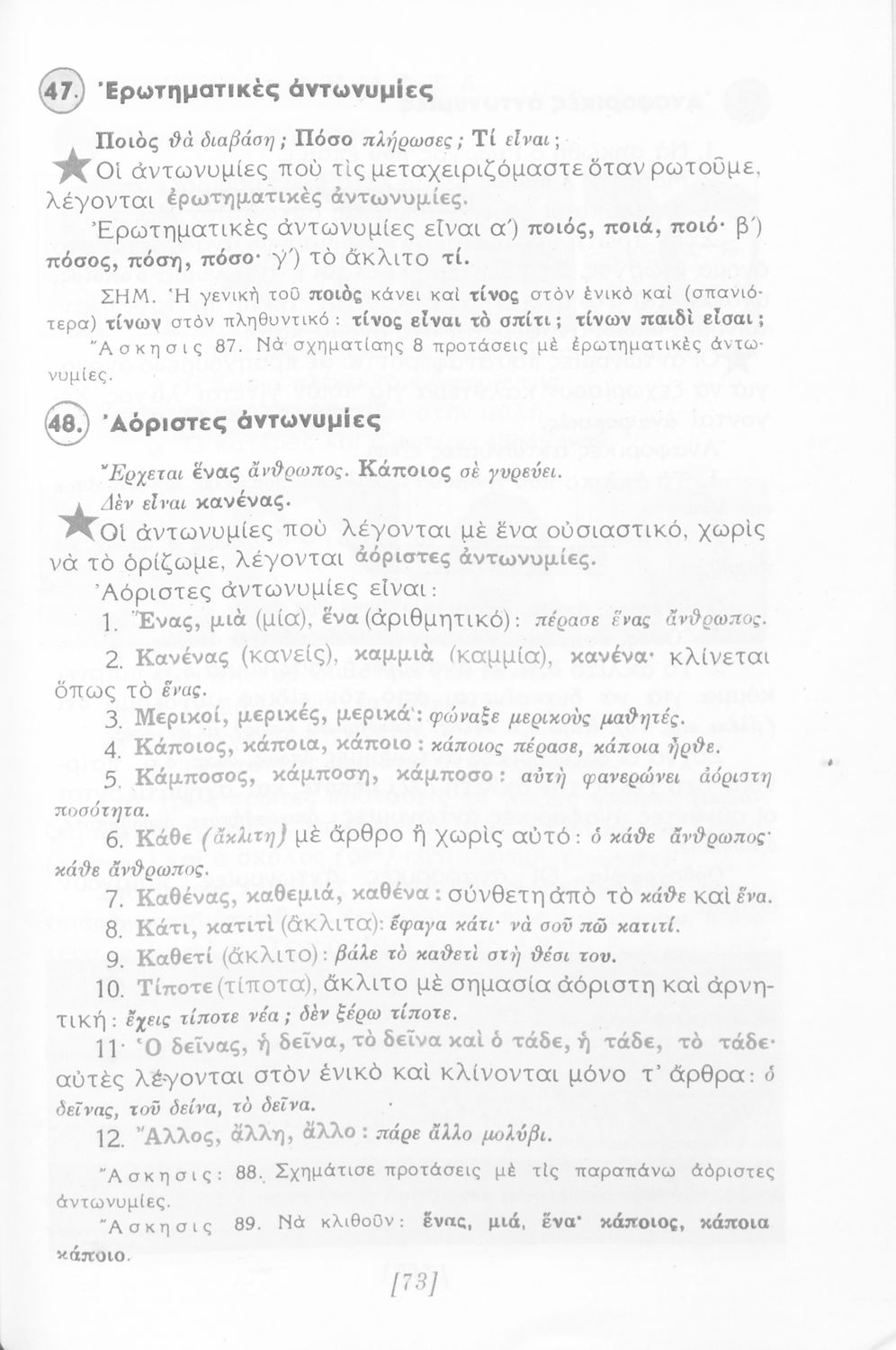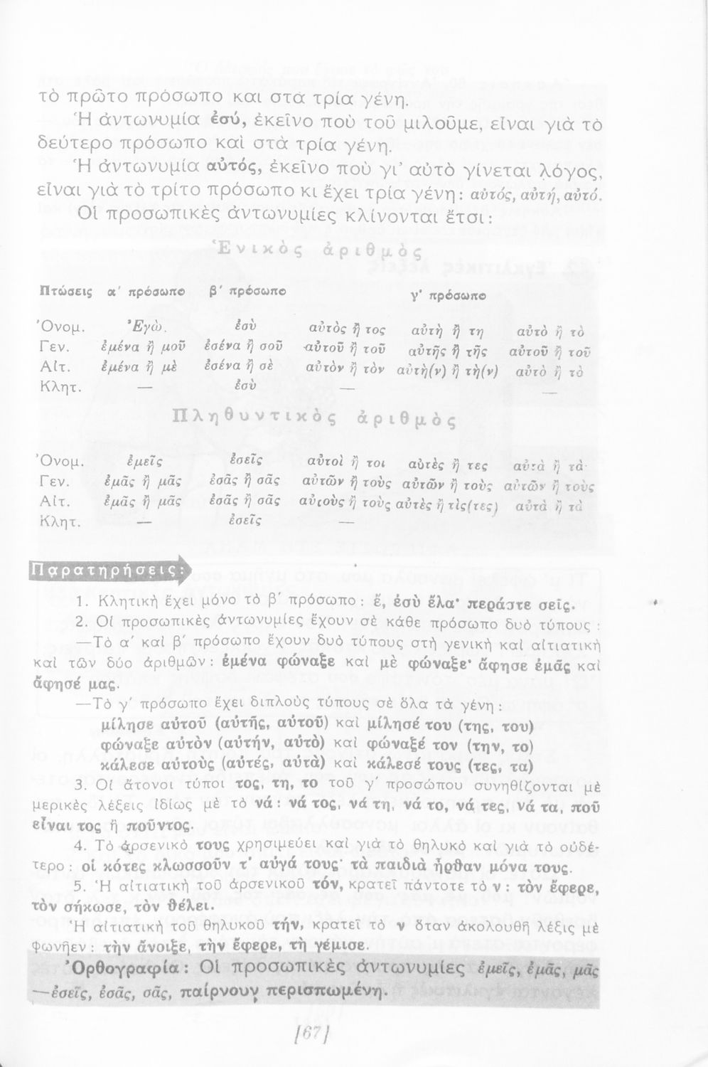Παρουσίαση περιεχομένου: Μαθητικό βοήθημα Δημοτικού που περιλαμβάνει τη γραμματική και το συντακτικό της καθαρεύουσας και πίνακες παραδειγμάτων.
