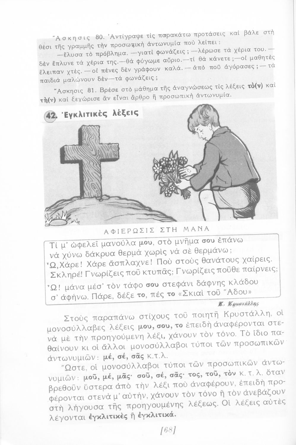 Σχολικό εγχειρίδιο Γλώσσας για τις Ε΄ και ΣΤ΄ Δημοτικού που περιλαμβάνει με κείμενα και ασκήσεις για τη διδασκαλία των γραμματικών φαινομένων.