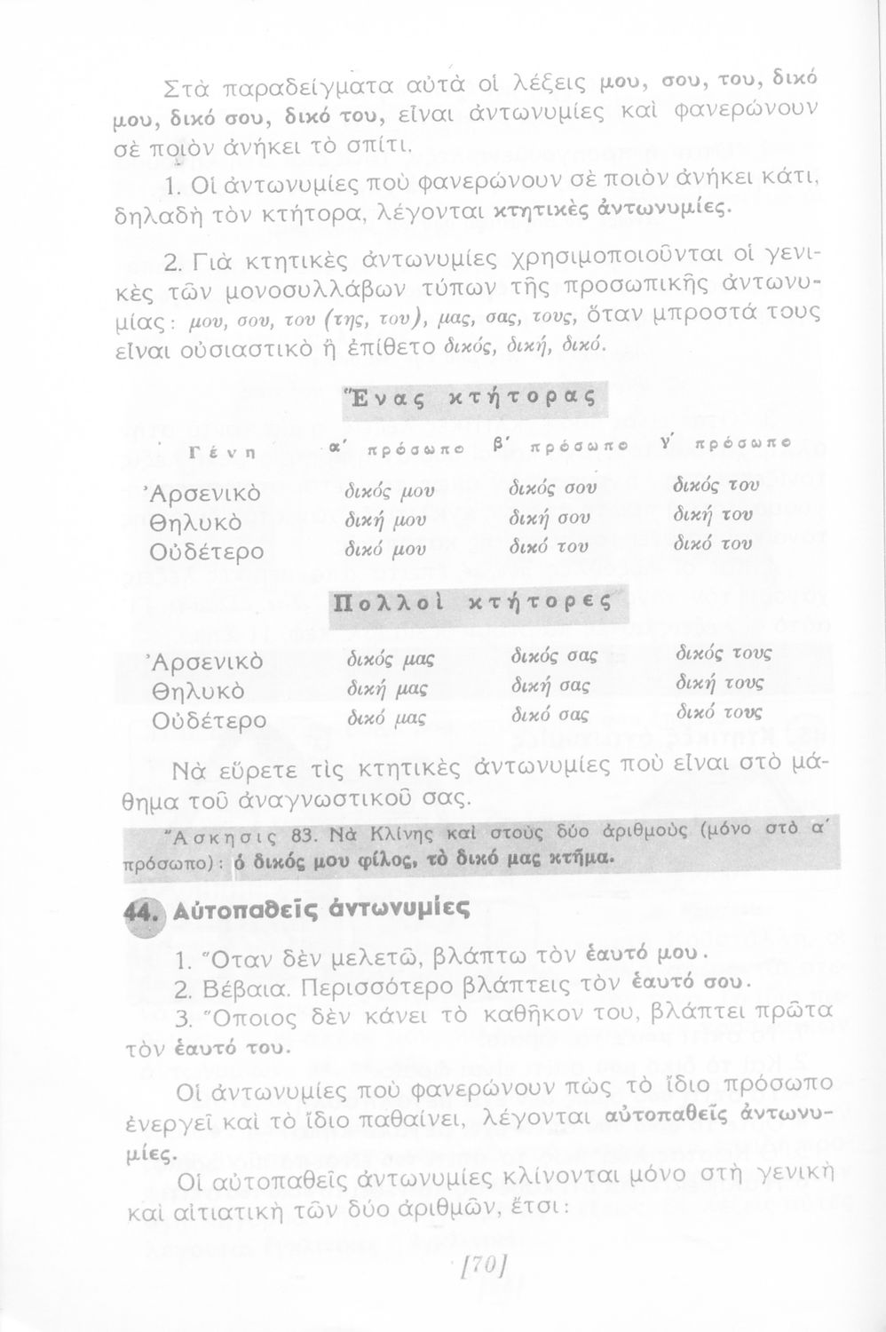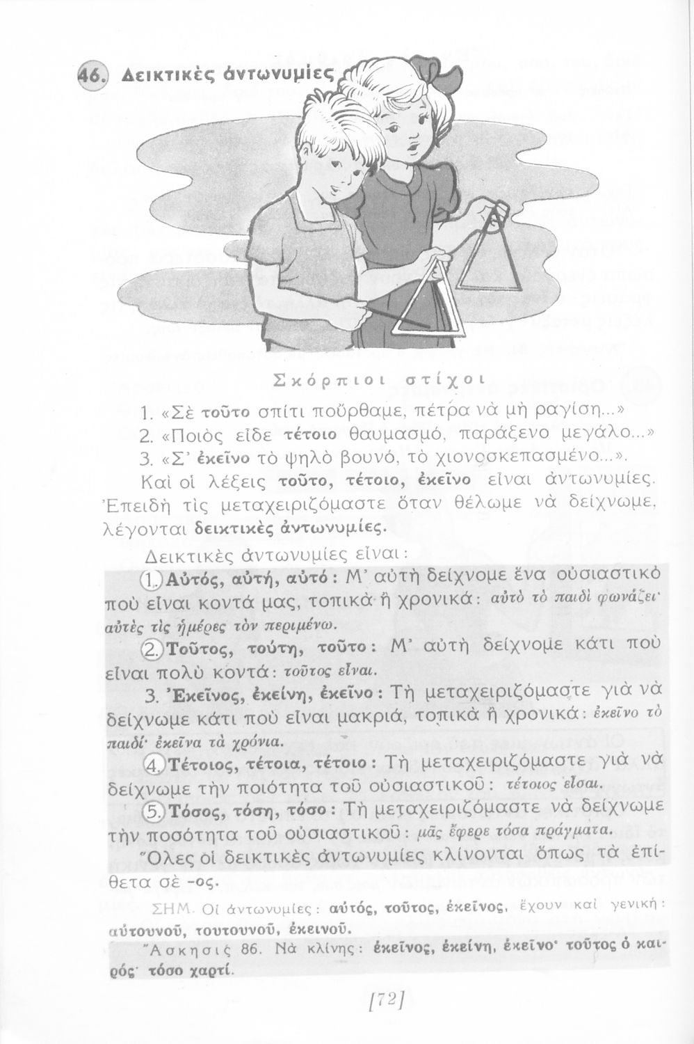 Γραμματικής Νέων Ελληνικών για τις τάξεις του Δημοτικού. Στο βιβλίο παρουσιάζονται οι βασικοί κανόνες γραμματικής και συντακτικού της ελληνικής γλώσσας.