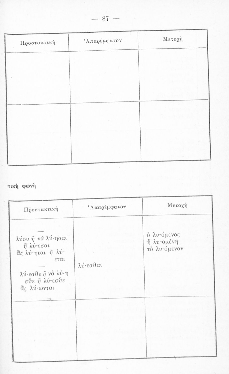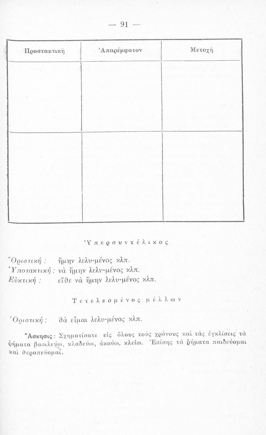 Μαθητικό βοήθημα Ε΄ και ΣΤ΄ Δημοτικού που περιέχει τη γραμματικής της απλής Καθαρεύουσας.