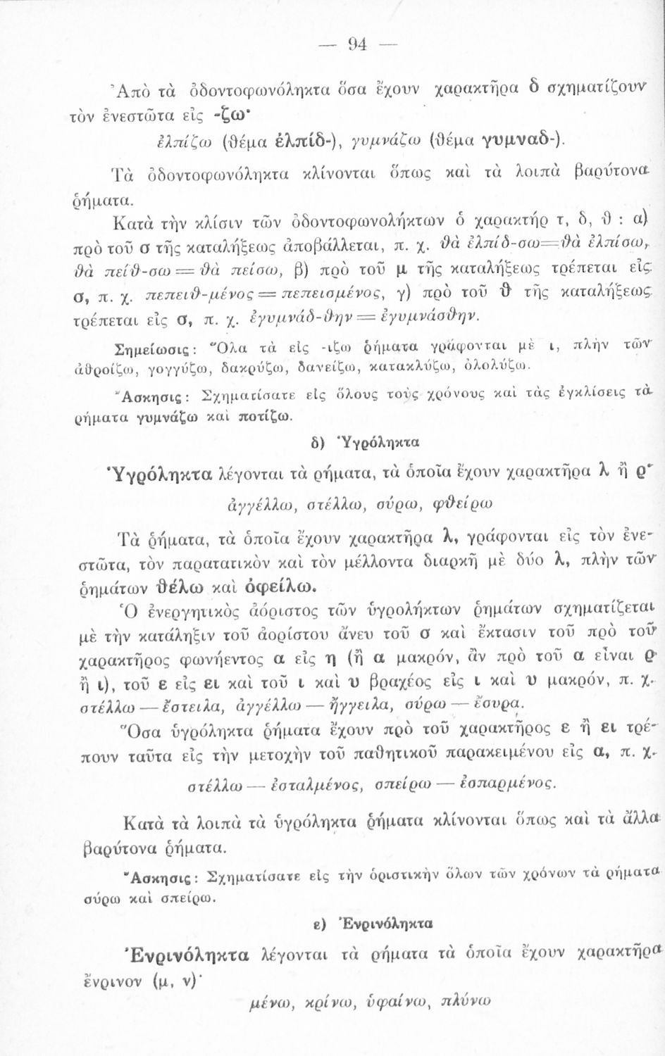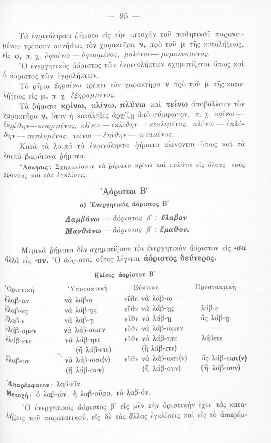 Μαθητικό βοήθημα Γραμματικής για τους μαθητές της Ε΄ και ΣΤ΄ τάξης του Δημοτικού. Περιέχει τη διδασκαλία της γραμματικής της καθαρεύουσας.