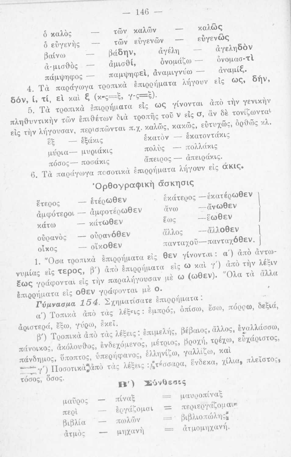 Μαθητικό βοήθημα Γραμματικής Ε΄ και ΣΤ΄ Δημοτικού που περιέχει θεωρία και ασκήσεις της γραμματικής για την εκμάθηση της καθαρεύουσας.