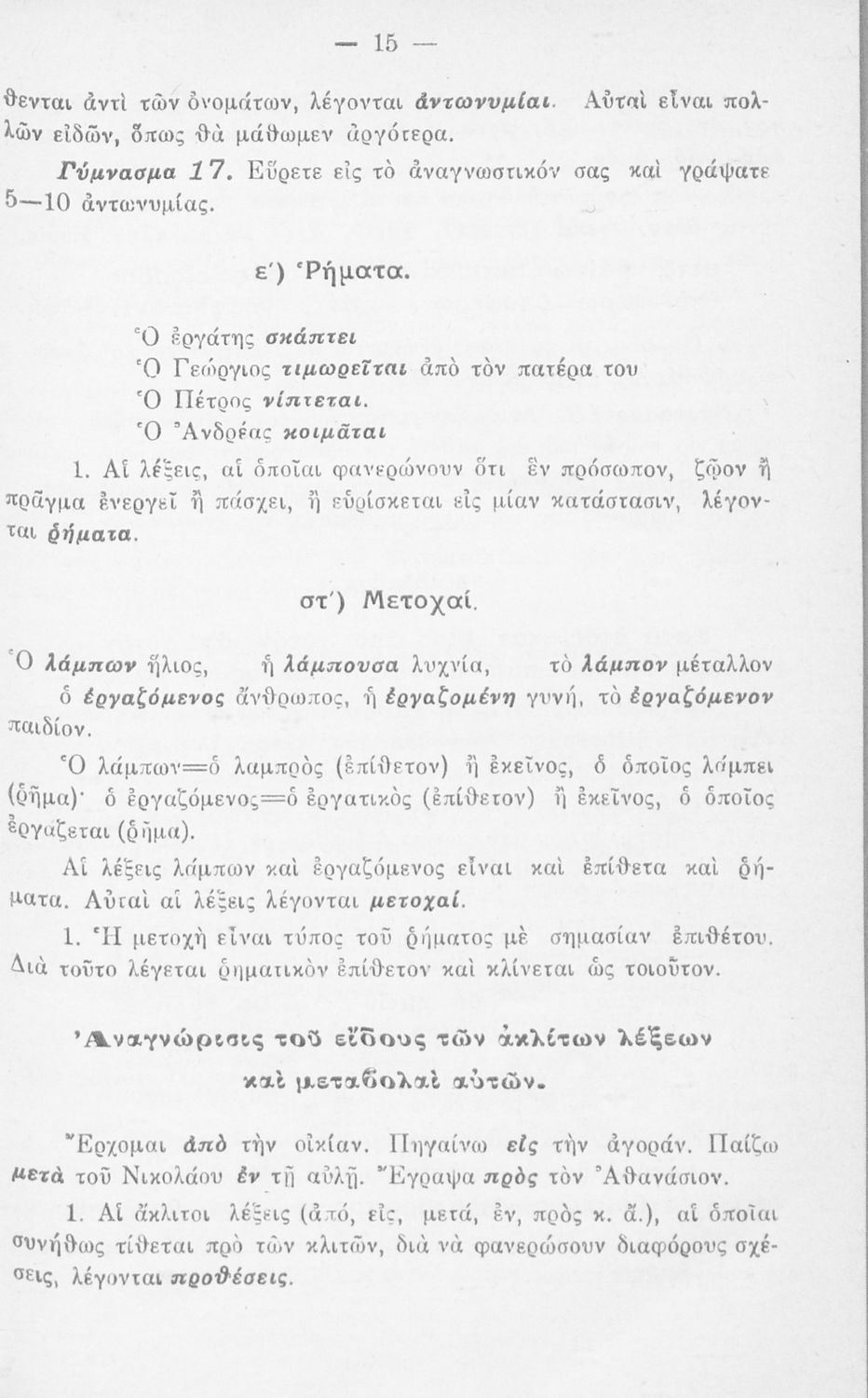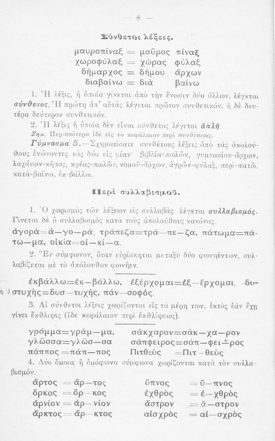 Μαθητικό βοήθημα Ε' και ΣΤ΄ Δημοτικού που περιλαμβάνει τους κανόνες γραμματικής και συντακτικού της καθαρεύουσας.