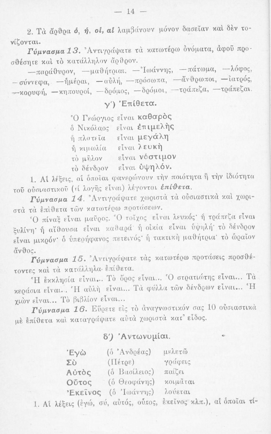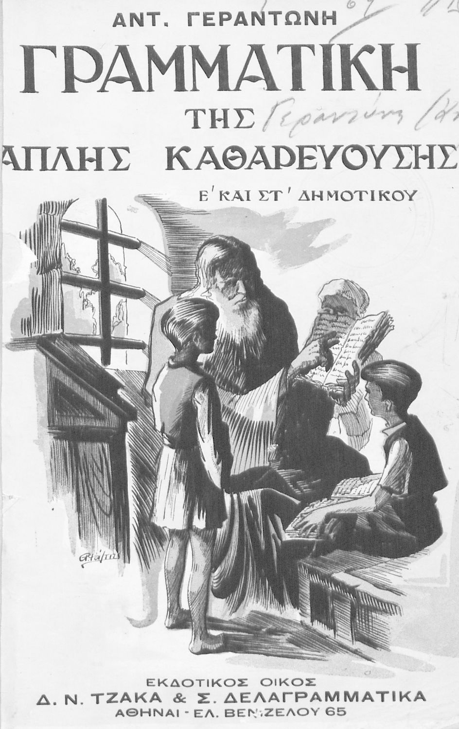 Κωδικός αναγνώρισης: 03-20560745 Τίτλος: Γραμματική της απλής καθαρευούσης προς χρήσιν των μαθητών της Ε΄ και ΣΤ΄ Τάξεως των Δημ. Σχολείων Συγγραφέας: Αντ. Γ. Γεραντώνης Μέγεθος και υπόστρωμα: Μαθητικό βοήθημα, σκληρό εξώφυλλο, 164 σελίδες. |