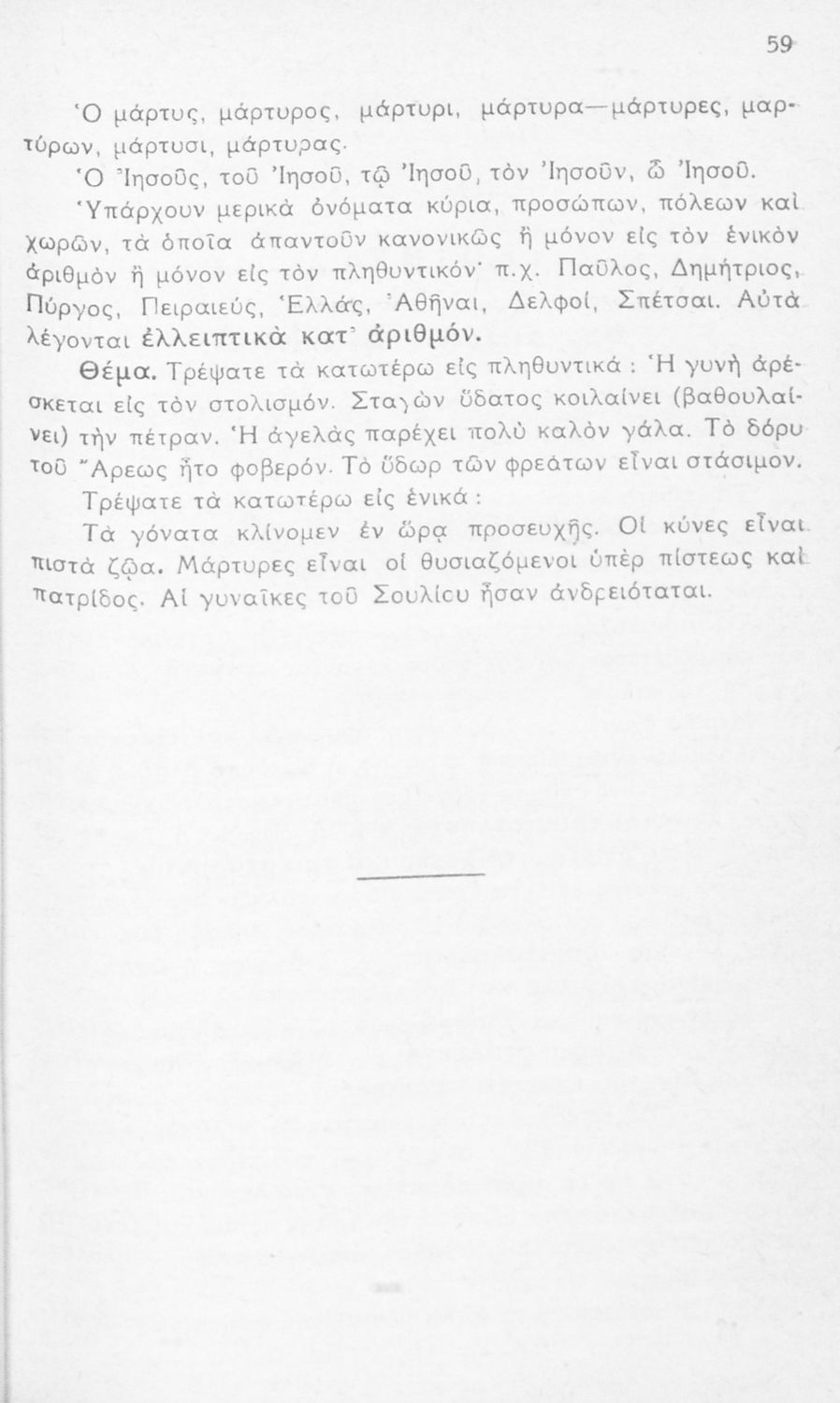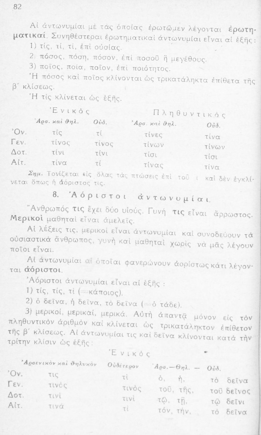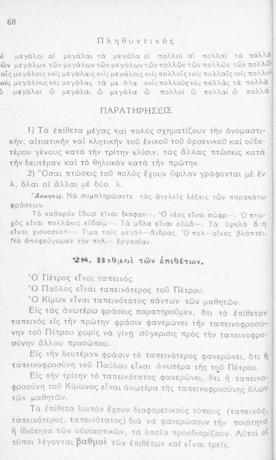 Σχολικό εγχειρίδιο γραμματικής για τους μαθητές της Ε΄ και ΣΤ΄ τάξης του Δημοτικού. Περιέχει τη διδασκαλία της γραμματικής της καθαρεύουσας με κανόνες και παραδείγματα.