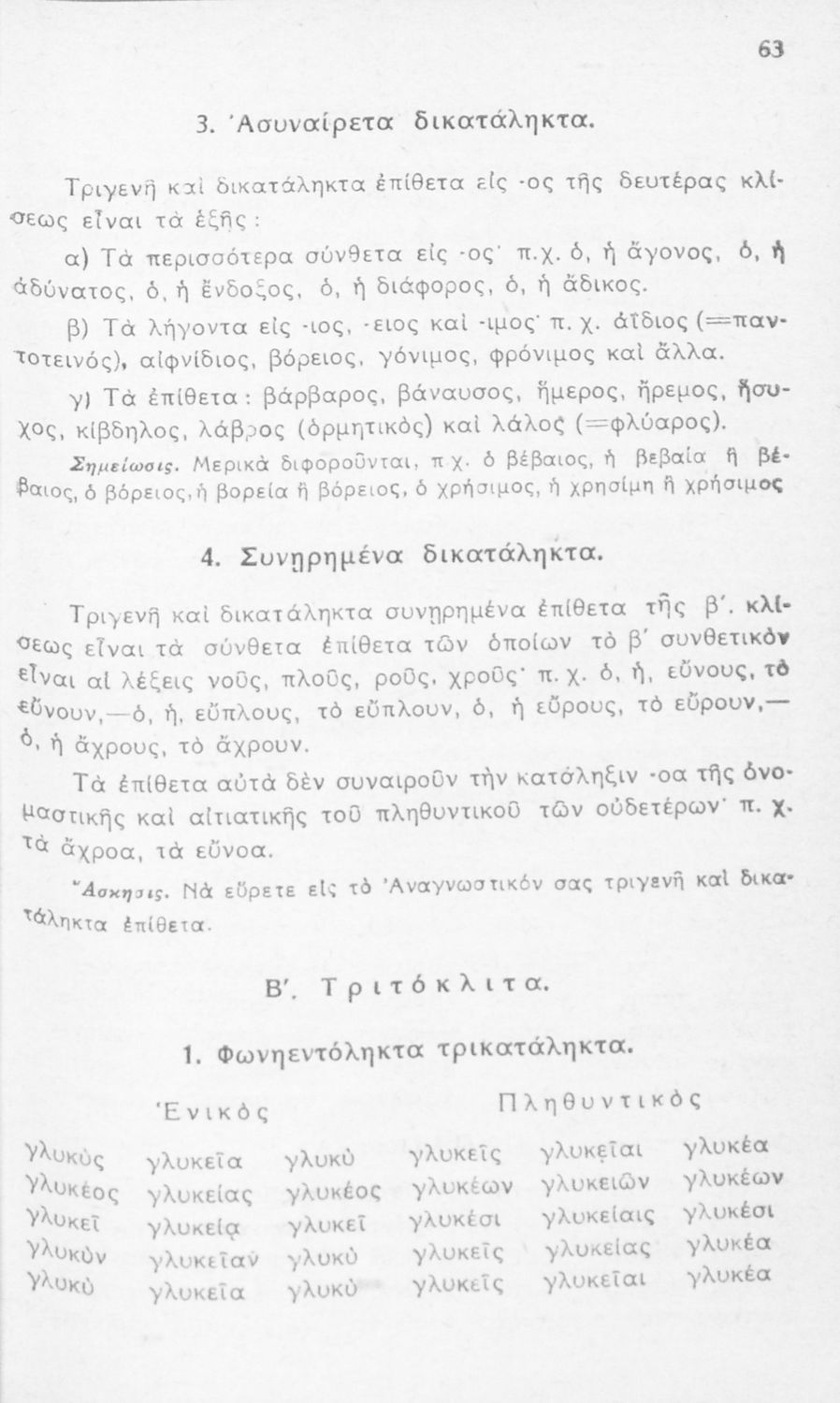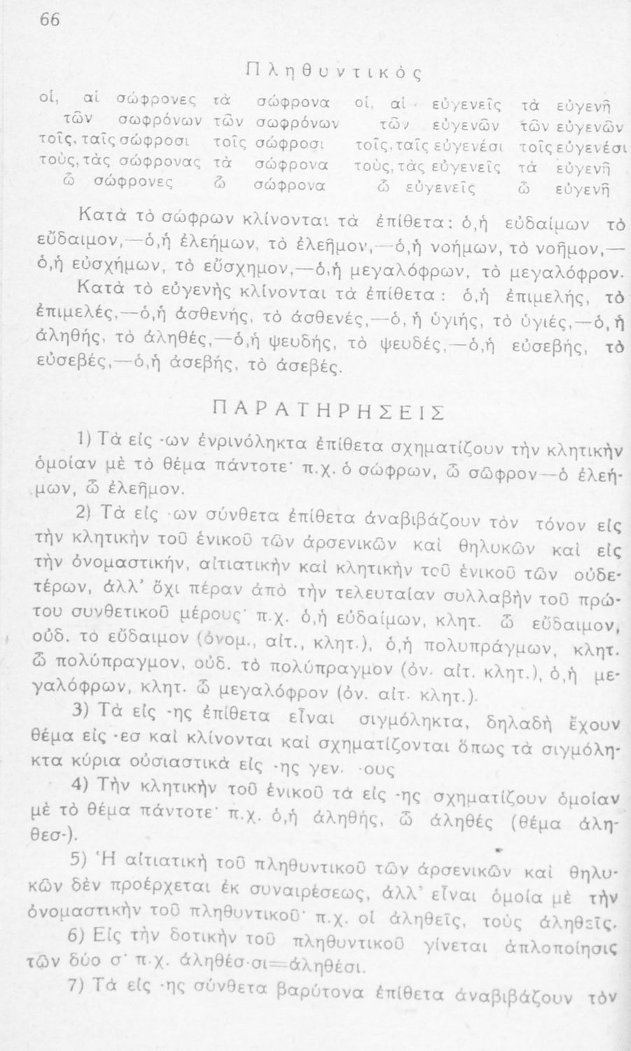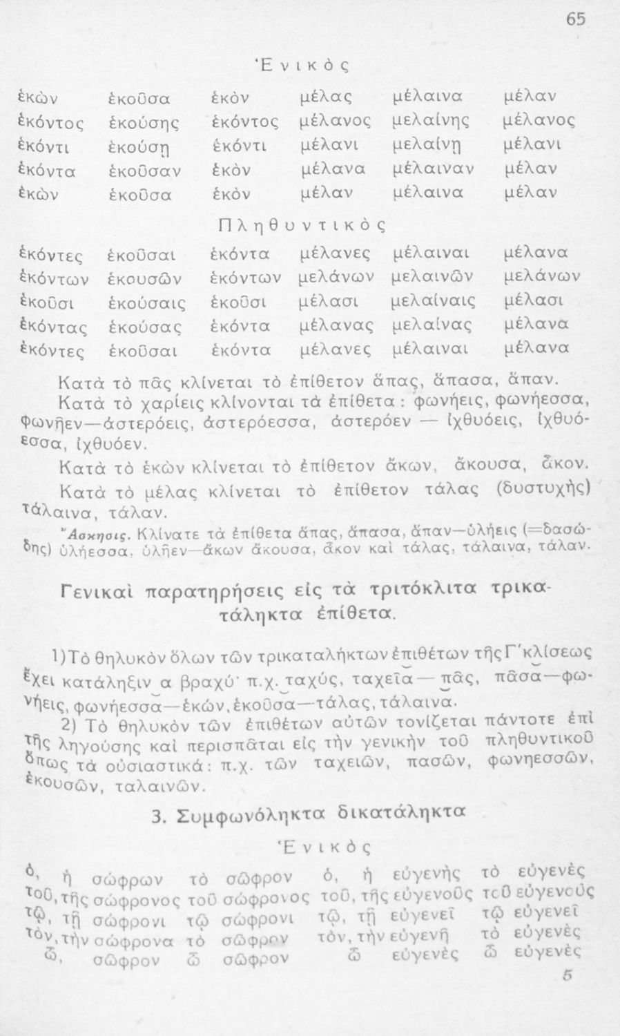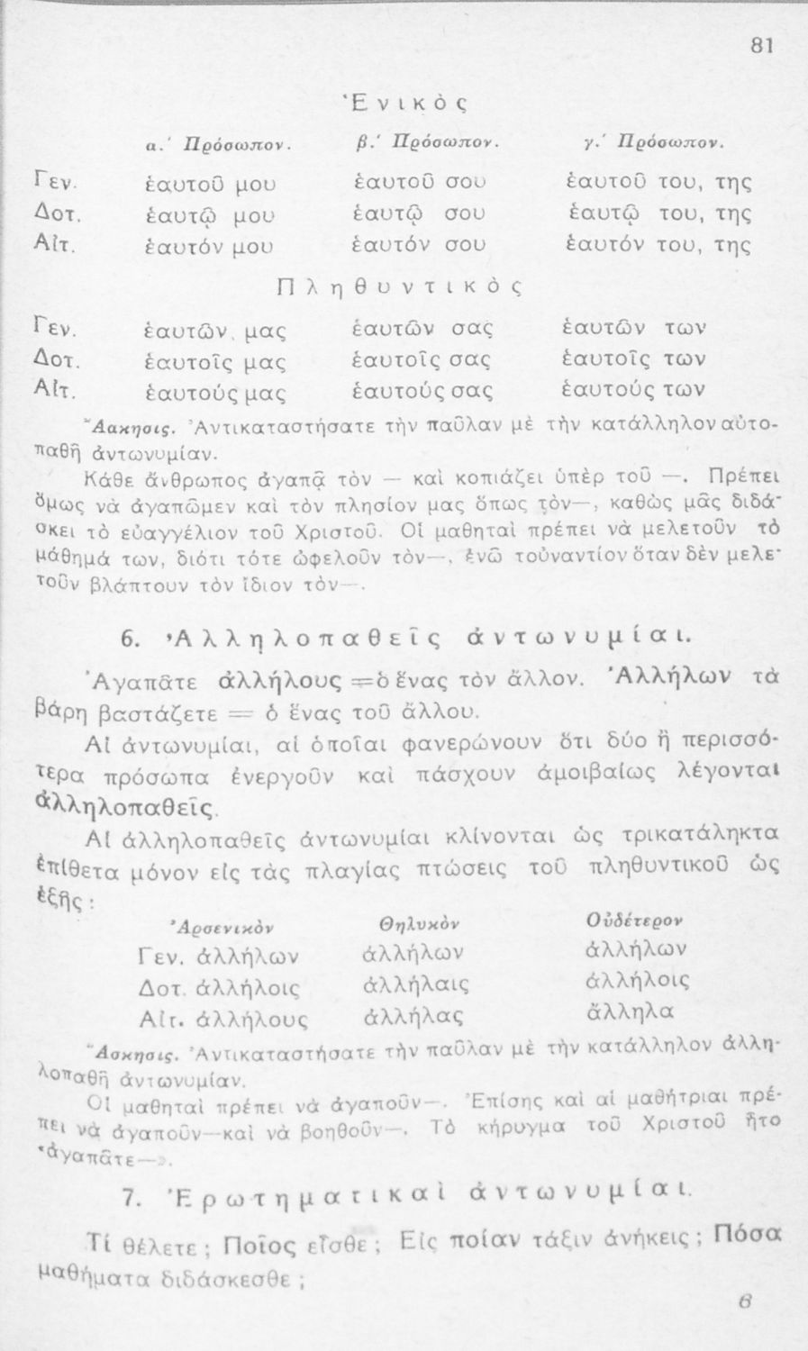 Σχολικό εγχειρίδιο γραμματικής για τους μαθητές της Ε΄ και ΣΤ΄ τάξης του Δημοτικού. Περιέχει τη διδασκαλία της γραμματικής της καθαρεύουσας με κανόνες και παραδείγματα.