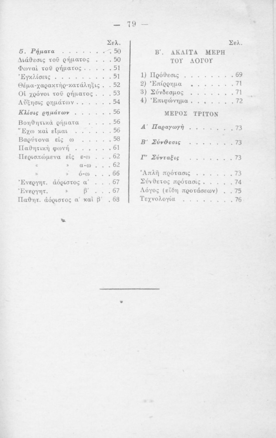 Σχολικό εγχειρίδιο Γραμματικής για τους μαθητές του Δημοτικού. Περιέχει την διδασκαλία της Γραμματικής της Καθαρεύουσας για τα Δημοτικά σχολεία.