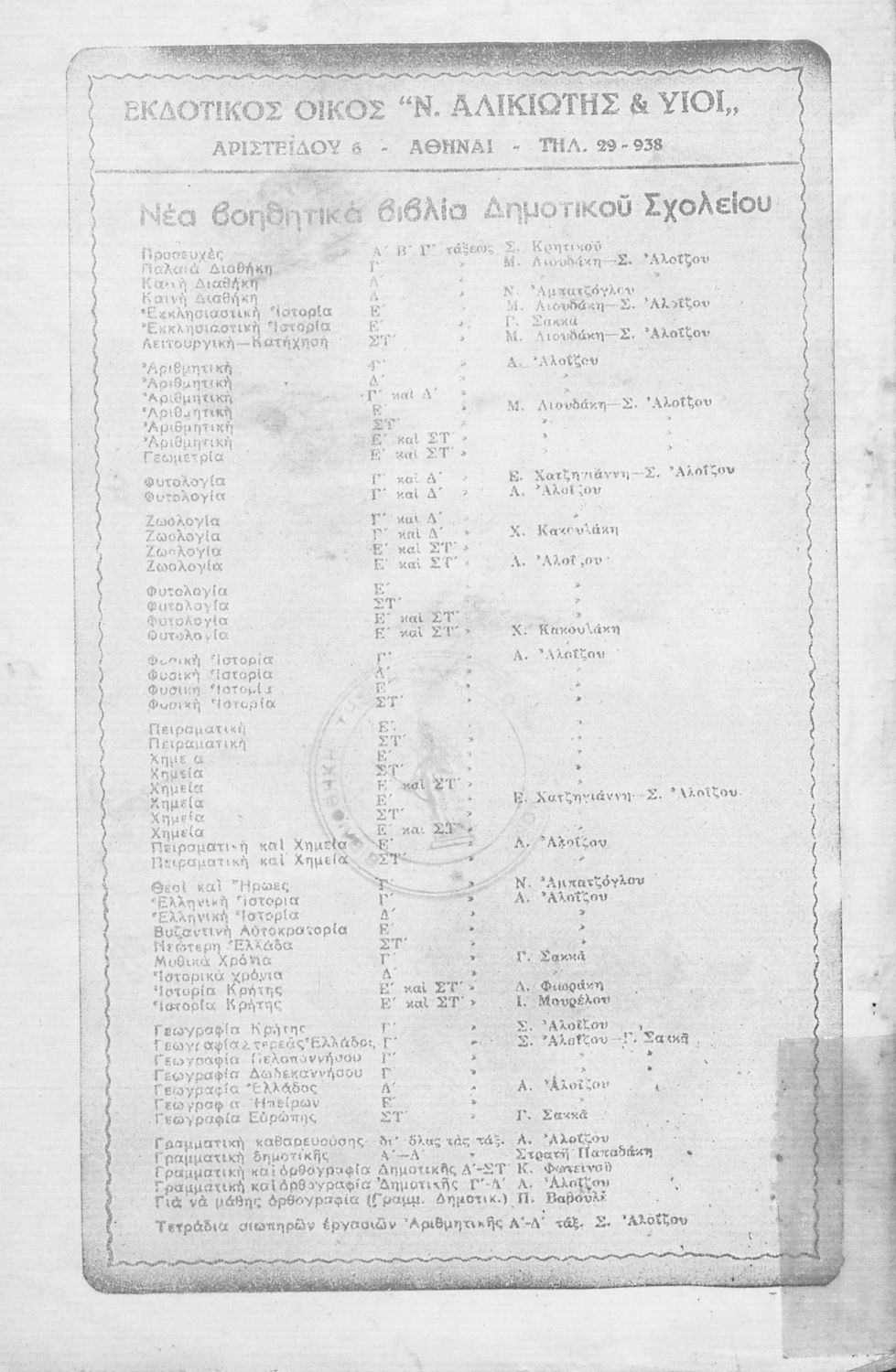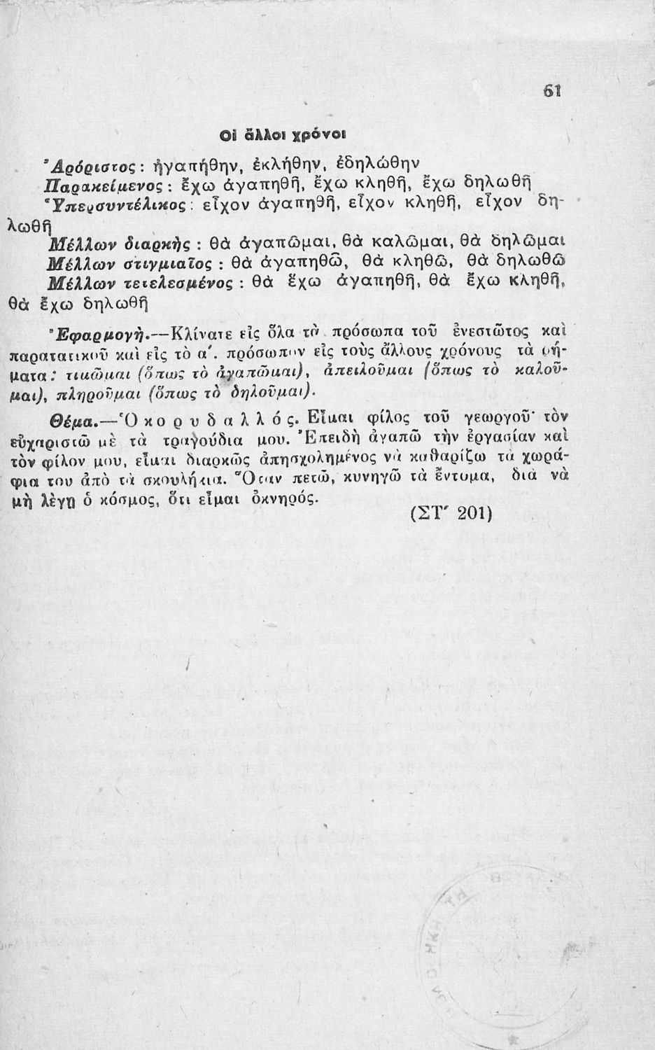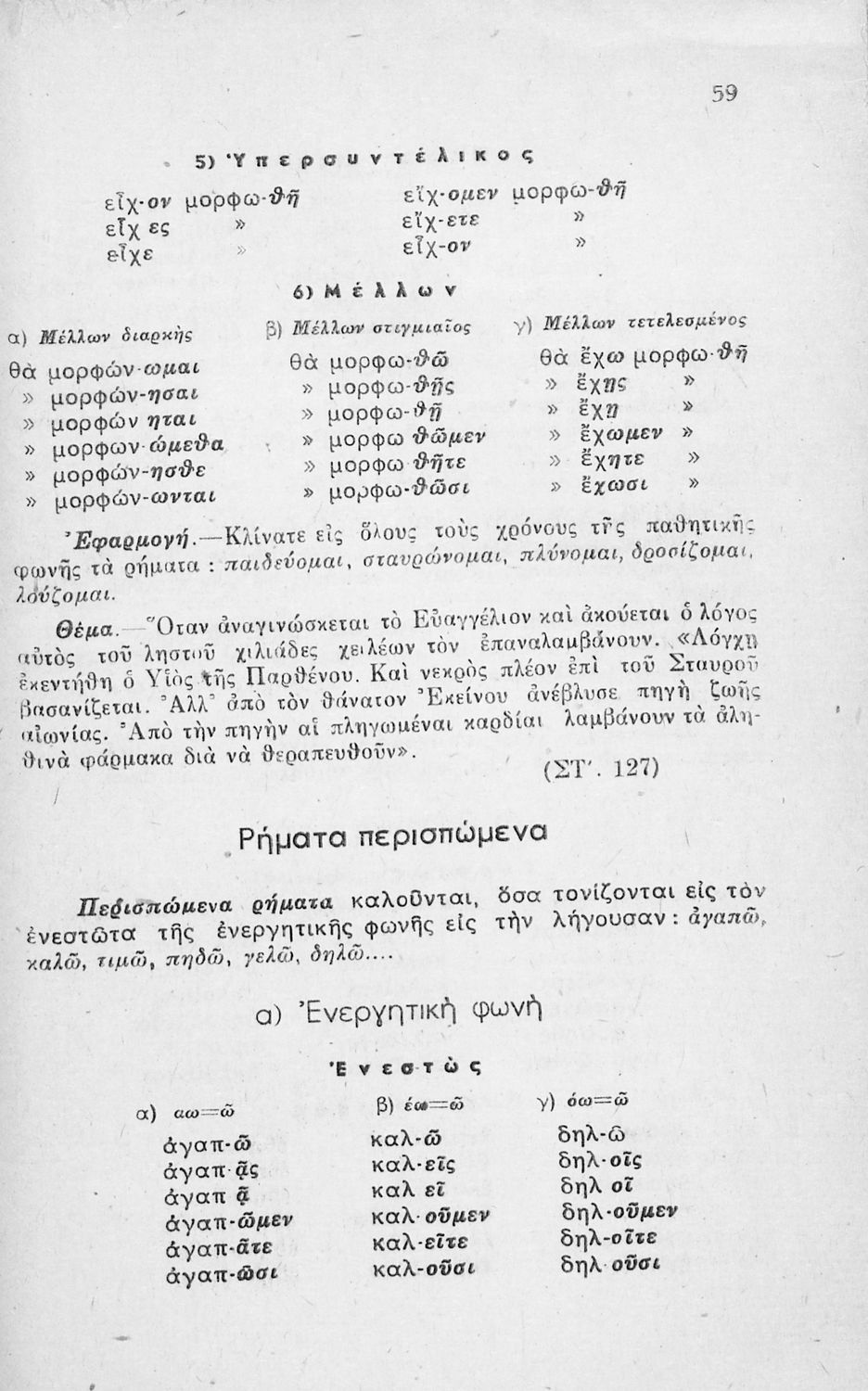 Μαθητικό βοήθημα Ε΄ και ΣΤ΄ Δημοτικού που περιέχει τη γραμματικής της απλής Καθαρεύουσας.
