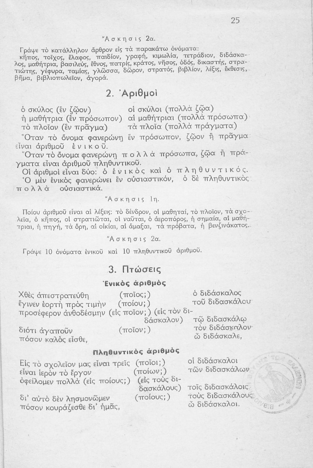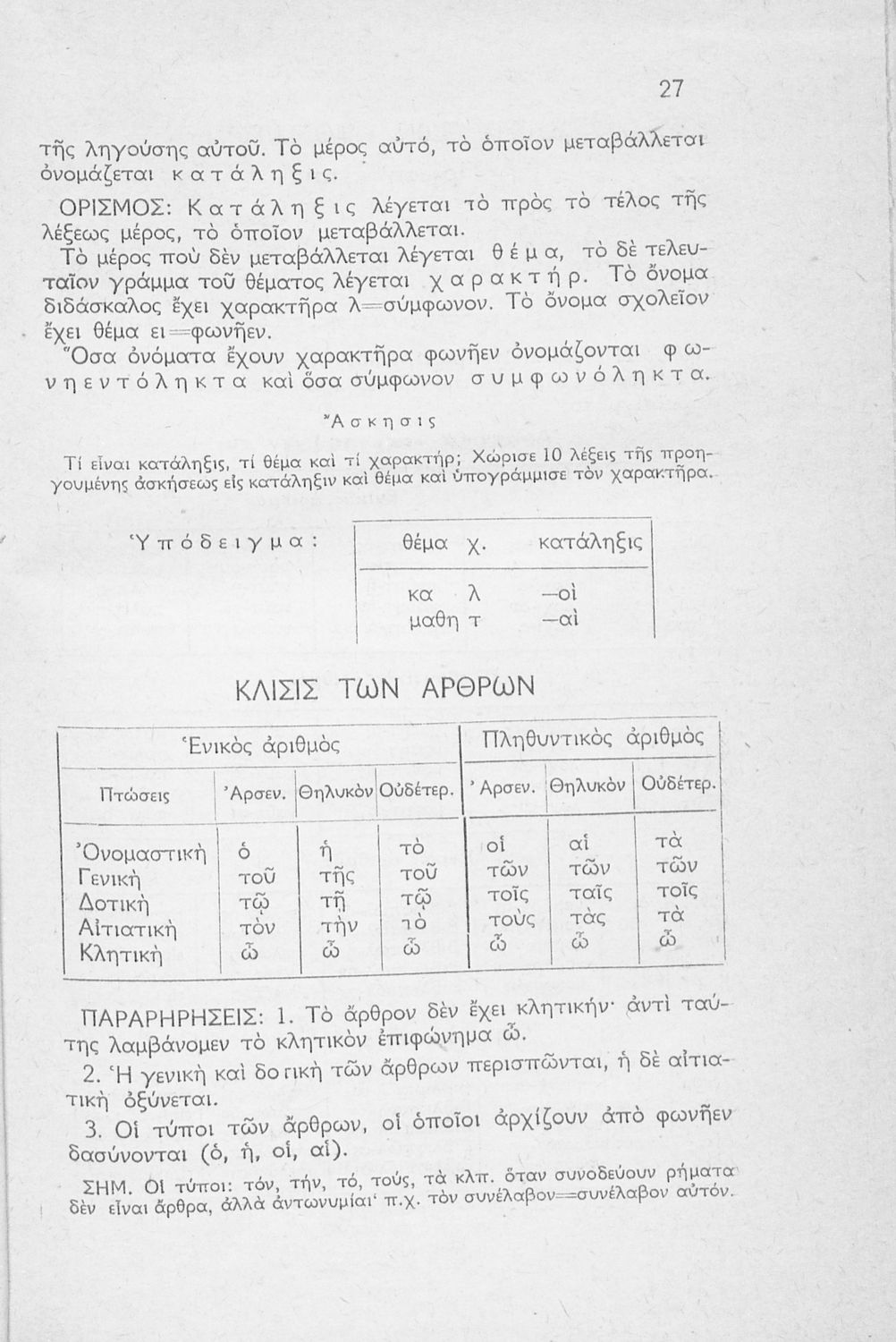 Μαθητικό βοήθημα Δημοτικού που περιέχει θεωρία και ασκήσεις της γραμματικής για την εκμάθηση της καθαρεύουσας.