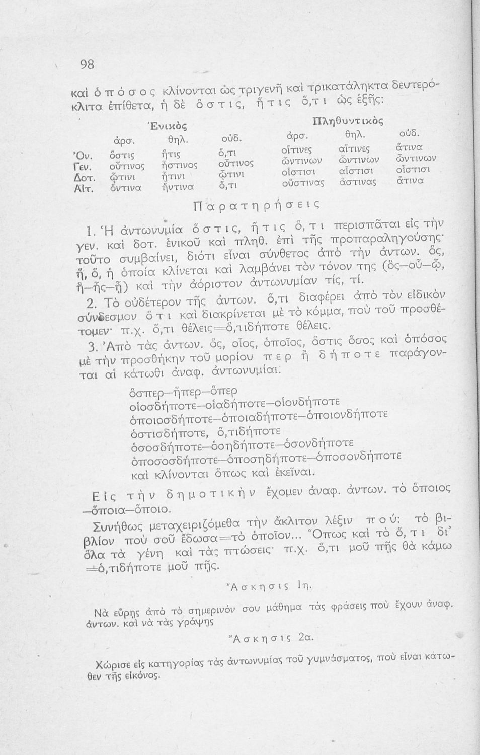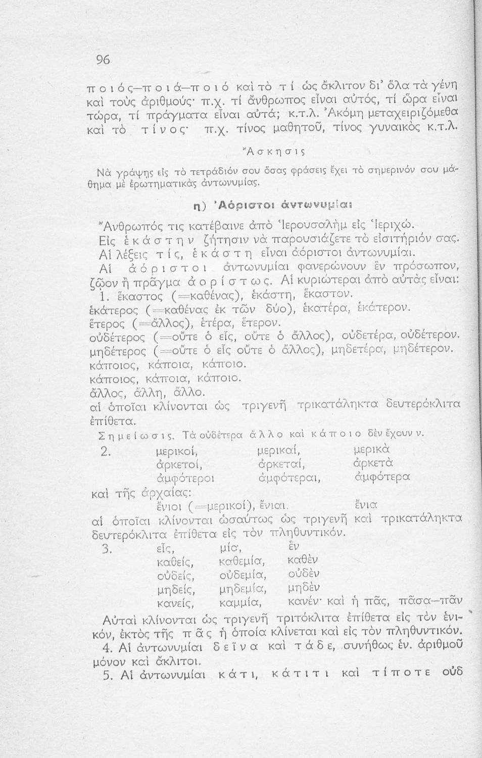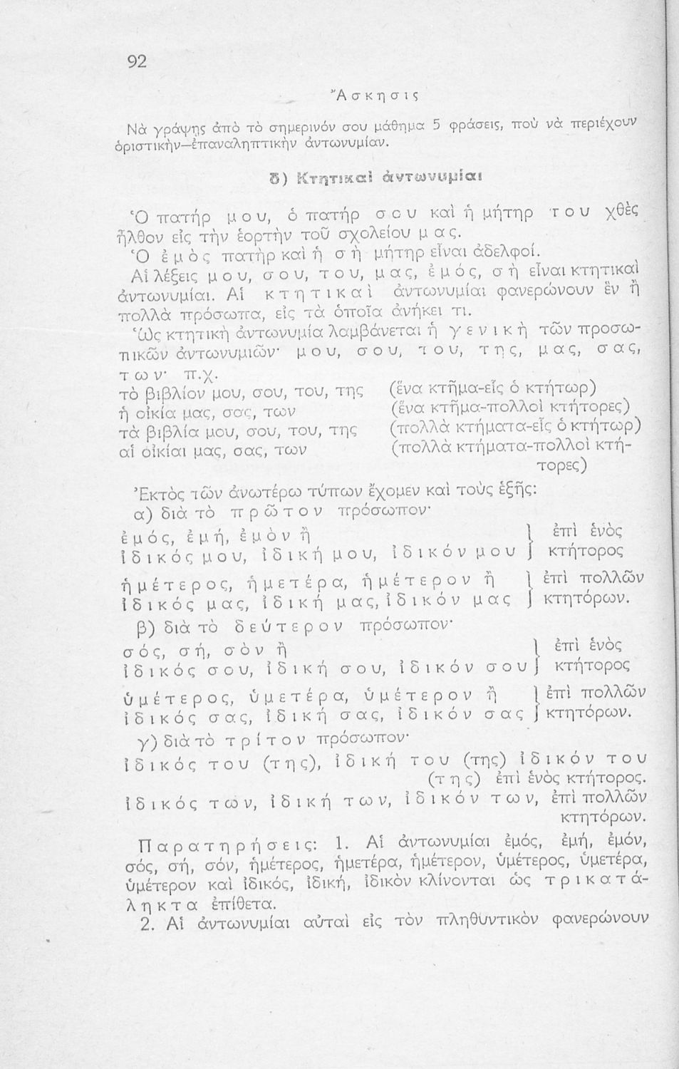 Σχετιζόμενοι όροι:  ρήματα, αντωνυμίες, επίθετα, ονόματα