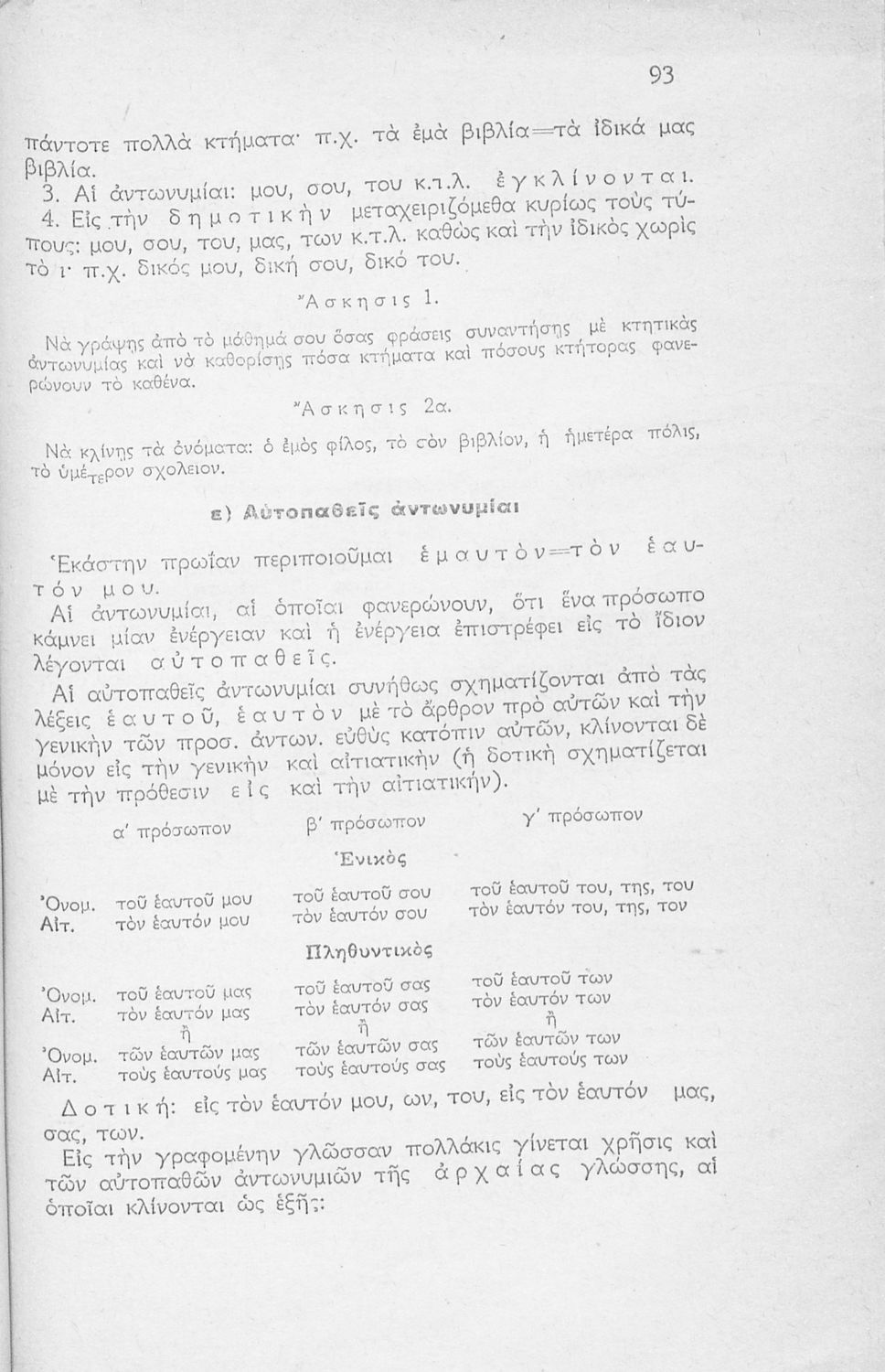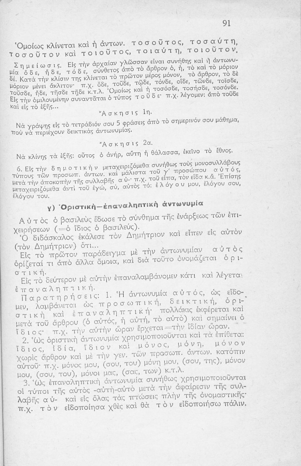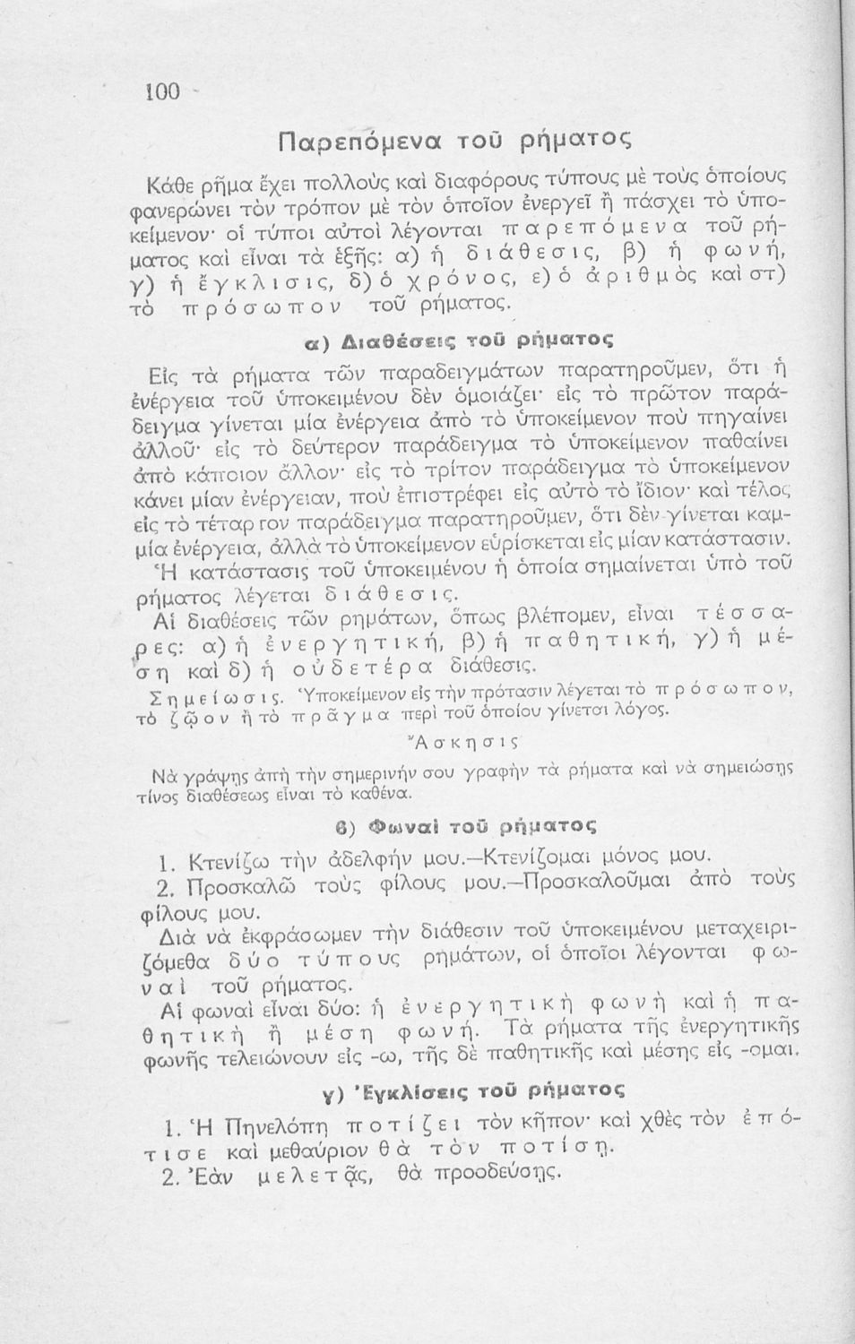 Μαθητικό βοήθημα Δημοτικού που περιέχει θεωρία και ασκήσεις της γραμματικής για την εκμάθηση της καθαρεύουσας.