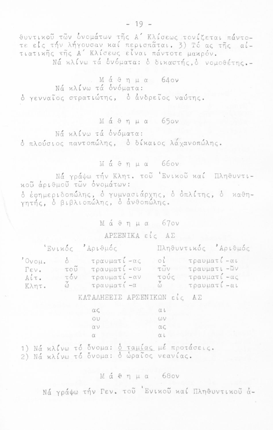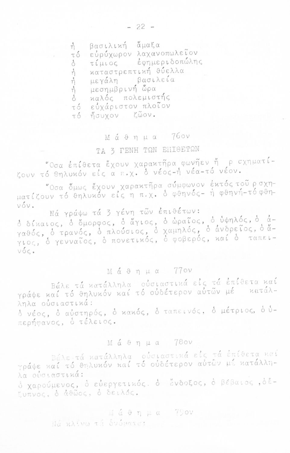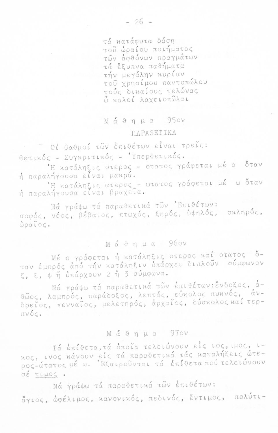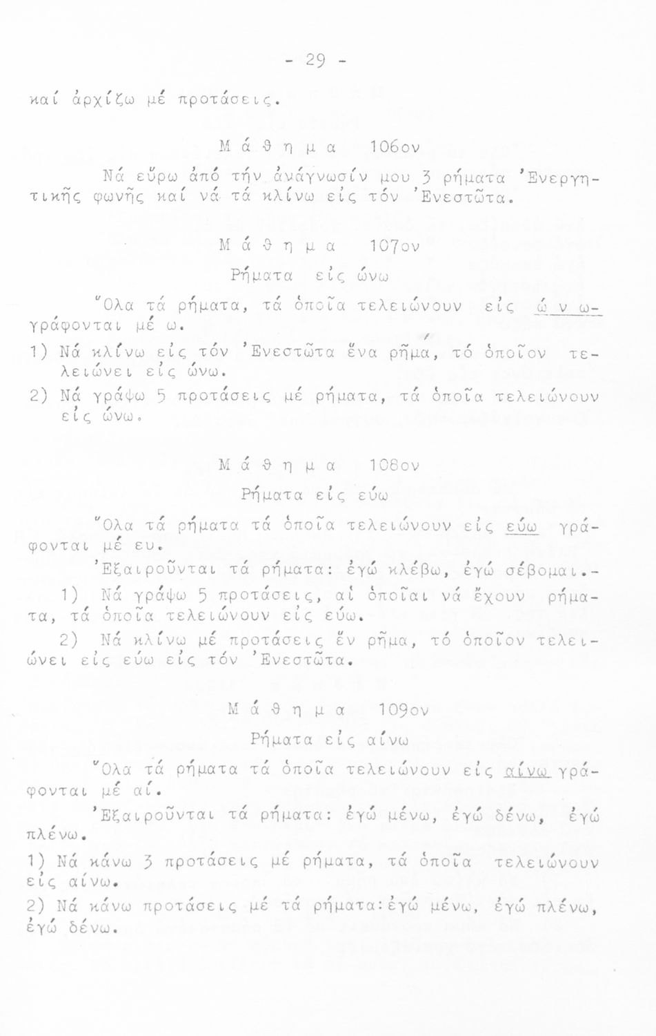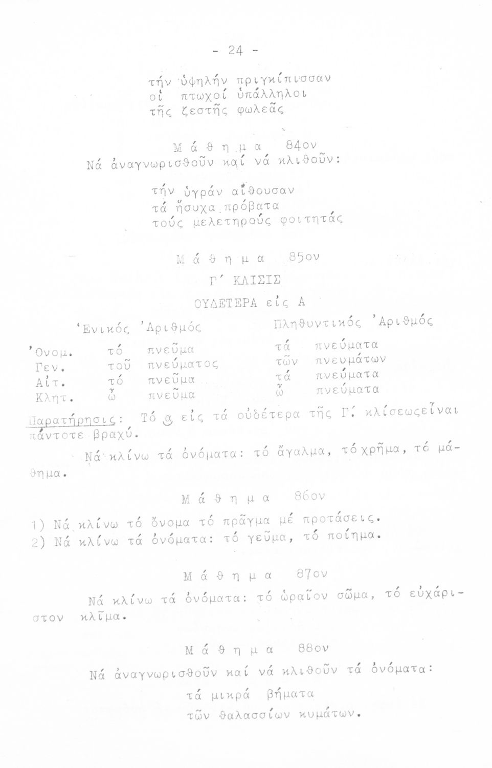 Βαθμίδα εκπαίδευσης: Πρωτοβάθμια Τάξη: Δ' Δημοτικού Μάθημα: Νέα Ελληνικά Γλώσσα: Απλή καθαρεύουσα Παρουσίαση περιεχομένου: Μαθητικό βοήθημα Γλώσσας Δ' Δημοτικού που περιλαμβάνει ασκήσεις γραμματικής. |